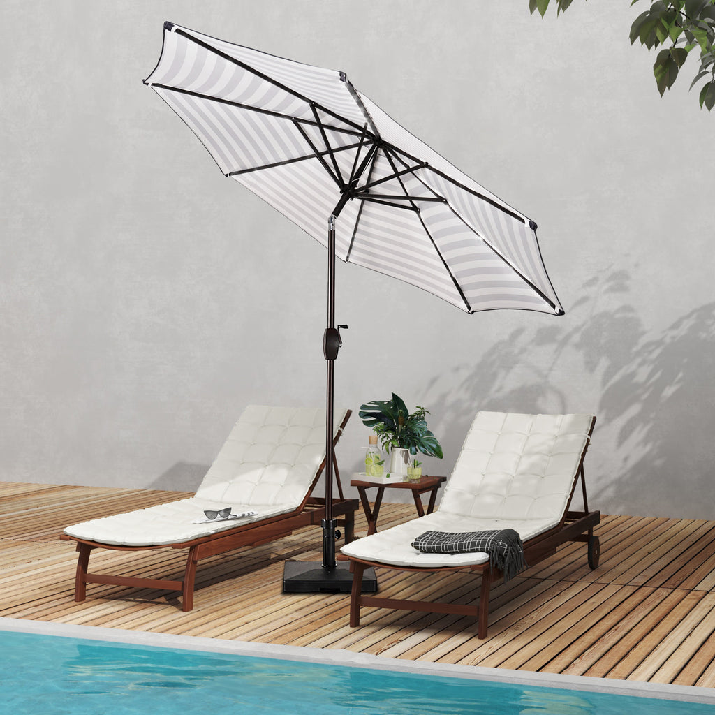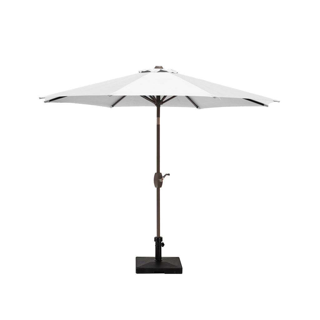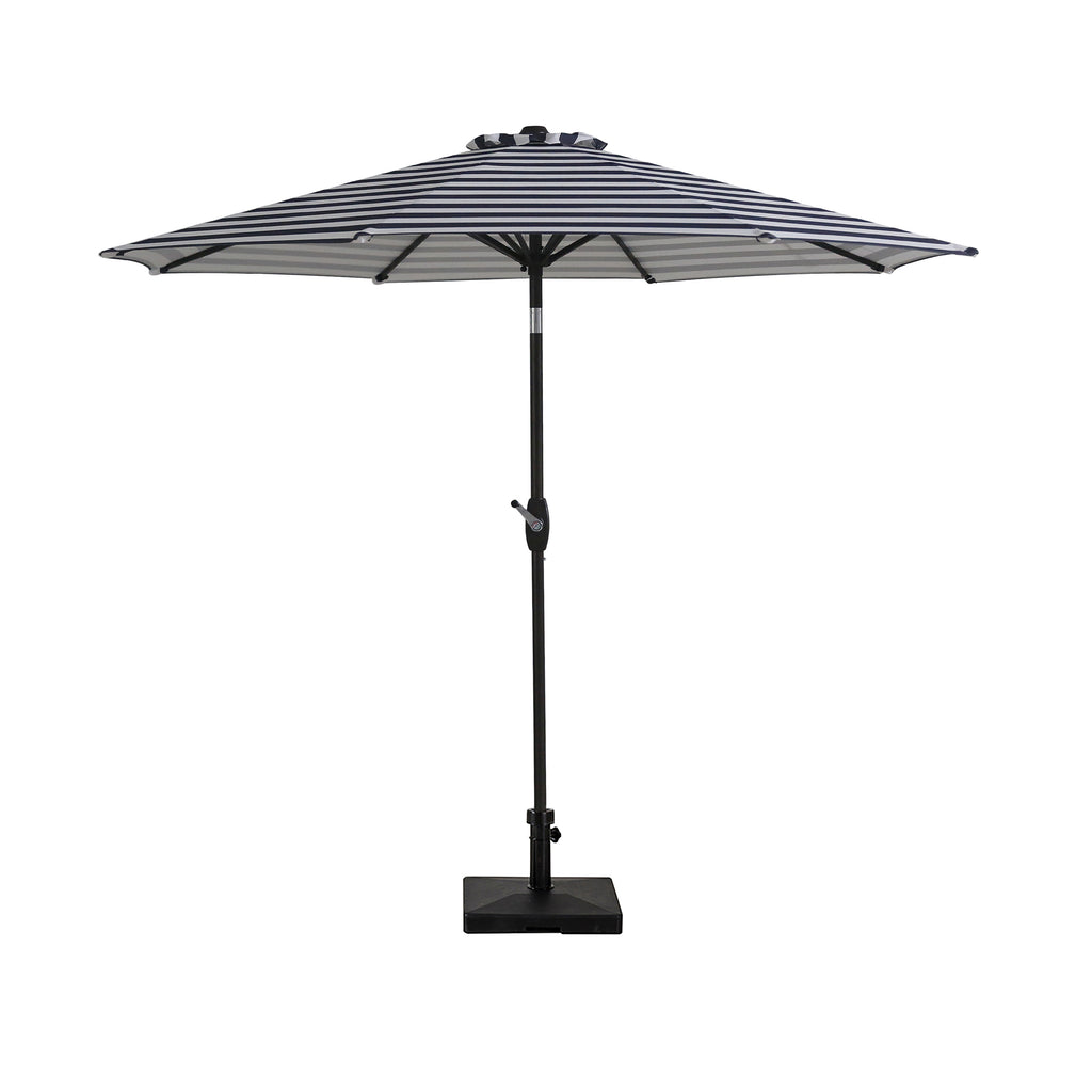 Enjoy the shade under this 9 Ft patio umbrella and keep it in the upright position with the durable concrete base. The ideal start up KIT for any outdoor garden. Available in multiple color variations.