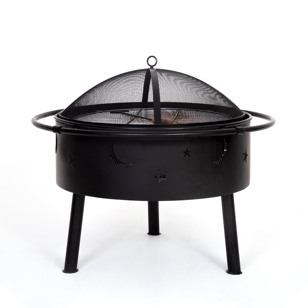 Robin Outdoor Star and Moon steel Wood burning round fire pit with wire mesh lit