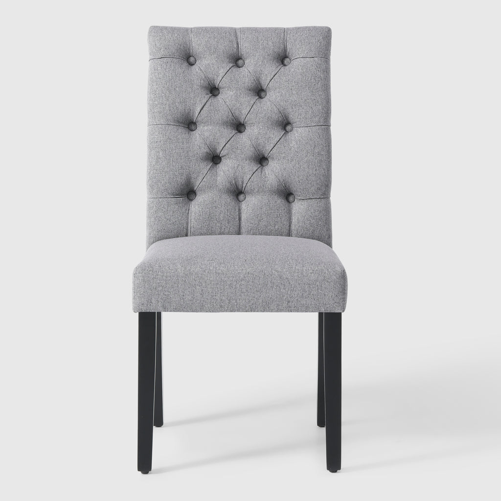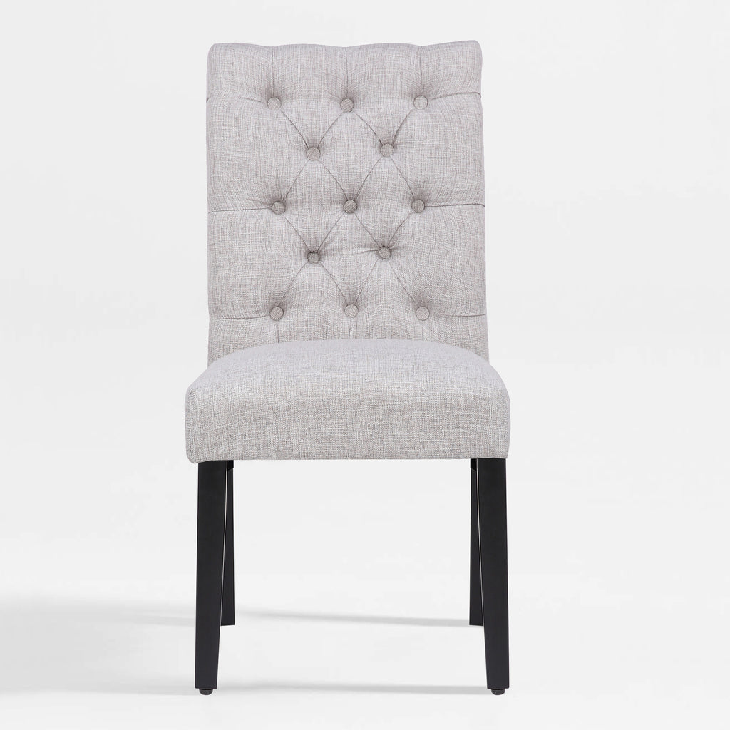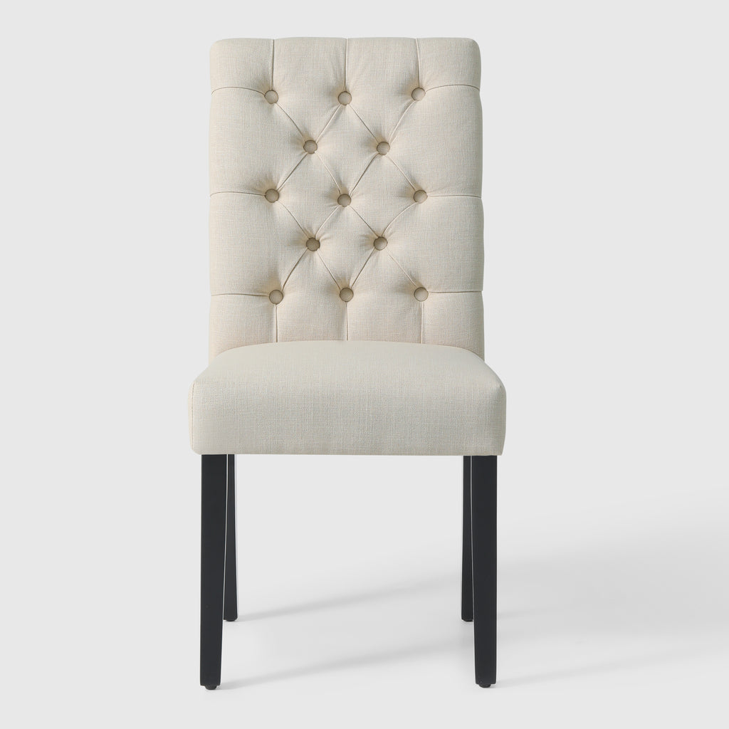Add a classy touch to any dining, living or meeting room with this decorative button tufted side chair. The soft linen fabric accentuates your living space and can be matched with almost any décor style. Made with a high-density foam cushion and rubberwood legs, this indoor dining chair provides you with optimum comfort and durability. This soft linen fabric chair can be easily assembled for your convenience.