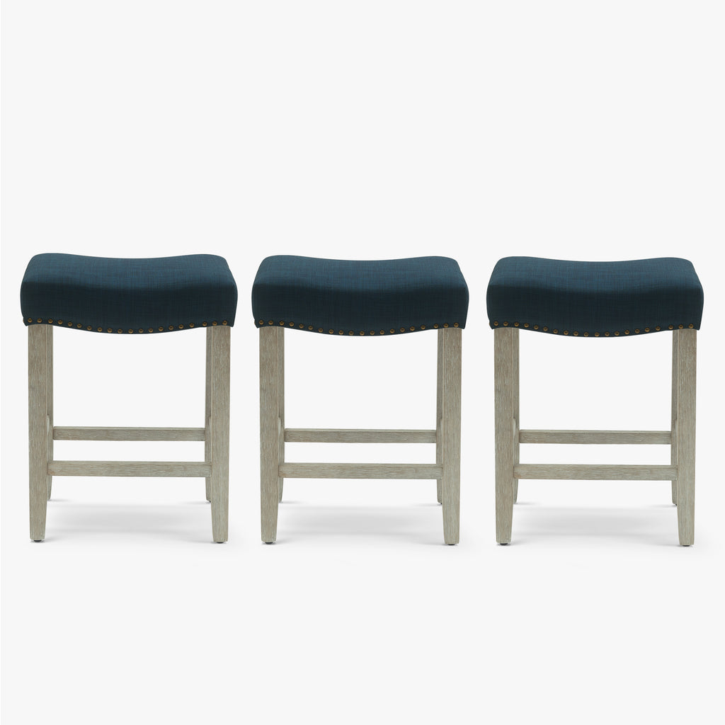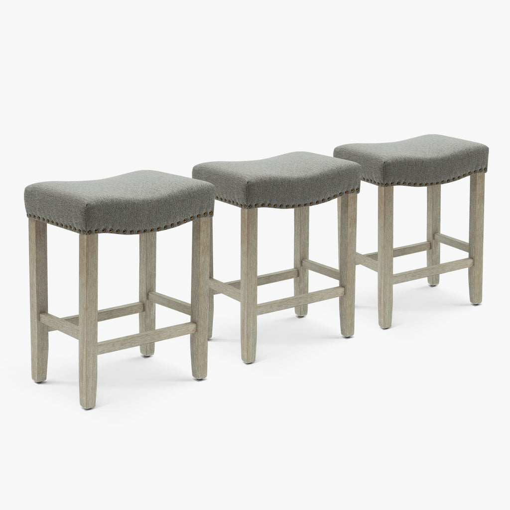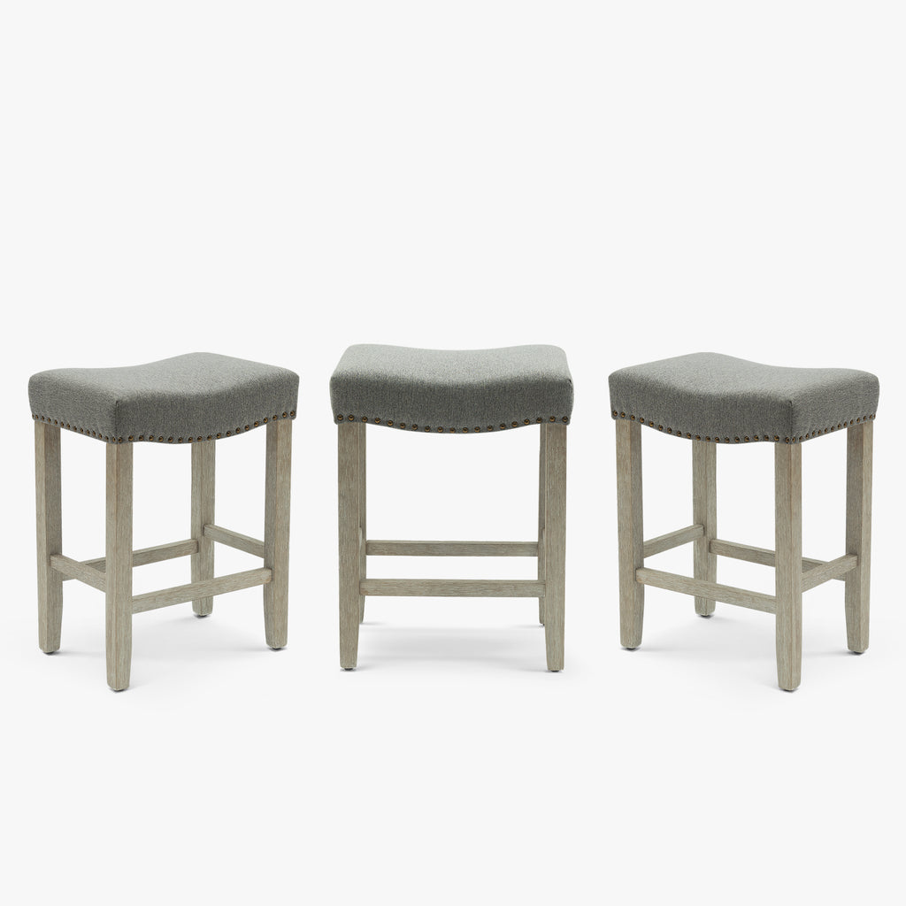 Bulmon 24" Upholstered Saddle Seat Antique Gray Counter Stool (Set of 3)