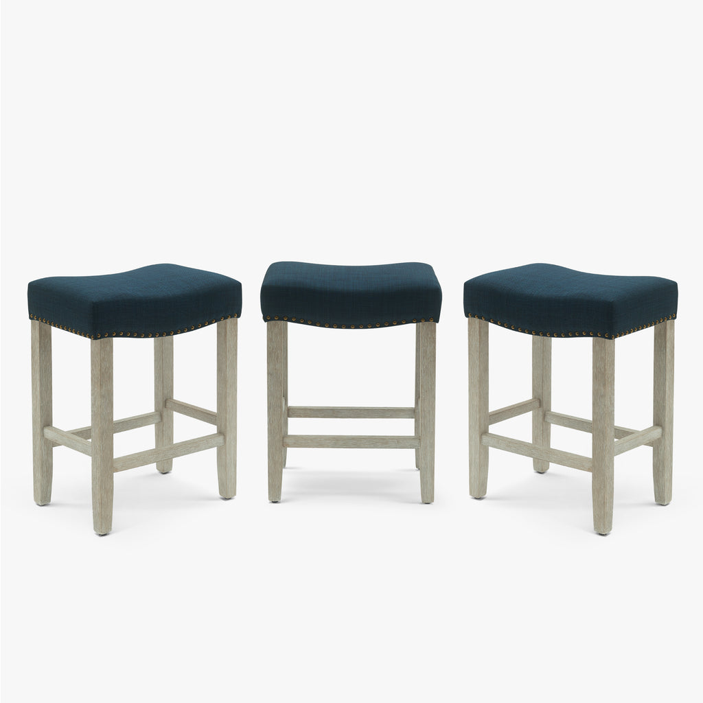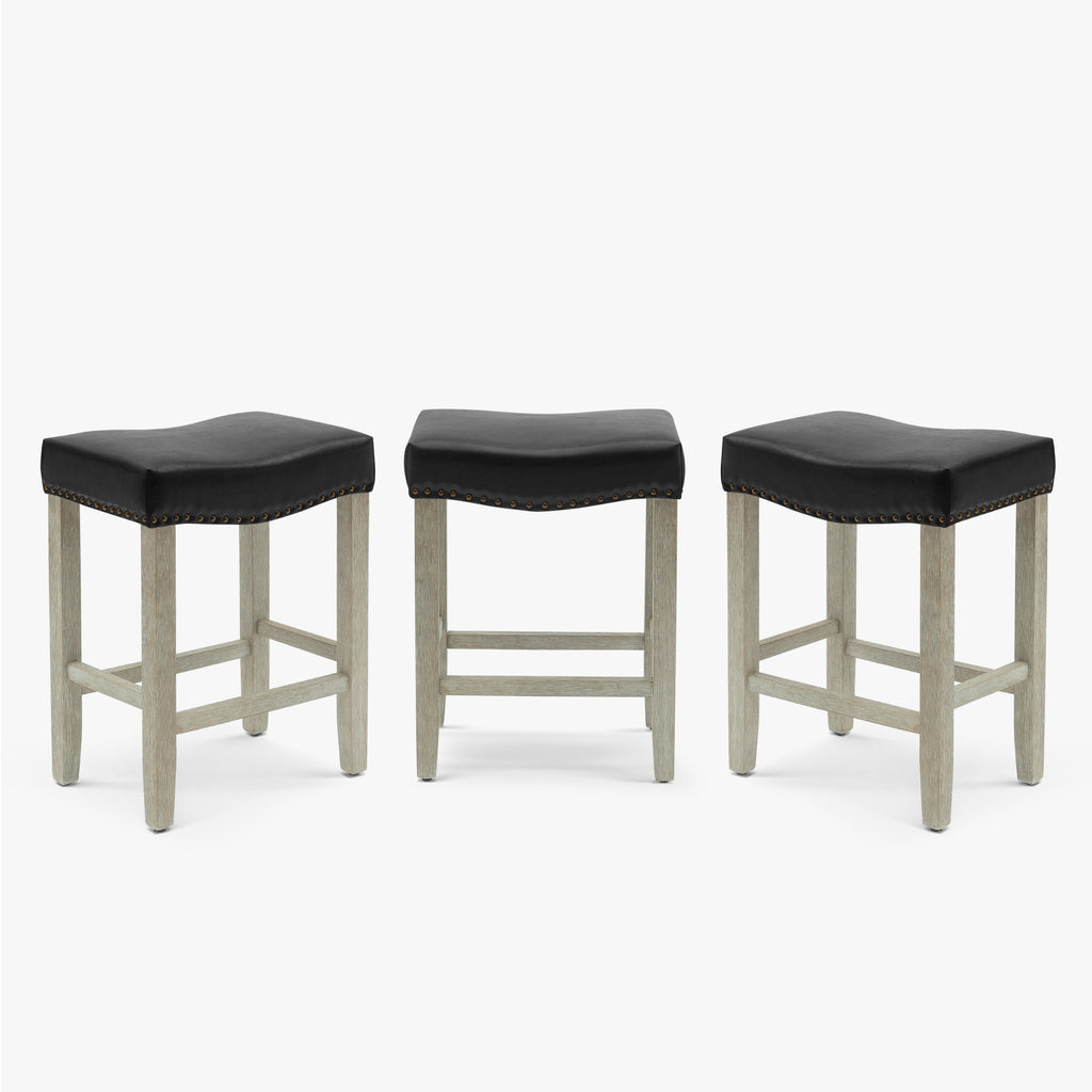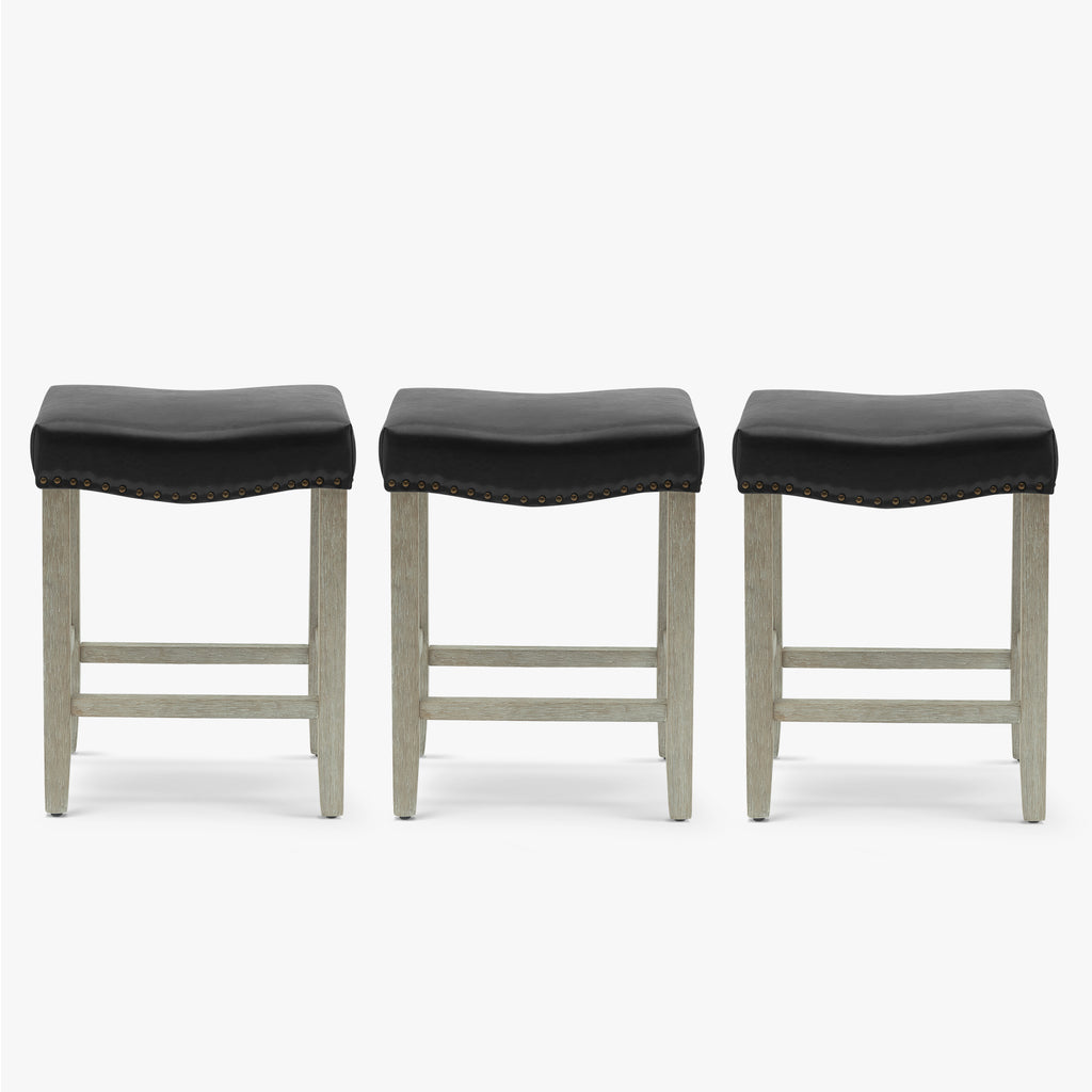Bulmon 24" Upholstered Saddle Seat Antique Gray Counter Stool (Set of 3)