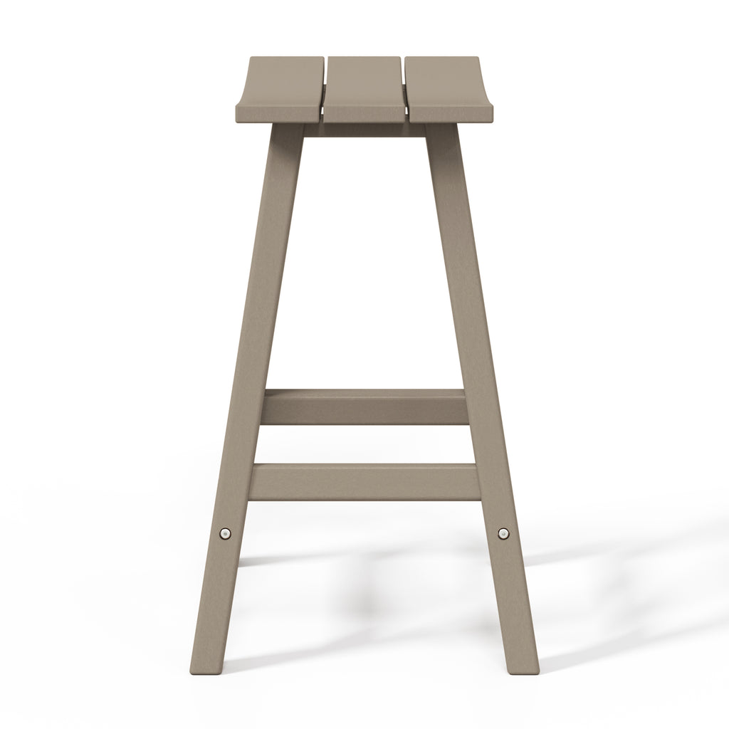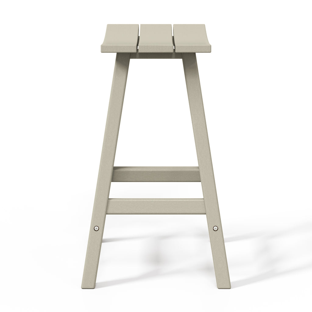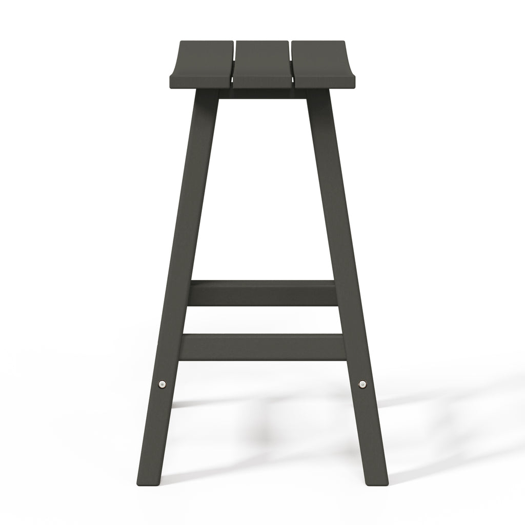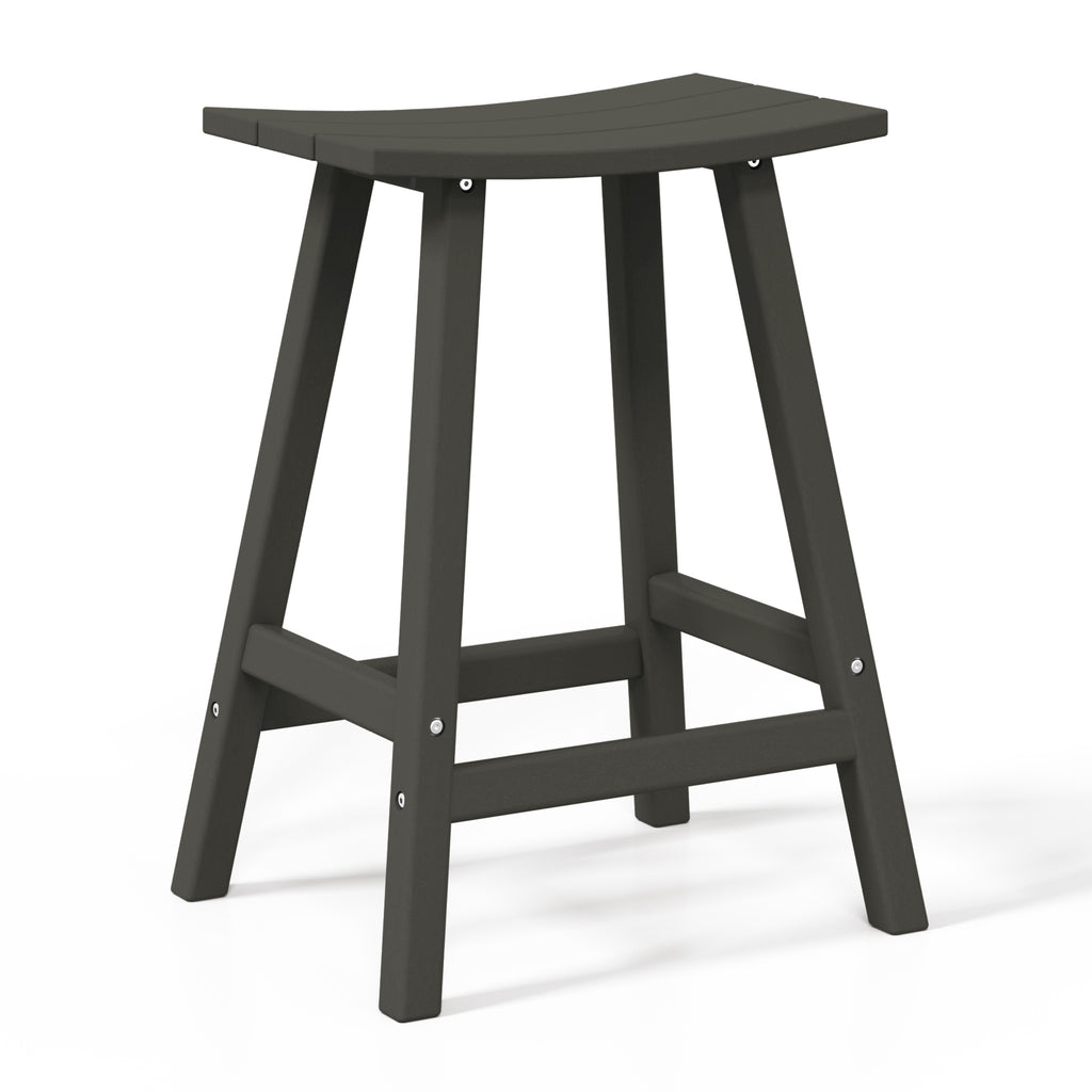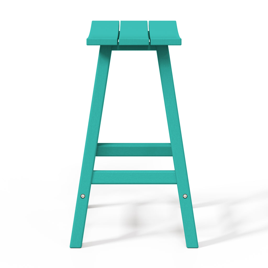 Comfort and style combined into this 24" Inch Outdoor Patio Bar Stool. The stool features solid HDPE construction that is made for daily outdoor use. UV and weather-resistant materials help keep its vibrant shine for many years of use. This outdoor bar stool is a great way to add convenient seating to the kitchen, home bar, den, outdoor patio and more. This set of bar stools is designed to add a classic style to your home or outdoor living space. Combines perfectly with other Adirondack style furniture to help complete your outdoor set up. Saddle slatted seats will bring an elegant and comfortable style to any patio bar area. The UV and weather resistant material make them able to last from season to season. fade-resistant to help keep its true color. Comfortable footrest and wide seating. A classic Adirondack Backless Barstools provide stylish comfort that is perfect for your backyard bar or lounge. Available in easy to match colors. Slide them up to a Patio bar or use at a kitchen counter.