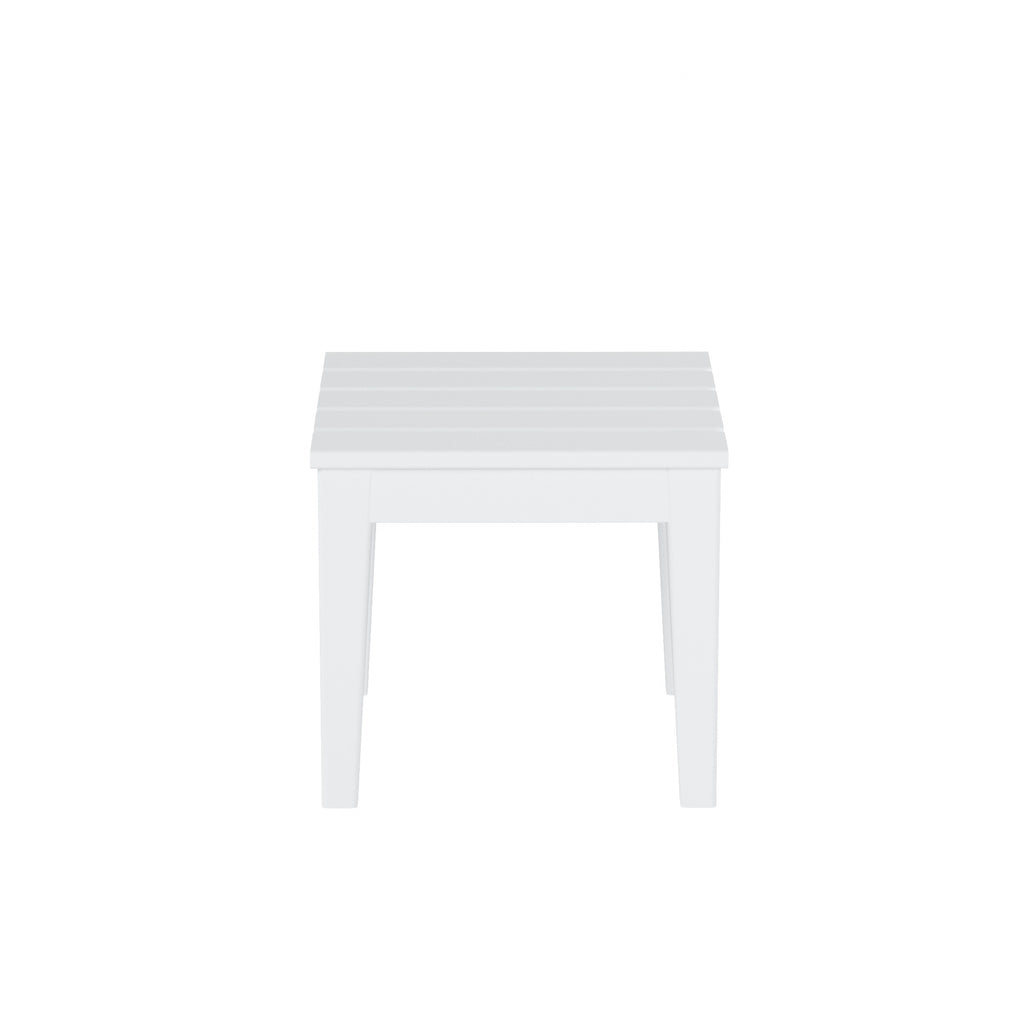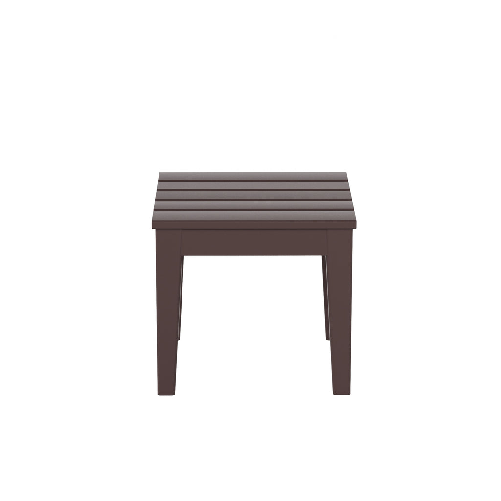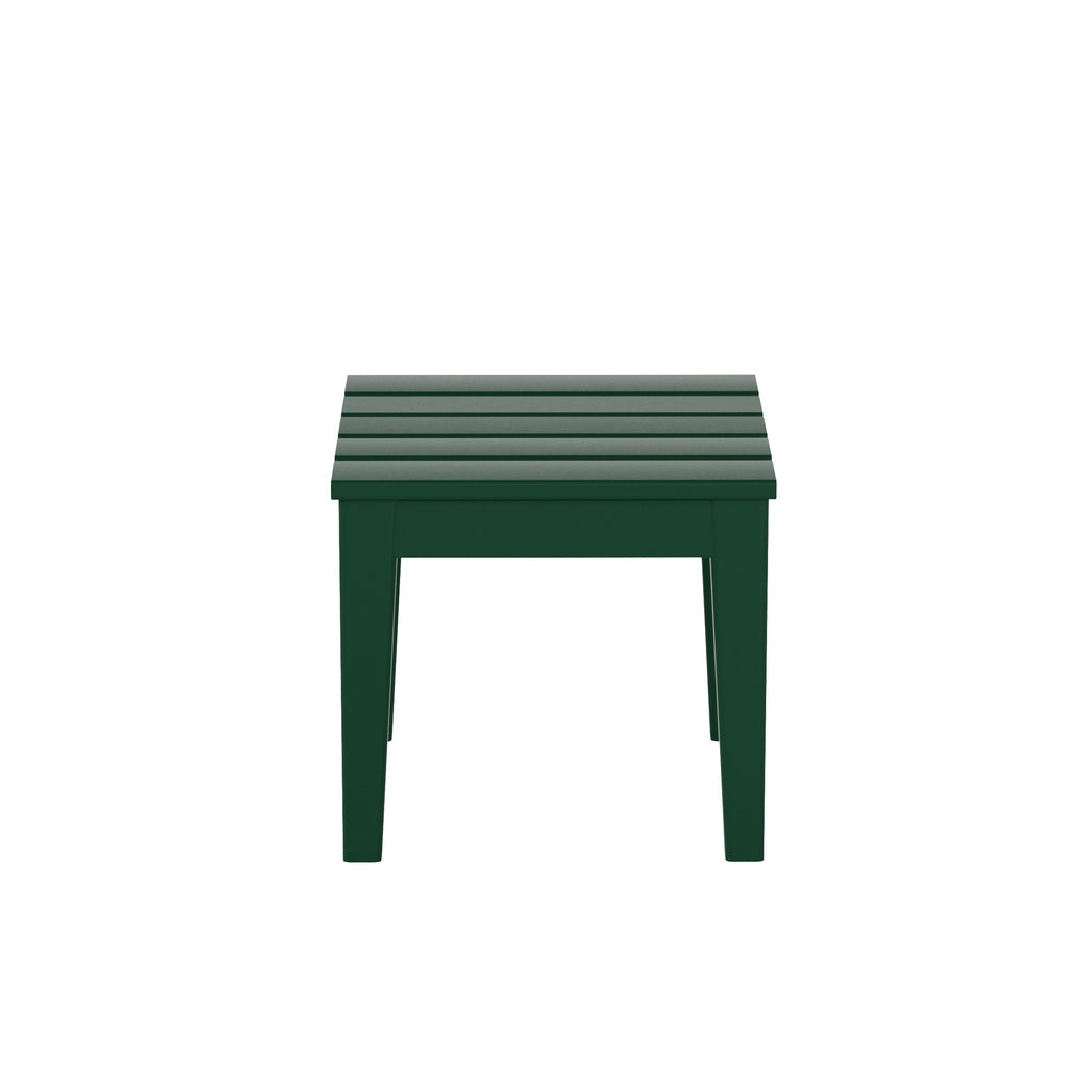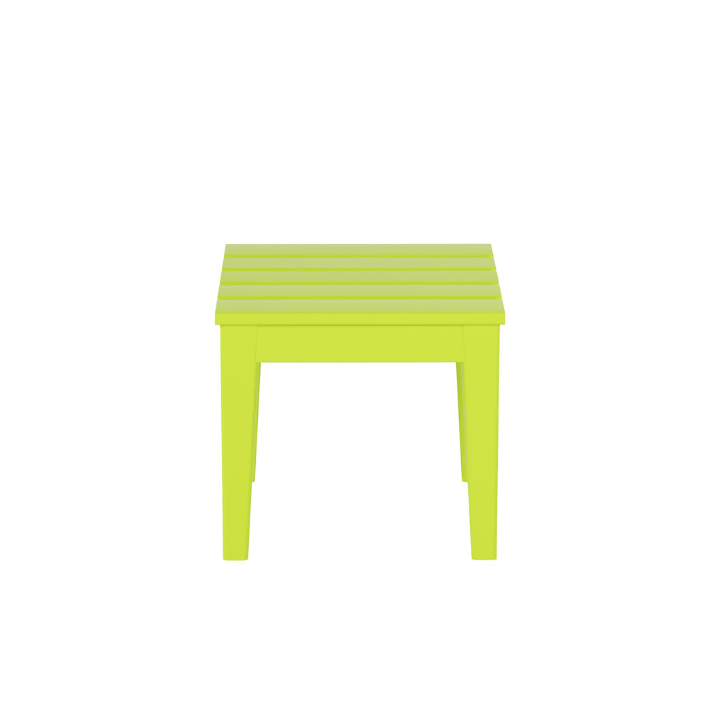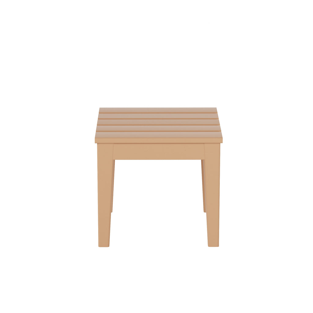 The perfect 18" side table to match with your Adirondack chair. Created with a durable, weather-resistant HDPE lumber that has a soft wood-like texture for a natural wood look without the disadvantages of natural wood. Great for the outdoors with the UV and fade resistant material that will protect the tables beautiful, vibrant color all year long.