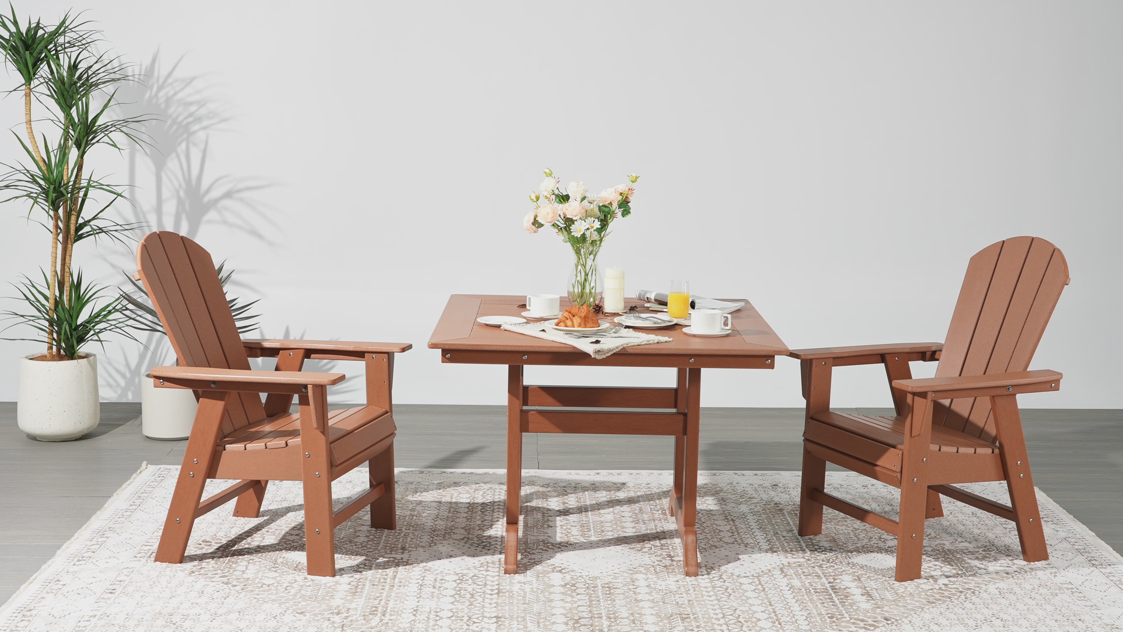 Sit back and relax in the oversized seat of the Adirondack dining chair. The chair’s curved shell-style backrest designed for comfort, this casual all-weather dining chair will bring a touch of laid back beach style to any outdoor space. Created with HDPE material adds durability and can withstand the outdoor elements thanks to the HDPE's natural UV and weather resistant. The dining armchair is made to look like natural wood without any of the disadvantages of natural wood, meaning that this outdoor chair isn't prone to splinters, cracks, or peeling. This dining chair is perfect for the outdoors and will have your home looking great with the semi-gloss finish that is sure to shine.