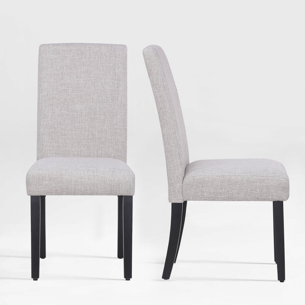 Suited for nearly all décor styles, this set of two beautiful armless chairs adds comfort to any living space. These Parson-style chairs are made with soft linen and rubberwood material for long-lasting durability. Sit comfortably on a high-density foam cushion for optimum support. These armless dining side chairs are easy to assemble for your convenience.