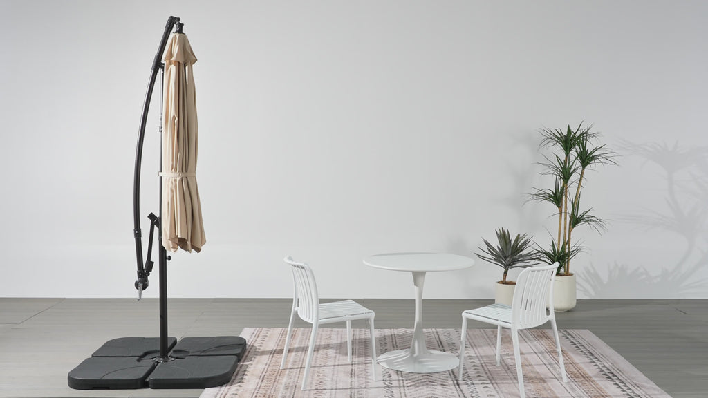 This 10 Ft Outdoor Patio Cantilever Umbrella is the must have for any Outdoor Garden area. Easily swing over any where shade is needed and crank back down for easy storage when not in use. Made with a durable frame with All Weather Resistant Polyester fabric. Available in Multiple Vibrant Colors.