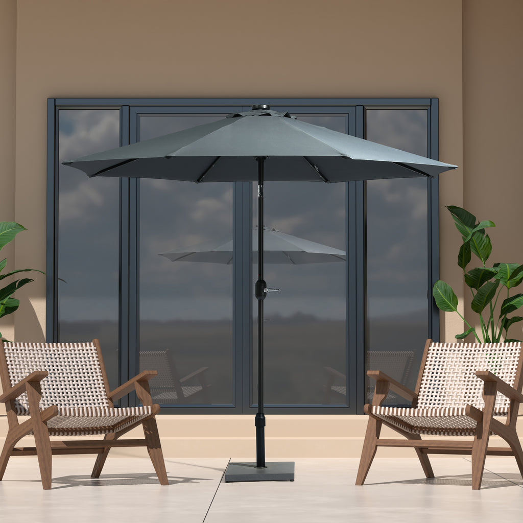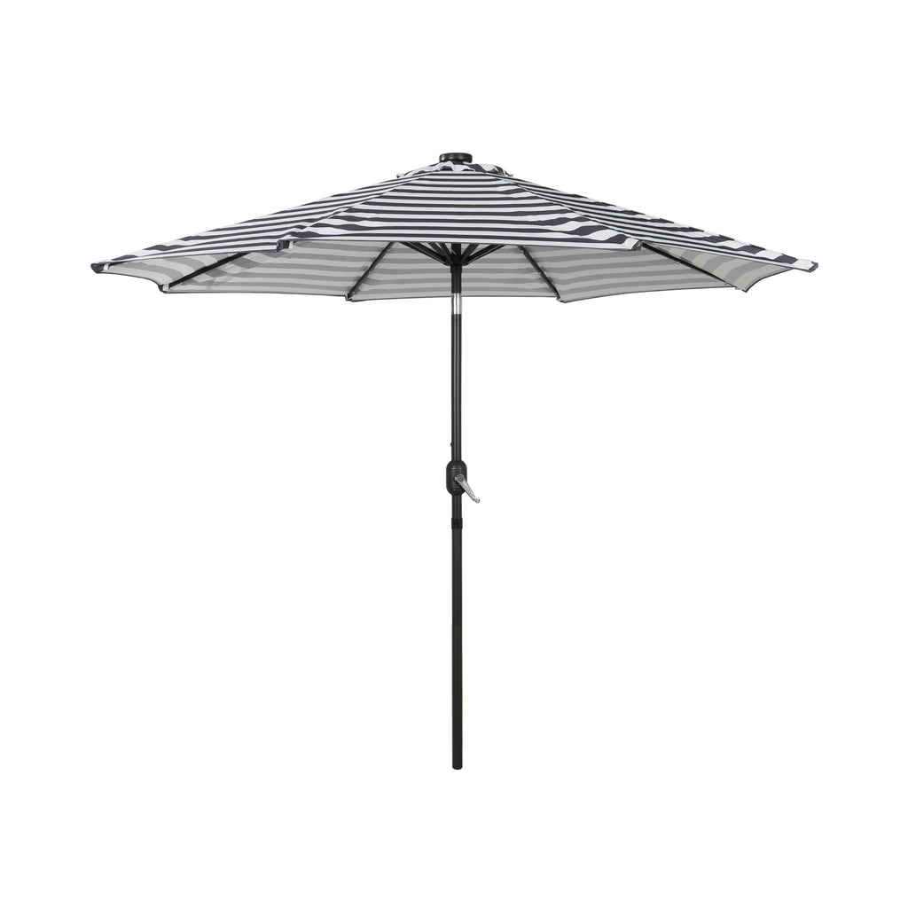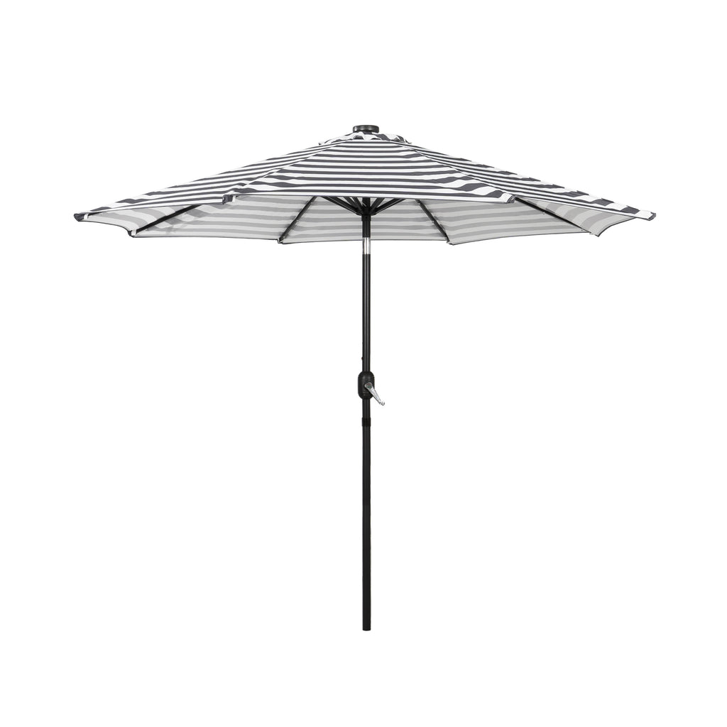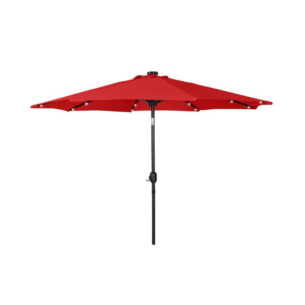 The 9-ft umbrella with LED lighting will keep you well-lit all night while you unwind in the shade and relax at night under the light. The 32 solar-powered LED lights are powered by the solar panel so you don't need to worry about having a plug on hand. Featuring an easy-to-push button tilt and a hand crank, that can easily cover the sun at any angle and power the solar lights at the same time! Keep cool all day long with the umbrella's vented design that promotes airflow to keep you cooler while under the umbrella and makes it easier for strong gusts to move through the fabric. This umbrella is perfect for all your needs and will make the perfect addition to your backyard.