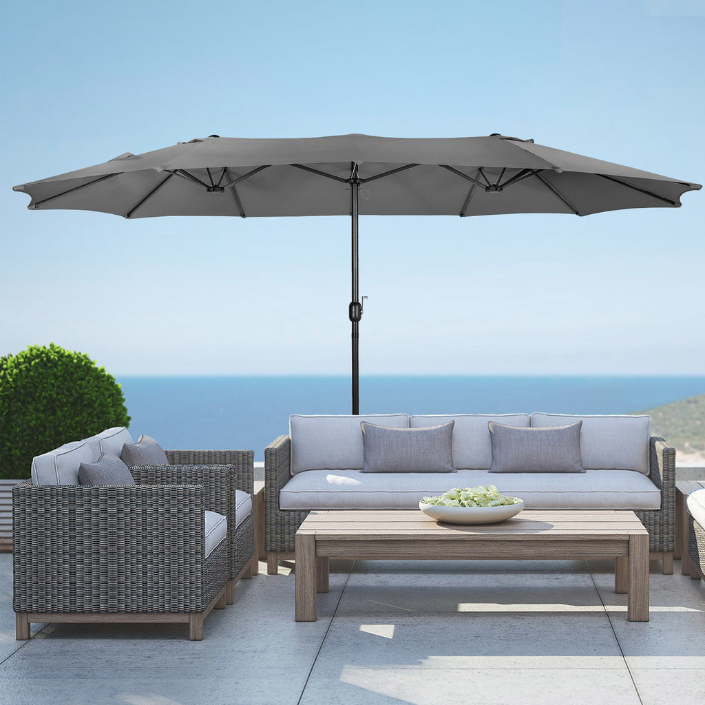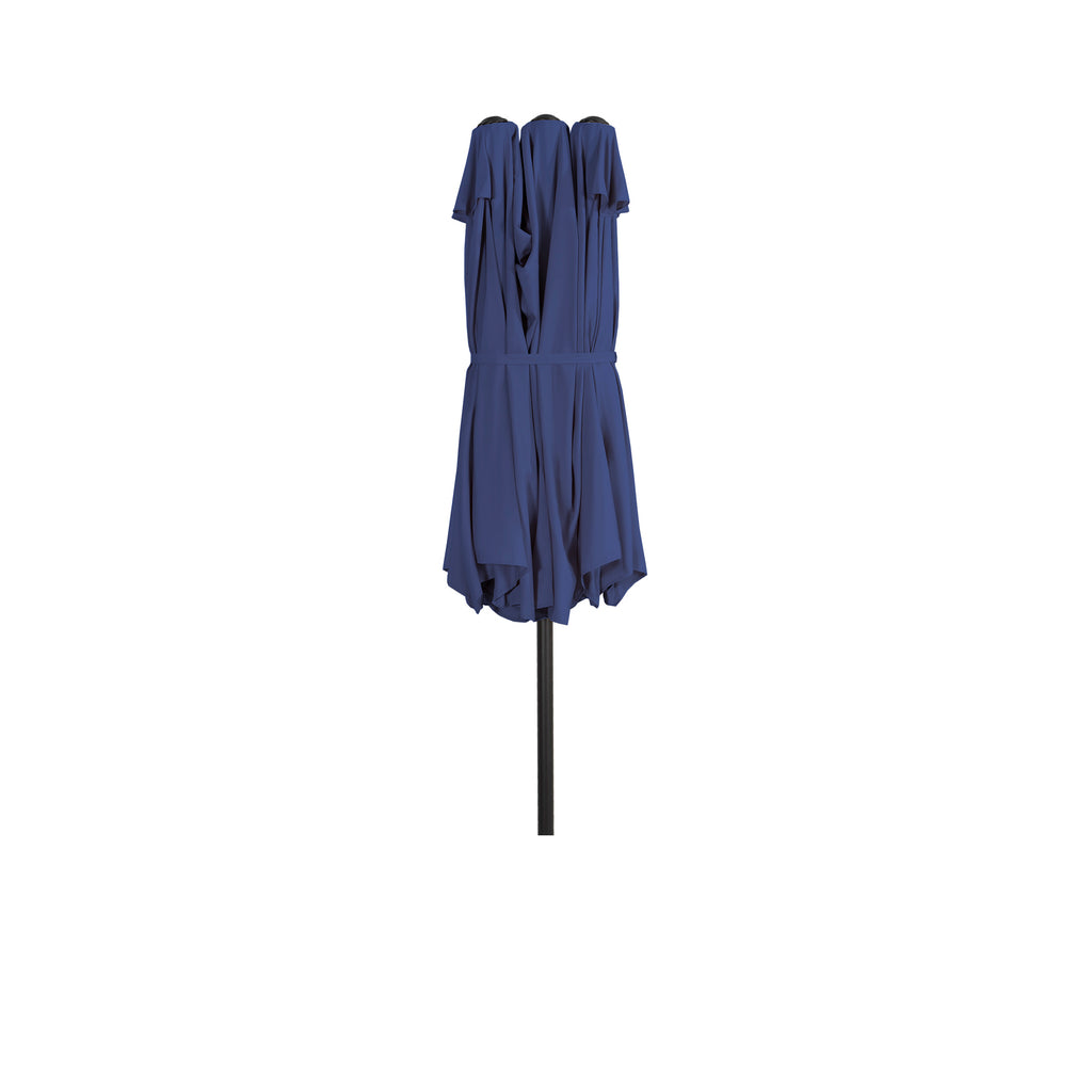 Don't let the exposure to the sun ruin your day, go out and enjoy it with this beautiful double-sided market umbrella that will cover you all day with its large coverage. Constructed with a rust-free steel pole and 12 durable steel ribs that add to the umbrella's strength. The canopy is made of polyester and is protected from the elements with its weather and UV resistance, which blocks out the harmful UV rays. The canopy has a vented design that improves airflow, keeps the umbrella cool, and prevents gusty winds from taking the umbrella.