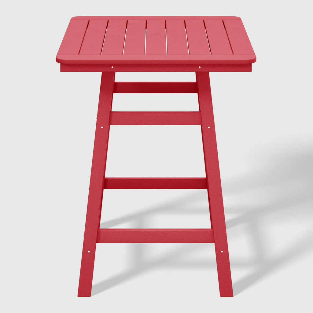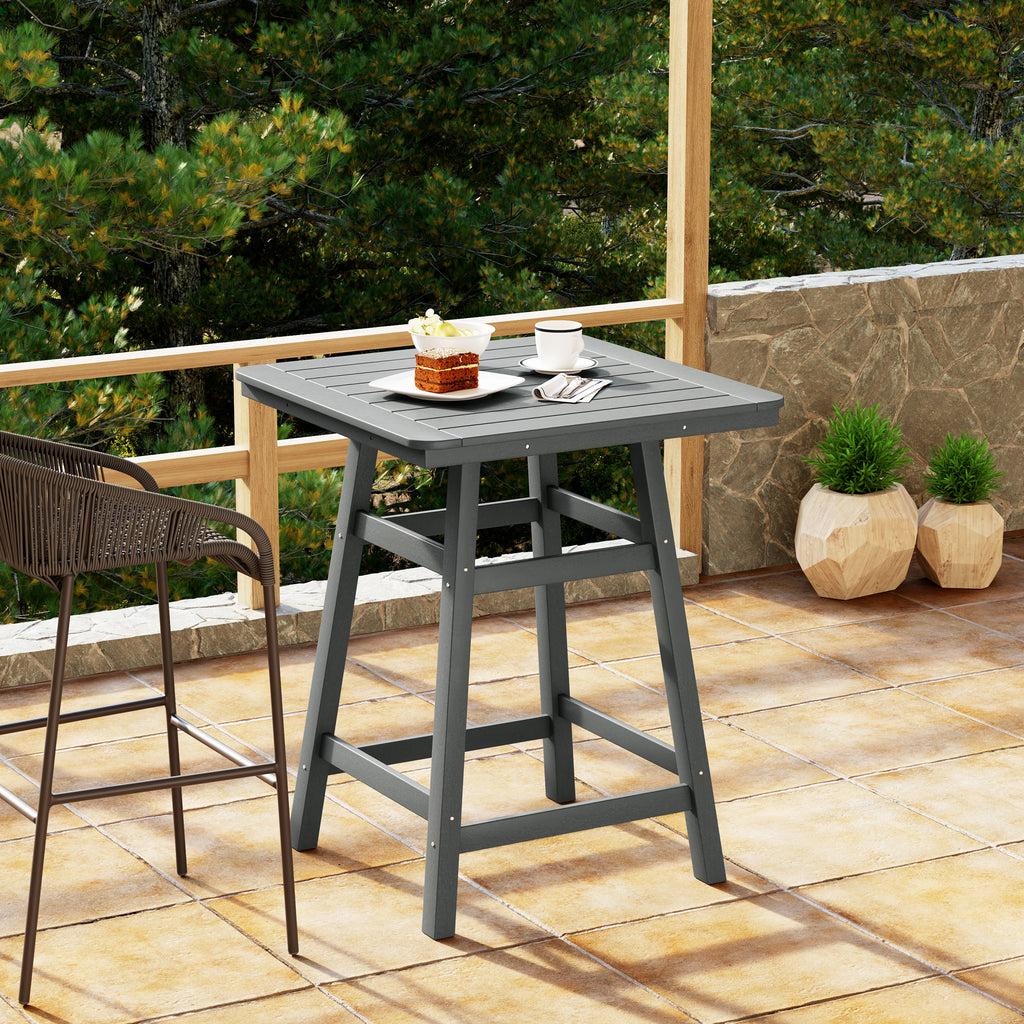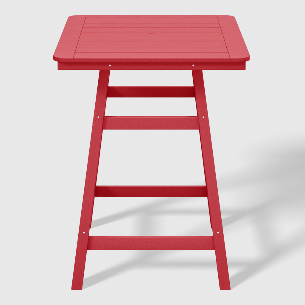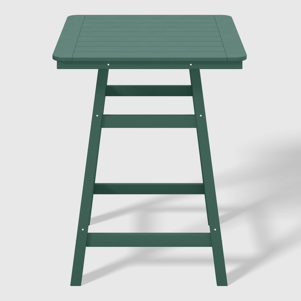 An exquisite addition to your outdoor patio this season, the Square Outdoor Patio Counter High Bistro Bar Table With Umbrella Hole provides an ideal setting for shared moments over drinks, snacks, and casual outdoor meals. Crafted from durable HDPE material, specially designed for outdoor use, it exhibits exceptional weather and UV resistance, ensuring longevity even in direct sunlight. Choose from a refined selection of fade-resistant colors to maintain its timeless charm season after season. Elevate your outdoor space with this sophisticated counter table, creating a classic and delightful ambiance for your family gatherings. Simply perfection for those who appreciate refined outdoor furnishings.