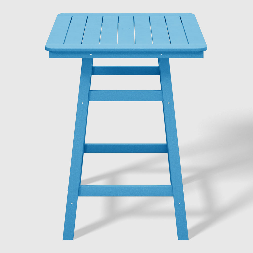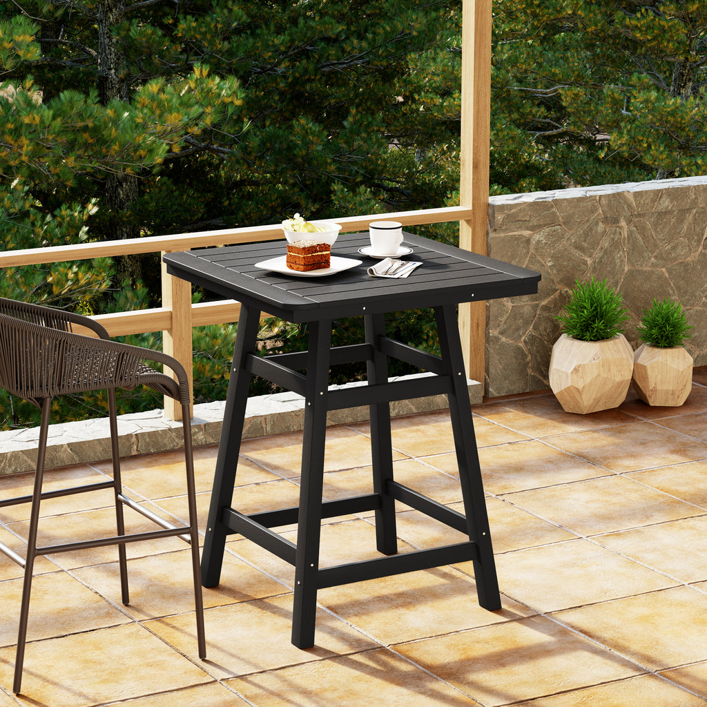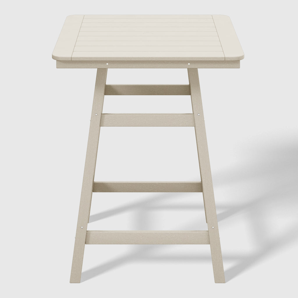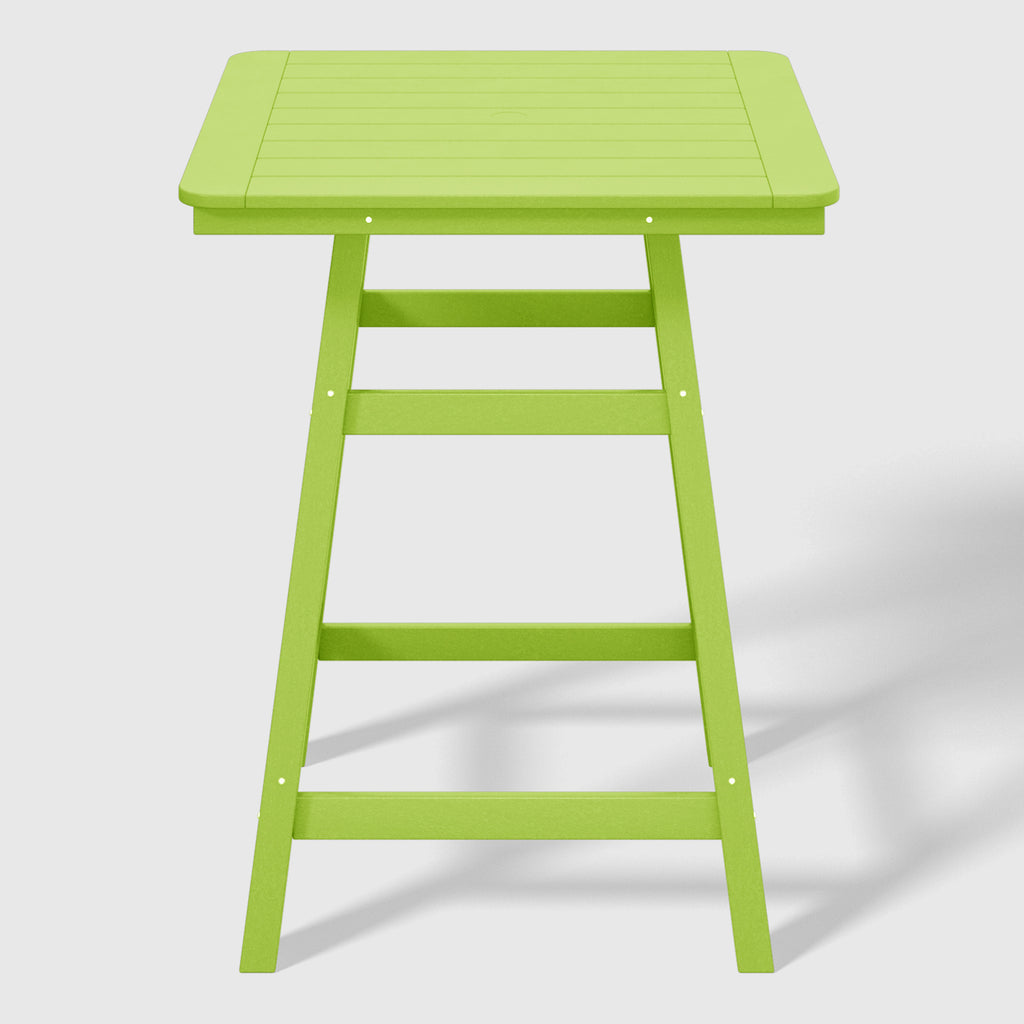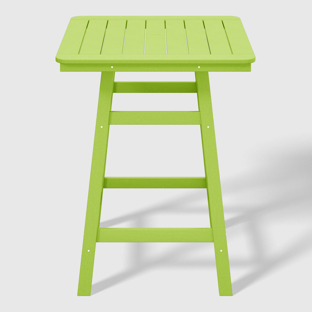 An exquisite addition to your outdoor patio this season, the Square Outdoor Patio Counter High Bistro Bar Table With Umbrella Hole provides an ideal setting for shared moments over drinks, snacks, and casual outdoor meals. Crafted from durable HDPE material, specially designed for outdoor use, it exhibits exceptional weather and UV resistance, ensuring longevity even in direct sunlight. Choose from a refined selection of fade-resistant colors to maintain its timeless charm season after season. Elevate your outdoor space with this sophisticated counter table, creating a classic and delightful ambiance for your family gatherings. Simply perfection for those who appreciate refined outdoor furnishings.