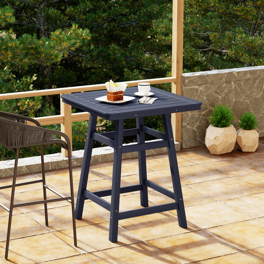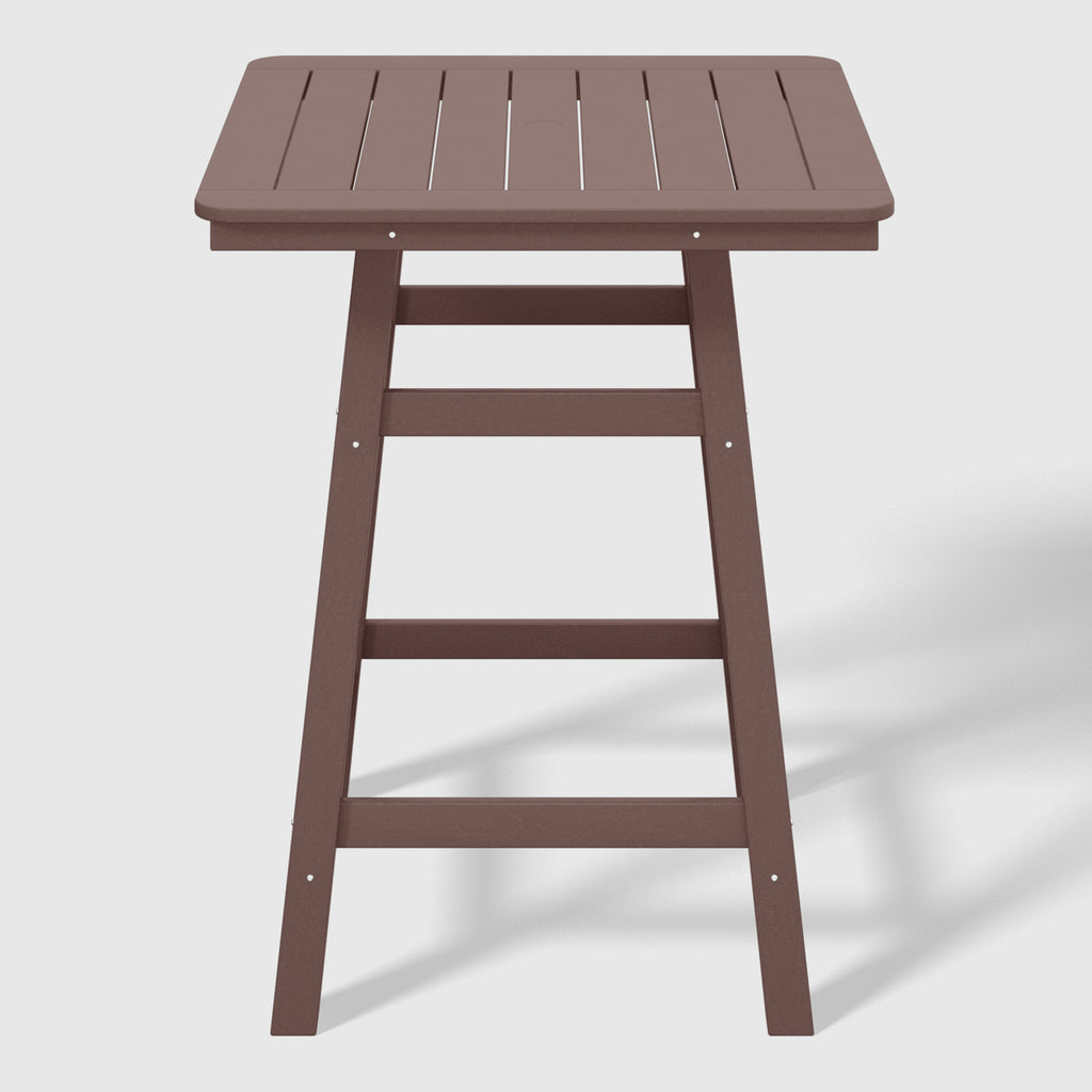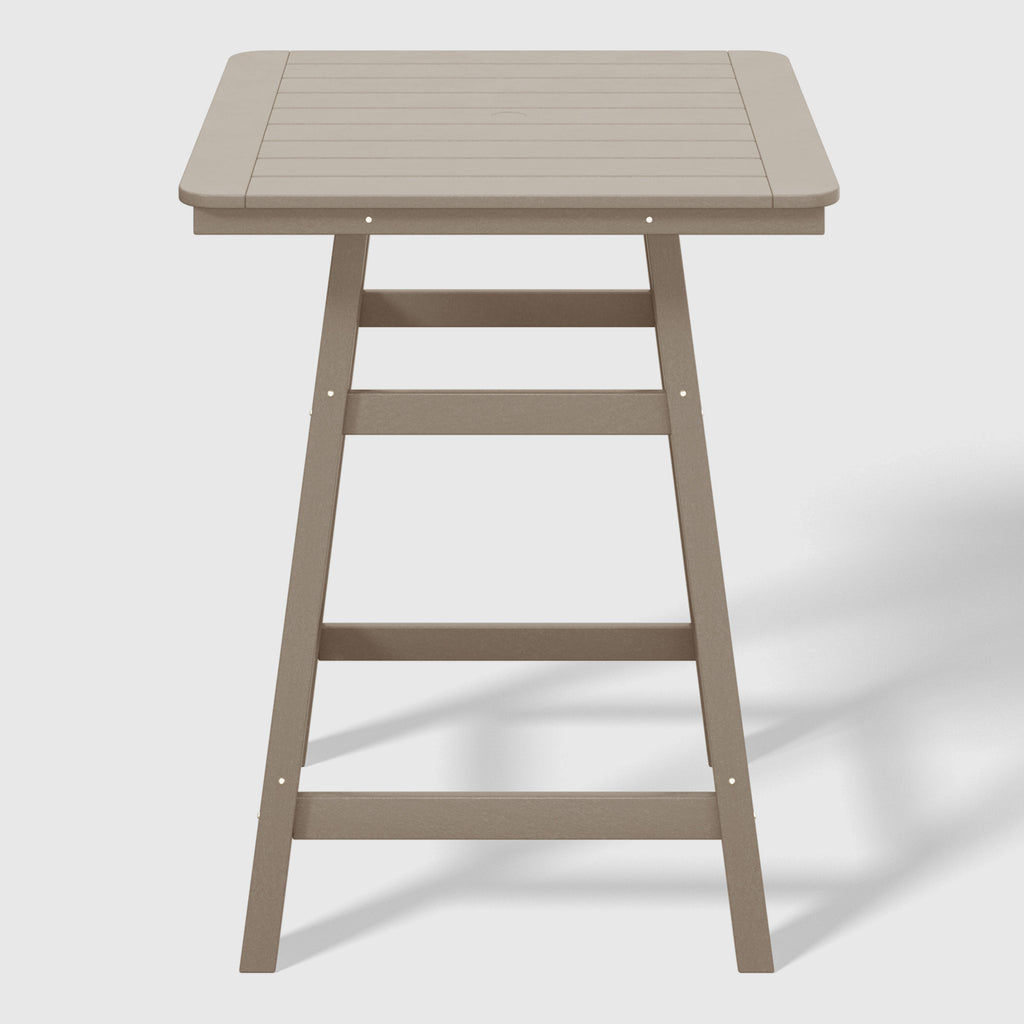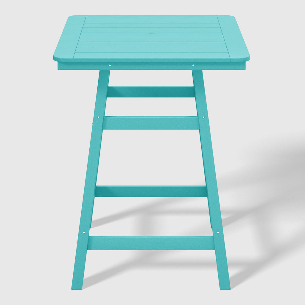 An exquisite addition to your outdoor patio this season, the Square Outdoor Patio Counter High Bistro Bar Table With Umbrella Hole provides an ideal setting for shared moments over drinks, snacks, and casual outdoor meals. Crafted from durable HDPE material, specially designed for outdoor use, it exhibits exceptional weather and UV resistance, ensuring longevity even in direct sunlight. Choose from a refined selection of fade-resistant colors to maintain its timeless charm season after season. Elevate your outdoor space with this sophisticated counter table, creating a classic and delightful ambiance for your family gatherings. Simply perfection for those who appreciate refined outdoor furnishings.