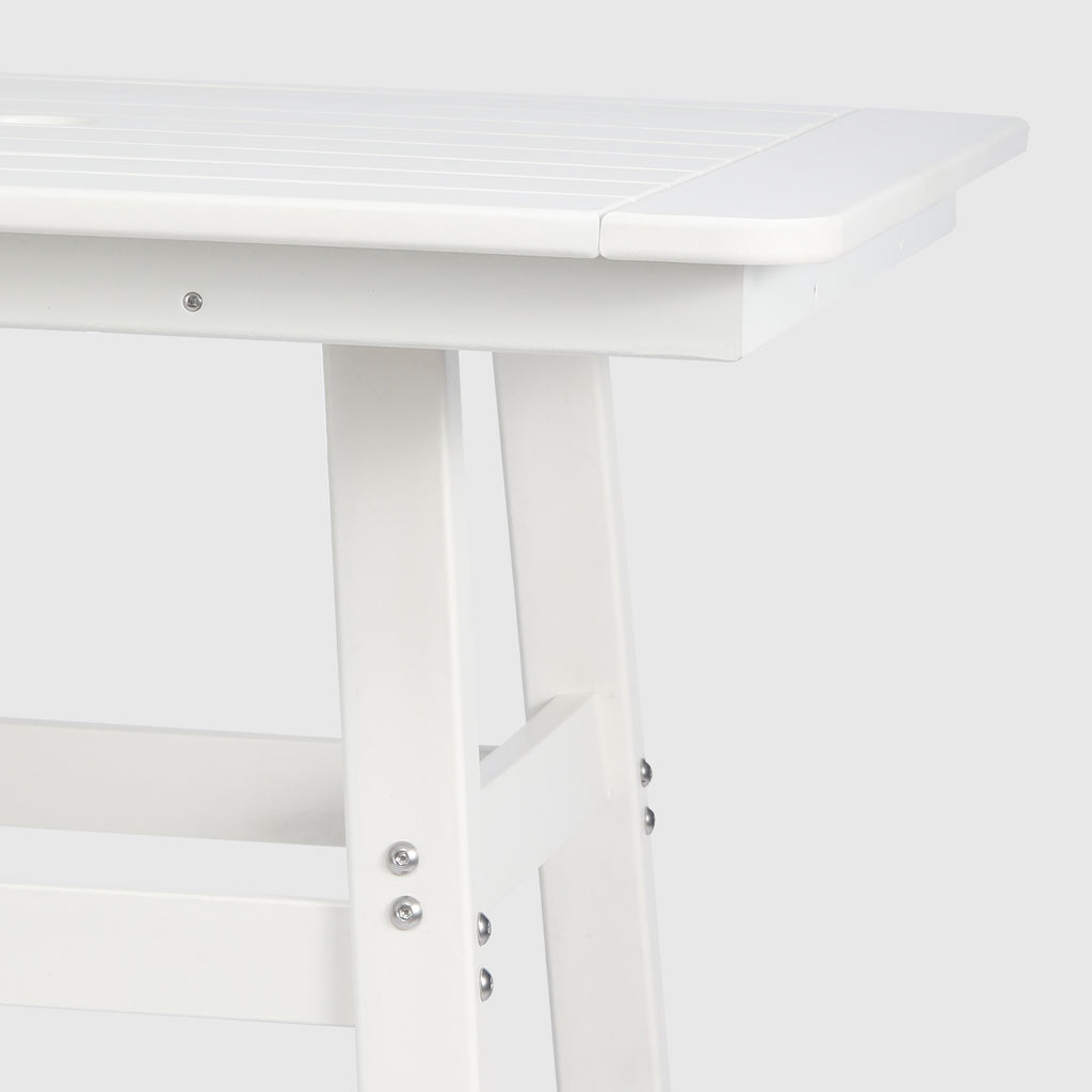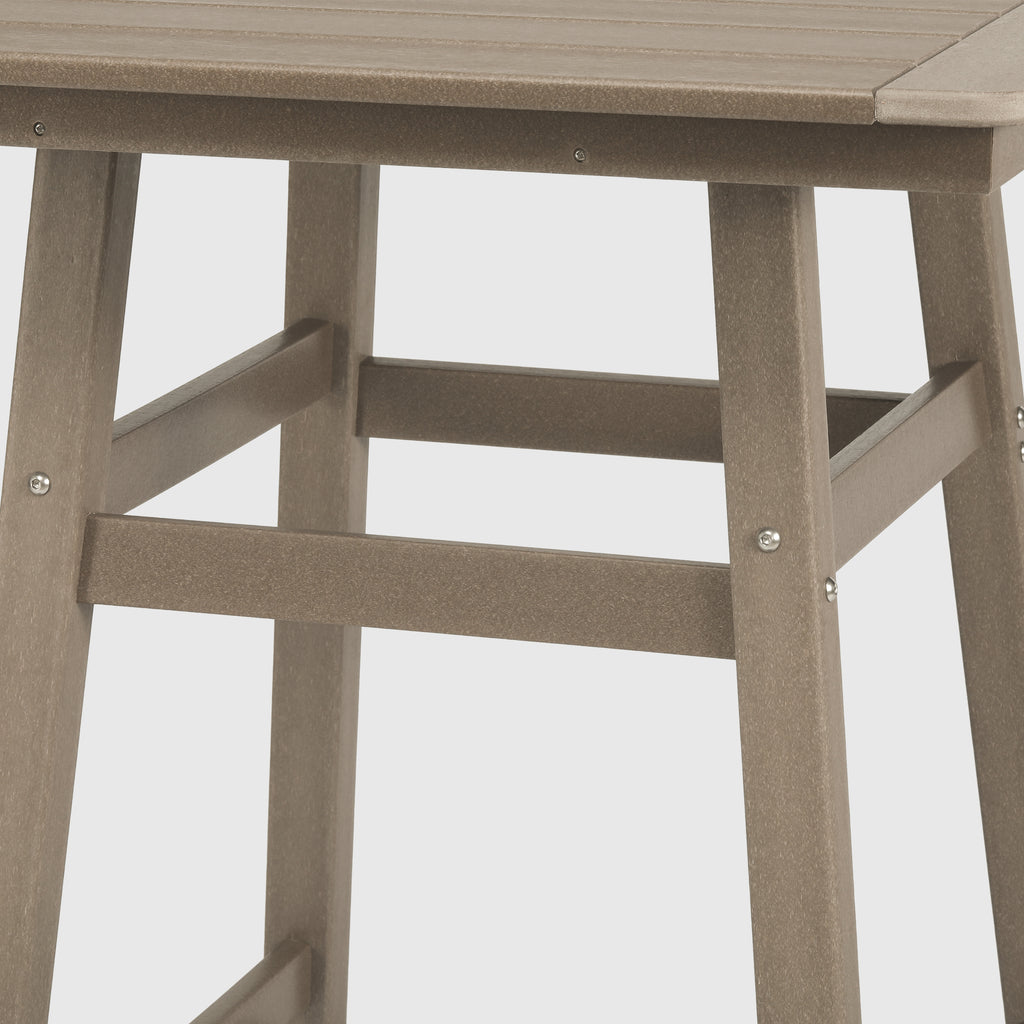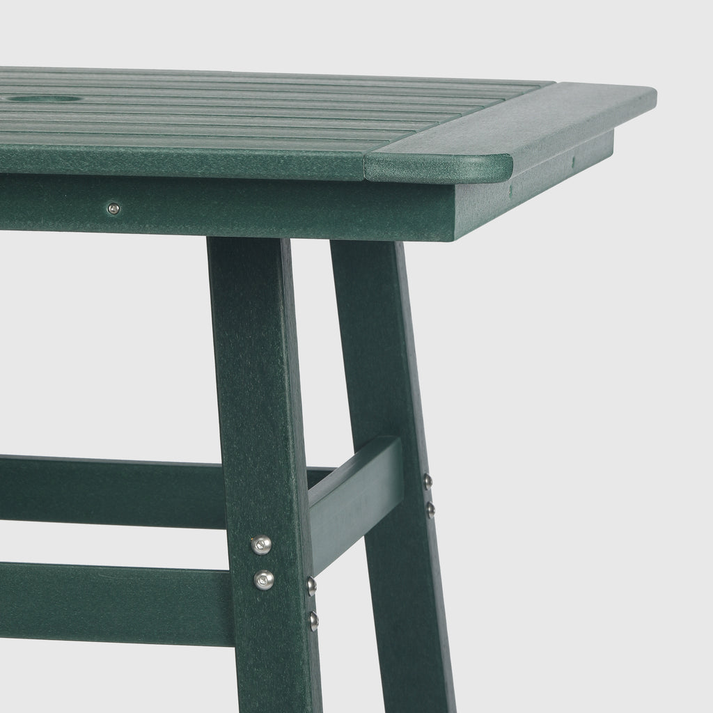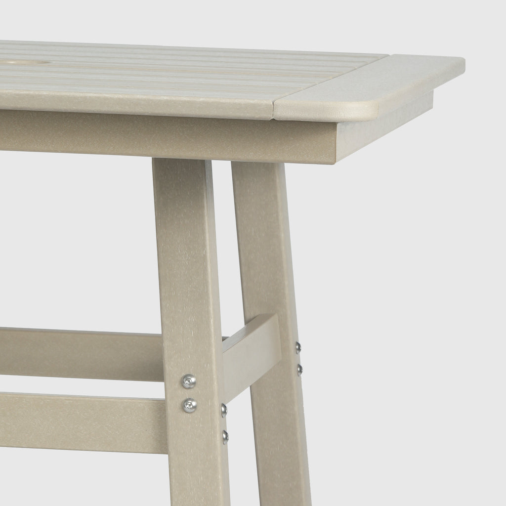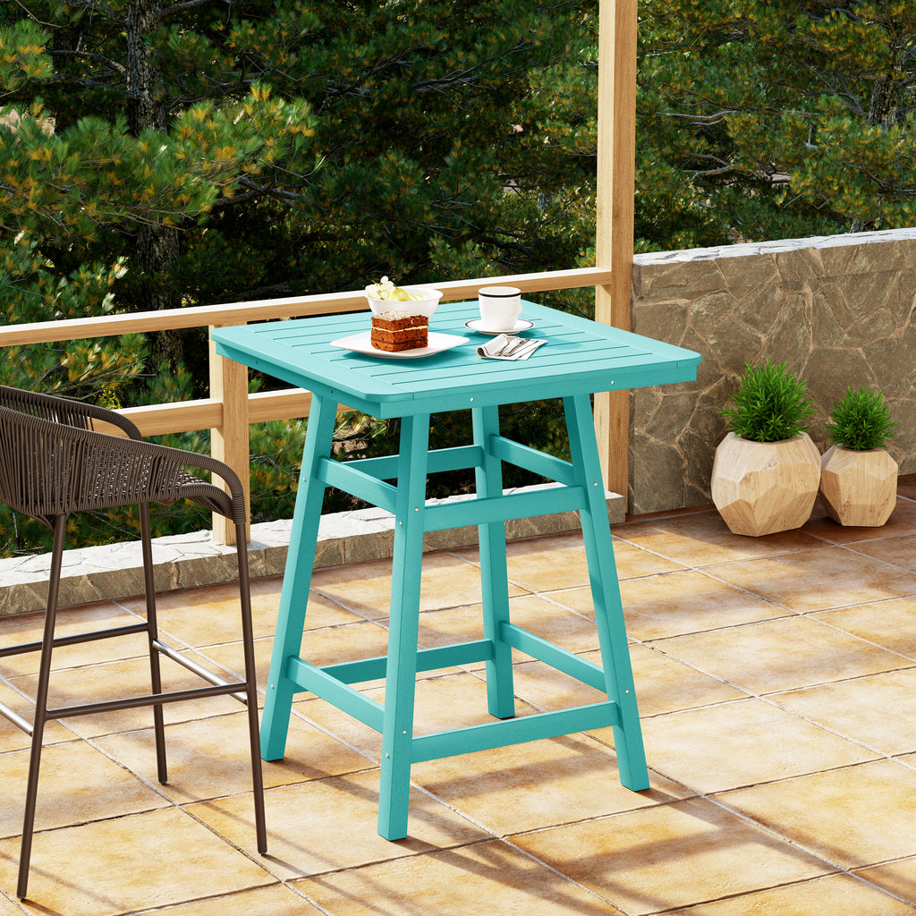 An exquisite addition to your outdoor patio this season, the Square Outdoor Patio Counter High Bistro Bar Table With Umbrella Hole provides an ideal setting for shared moments over drinks, snacks, and casual outdoor meals. Crafted from durable HDPE material, specially designed for outdoor use, it exhibits exceptional weather and UV resistance, ensuring longevity even in direct sunlight. Choose from a refined selection of fade-resistant colors to maintain its timeless charm season after season. Elevate your outdoor space with this sophisticated counter table, creating a classic and delightful ambiance for your family gatherings. Simply perfection for those who appreciate refined outdoor furnishings.