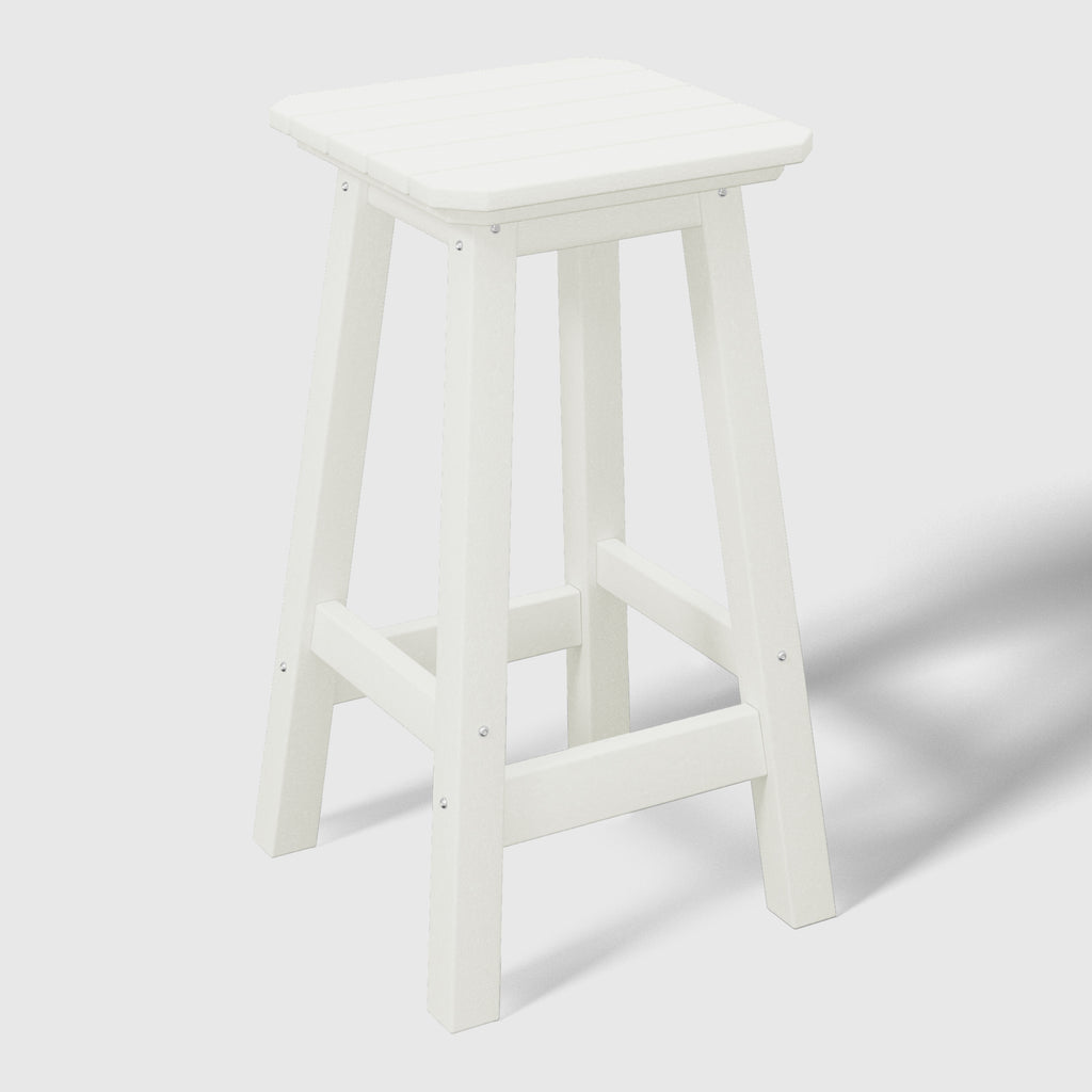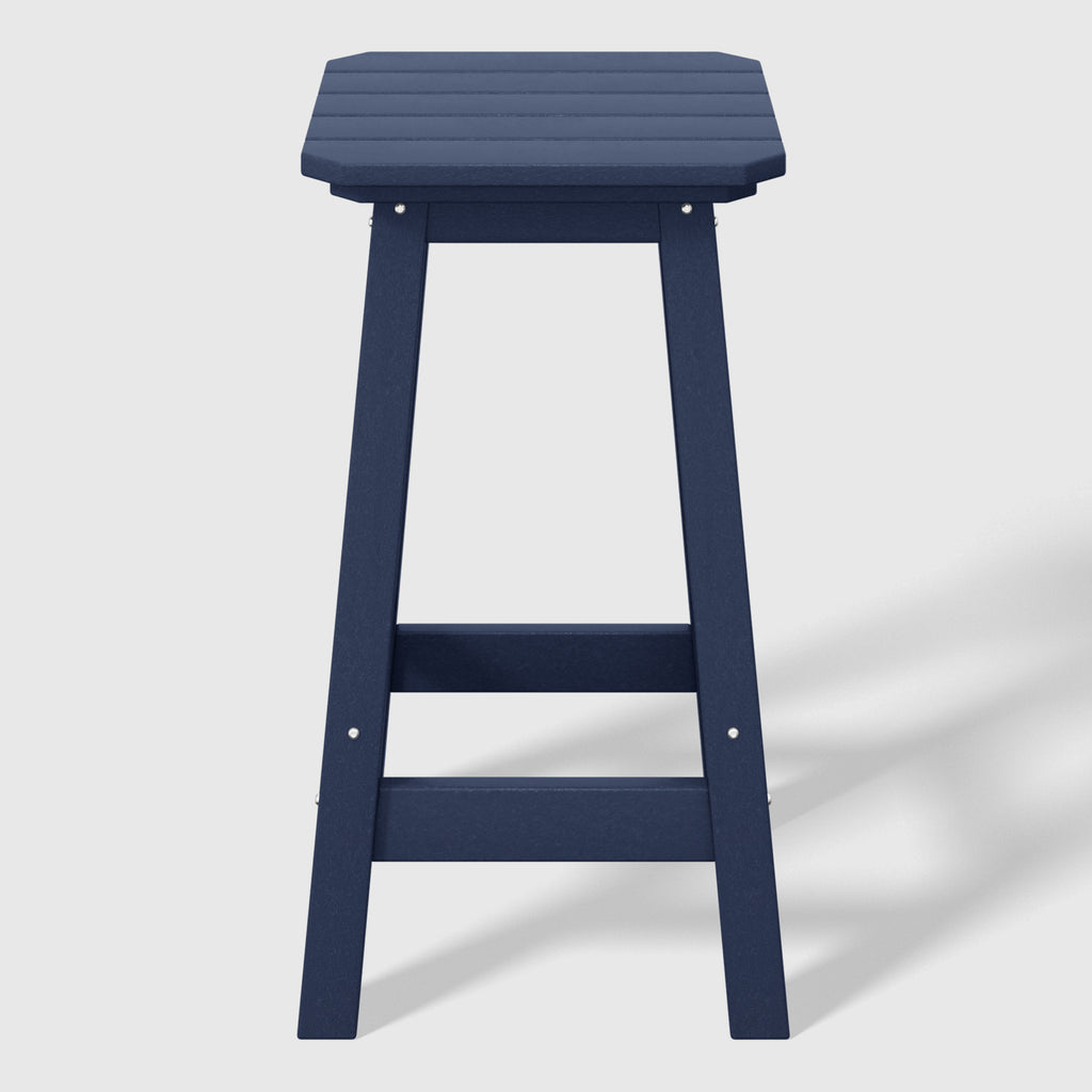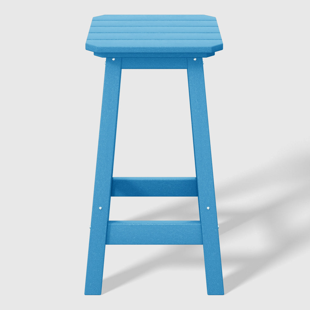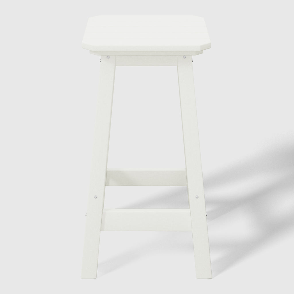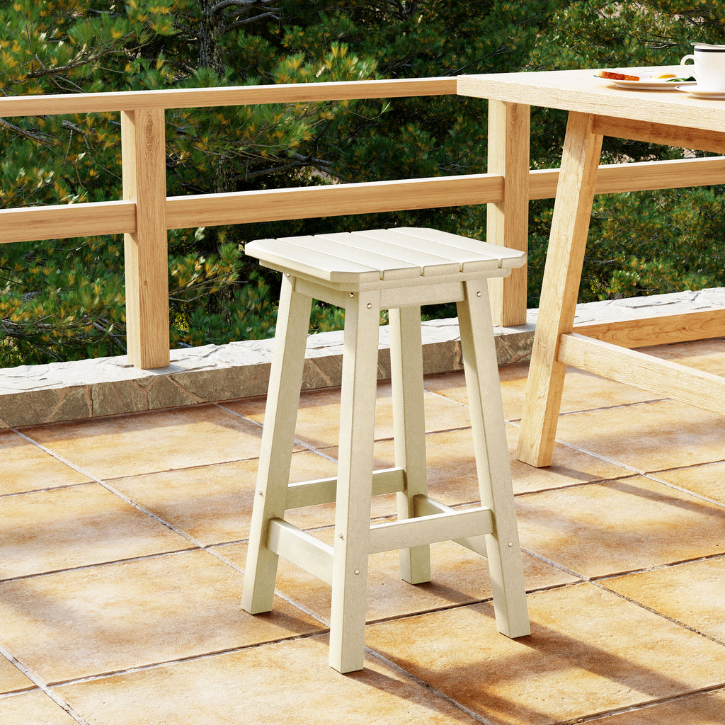 This 24" counter-high square-seat bar stool presents a sophisticated addition to your outdoor patio, ideally suited for placement around your outdoor patio bar or bistro table. crafted from durable and recycled HDPE material, its design is tailored for outdoor use, boasting UV and weather-resistant properties that safeguard the stool. available in a palette of fade-resistant solid colors, it ensures the enduring vibrancy of its charming hue each season. backless design makes for seamless storage underneath the table, offering both versatility and elegance. classic yet modern aesthetic effortlessly harmonizes with your existing decor, while the A-frame design, supported by four sturdy square legs and foot bars, provides a well-balanced and comfortable seating experience.