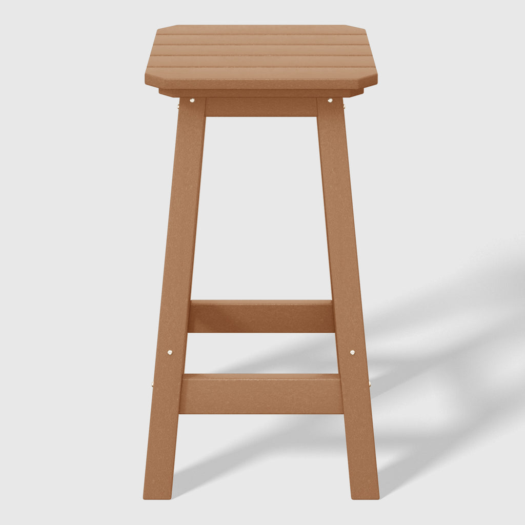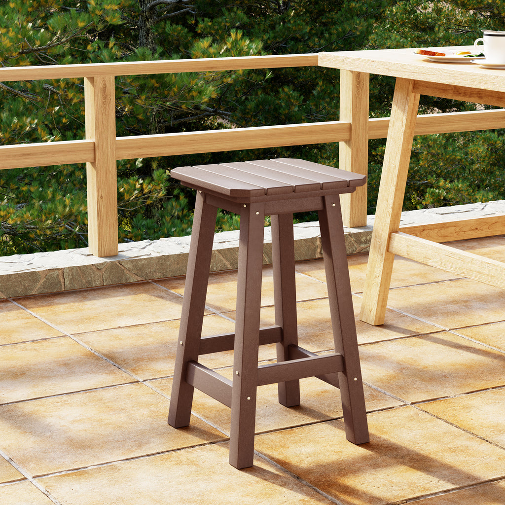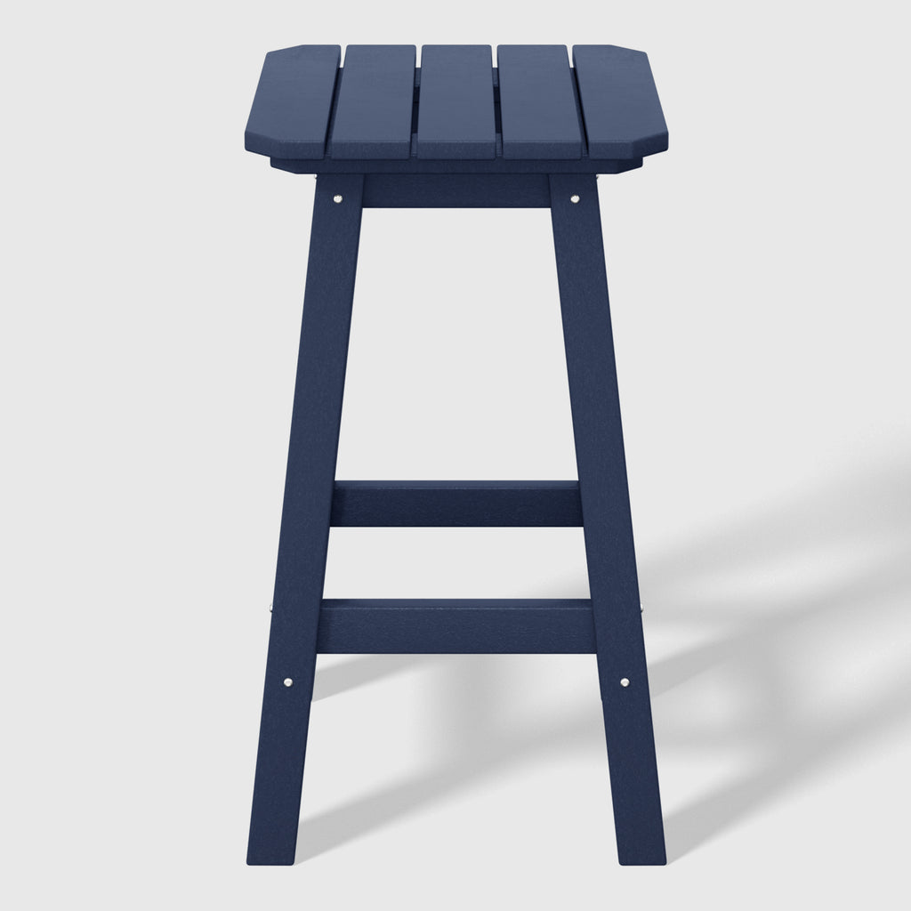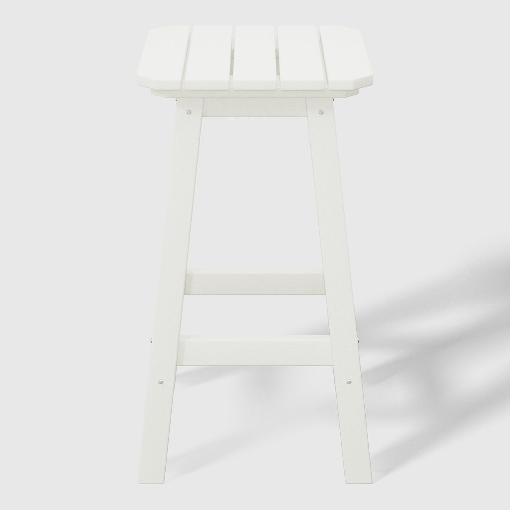 This 24" counter-high square-seat bar stool presents a sophisticated addition to your outdoor patio, ideally suited for placement around your outdoor patio bar or bistro table. crafted from durable and recycled HDPE material, its design is tailored for outdoor use, boasting UV and weather-resistant properties that safeguard the stool. available in a palette of fade-resistant solid colors, it ensures the enduring vibrancy of its charming hue each season. backless design makes for seamless storage underneath the table, offering both versatility and elegance. classic yet modern aesthetic effortlessly harmonizes with your existing decor, while the A-frame design, supported by four sturdy square legs and foot bars, provides a well-balanced and comfortable seating experience.