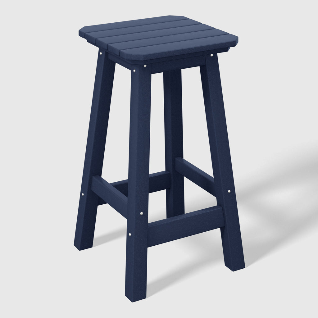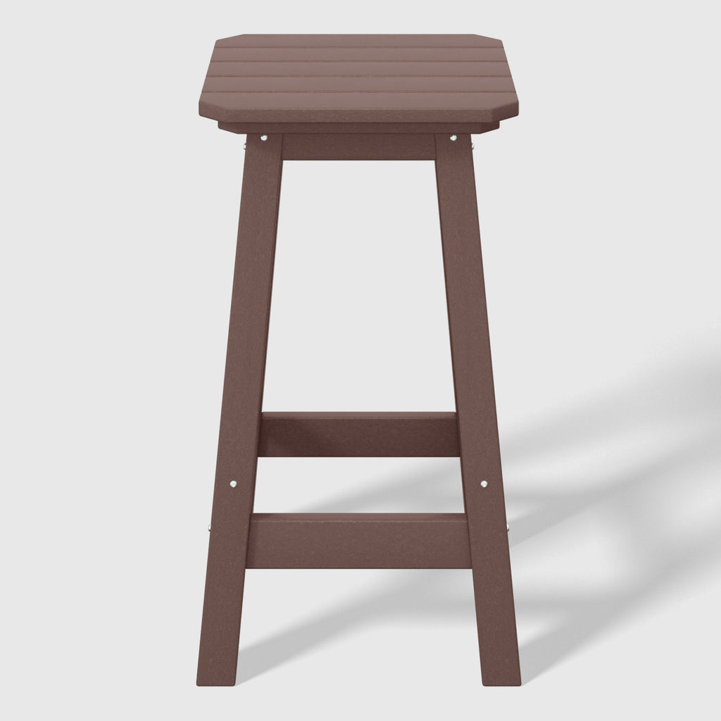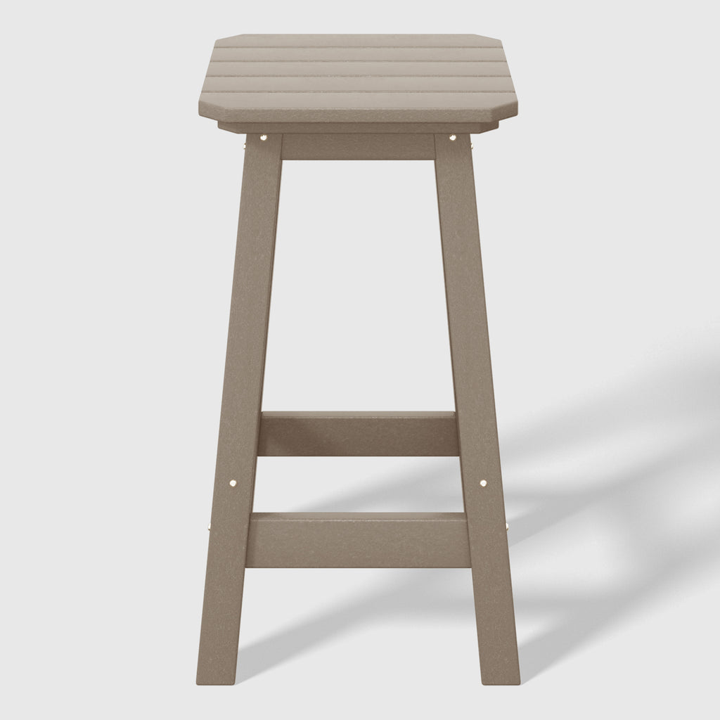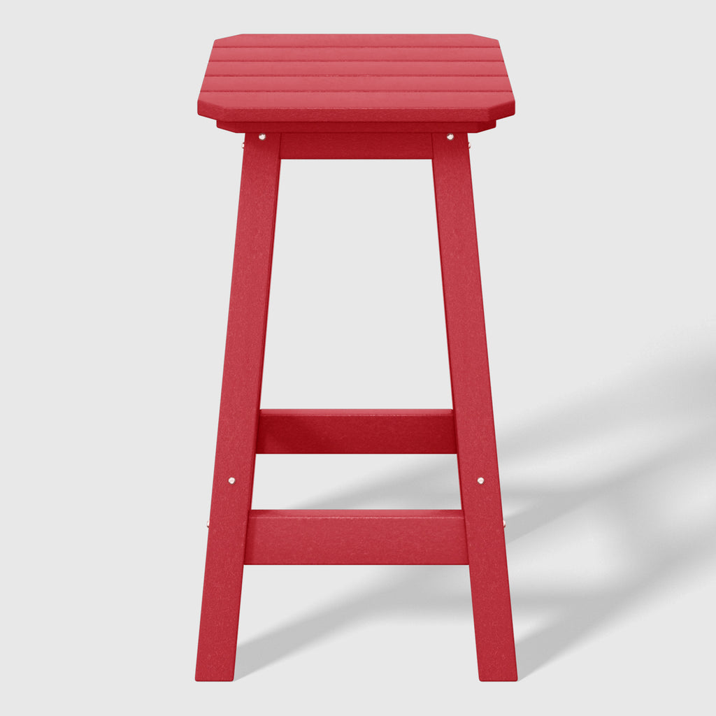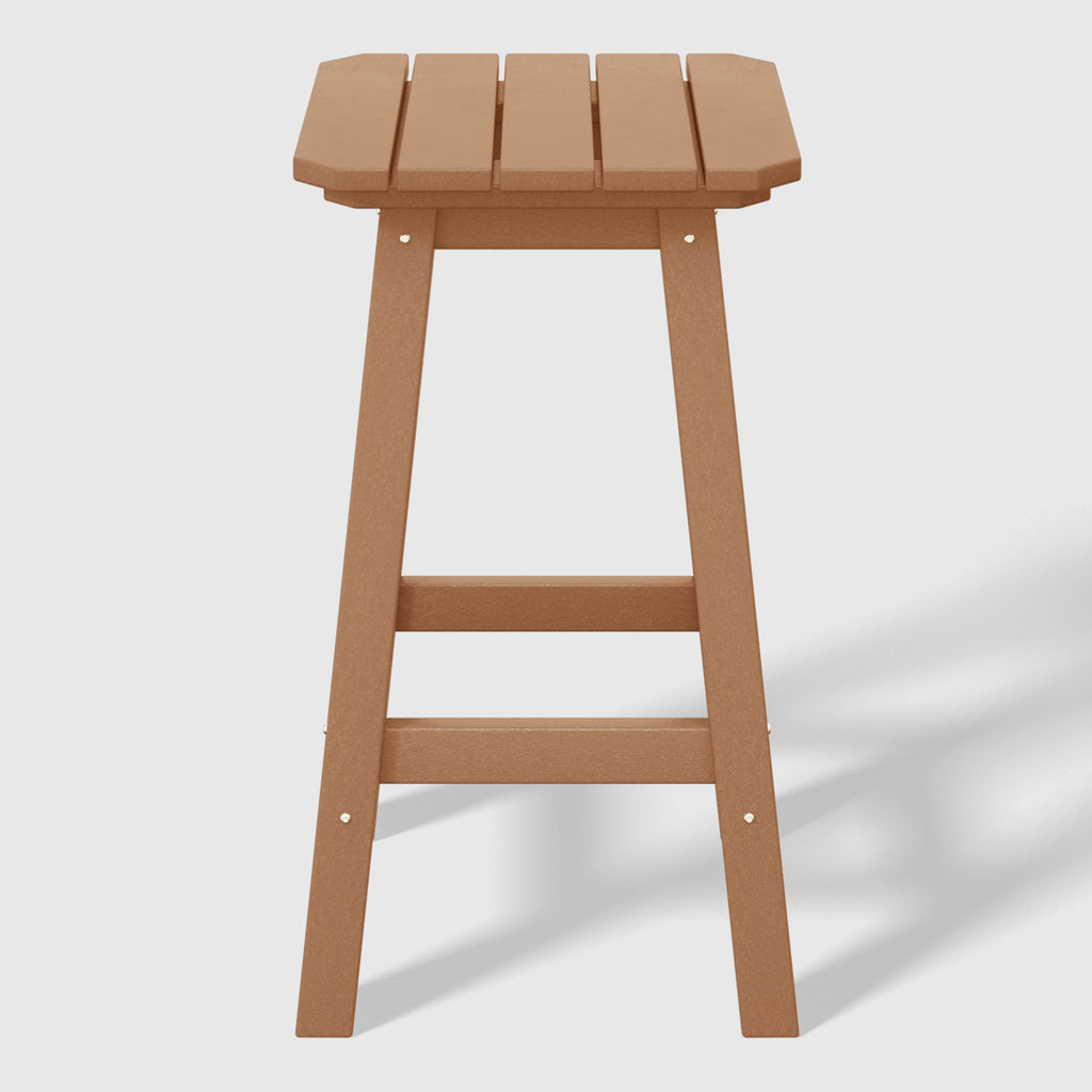This 24" counter-high square-seat bar stool presents a sophisticated addition to your outdoor patio, ideally suited for placement around your outdoor patio bar or bistro table. crafted from durable and recycled HDPE material, its design is tailored for outdoor use, boasting UV and weather-resistant properties that safeguard the stool. available in a palette of fade-resistant solid colors, it ensures the enduring vibrancy of its charming hue each season. backless design makes for seamless storage underneath the table, offering both versatility and elegance. classic yet modern aesthetic effortlessly harmonizes with your existing decor, while the A-frame design, supported by four sturdy square legs and foot bars, provides a well-balanced and comfortable seating experience.