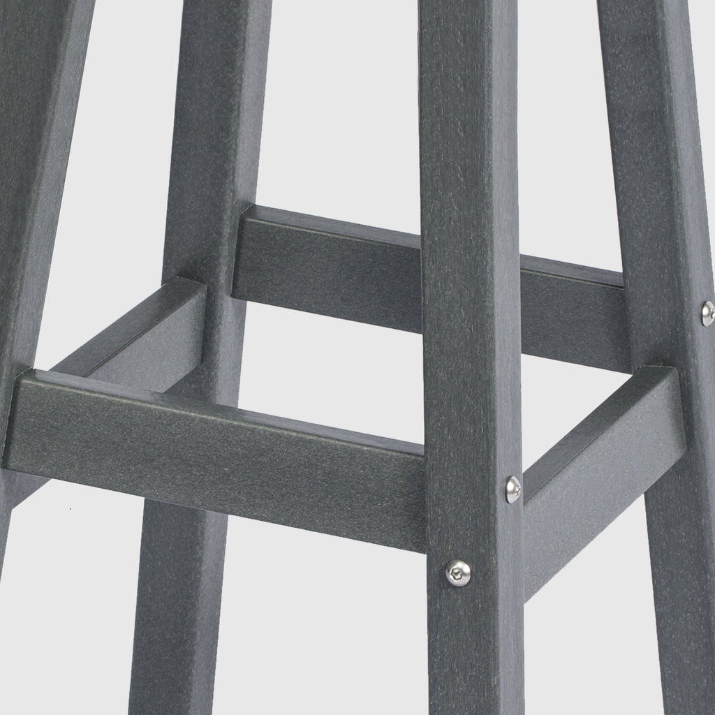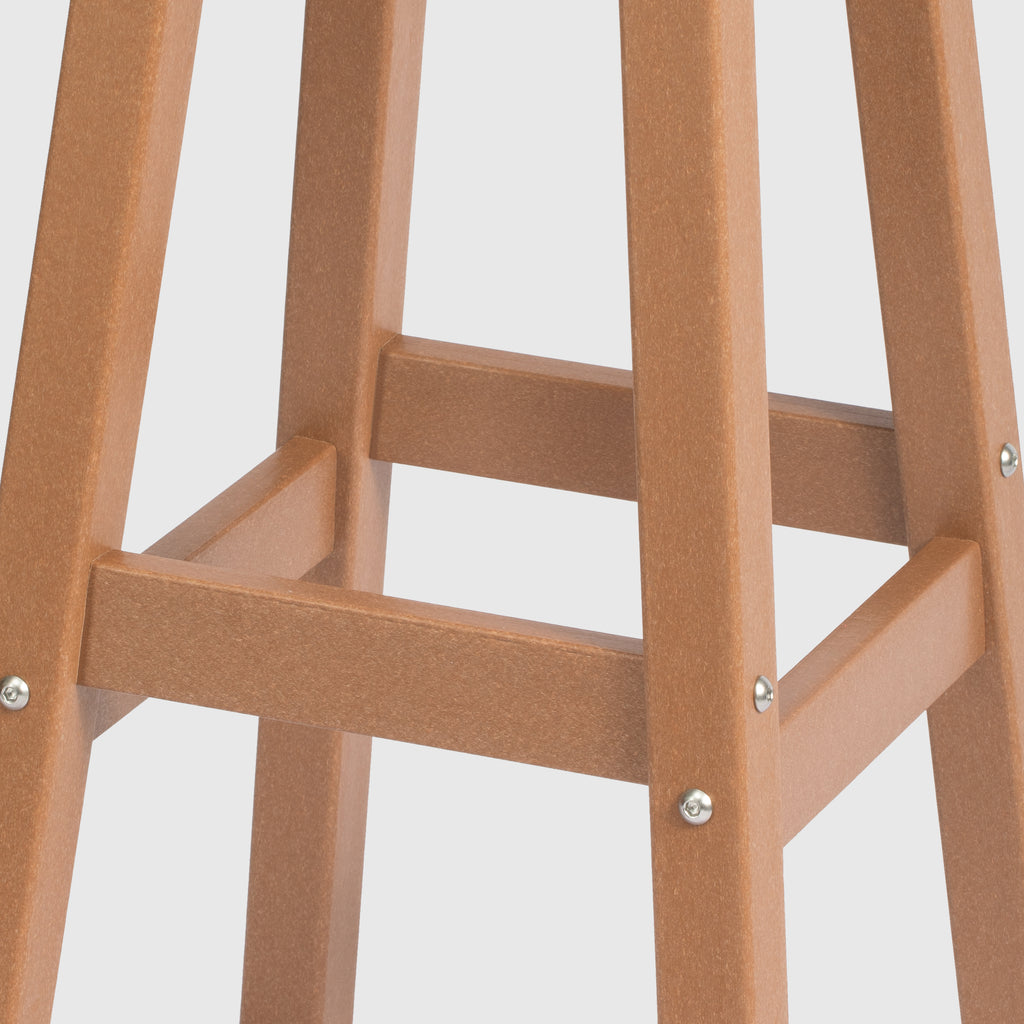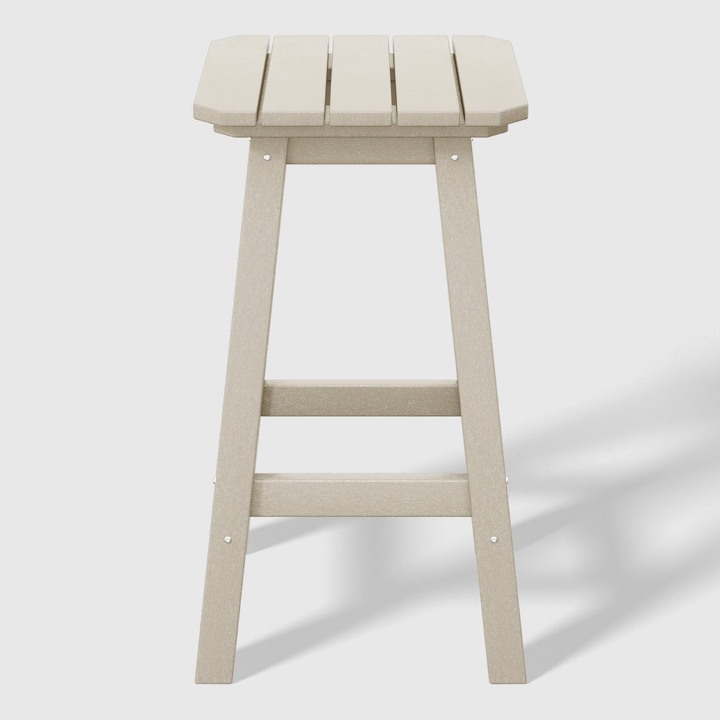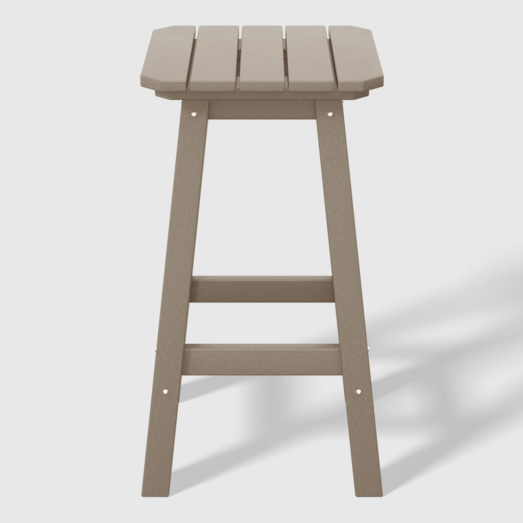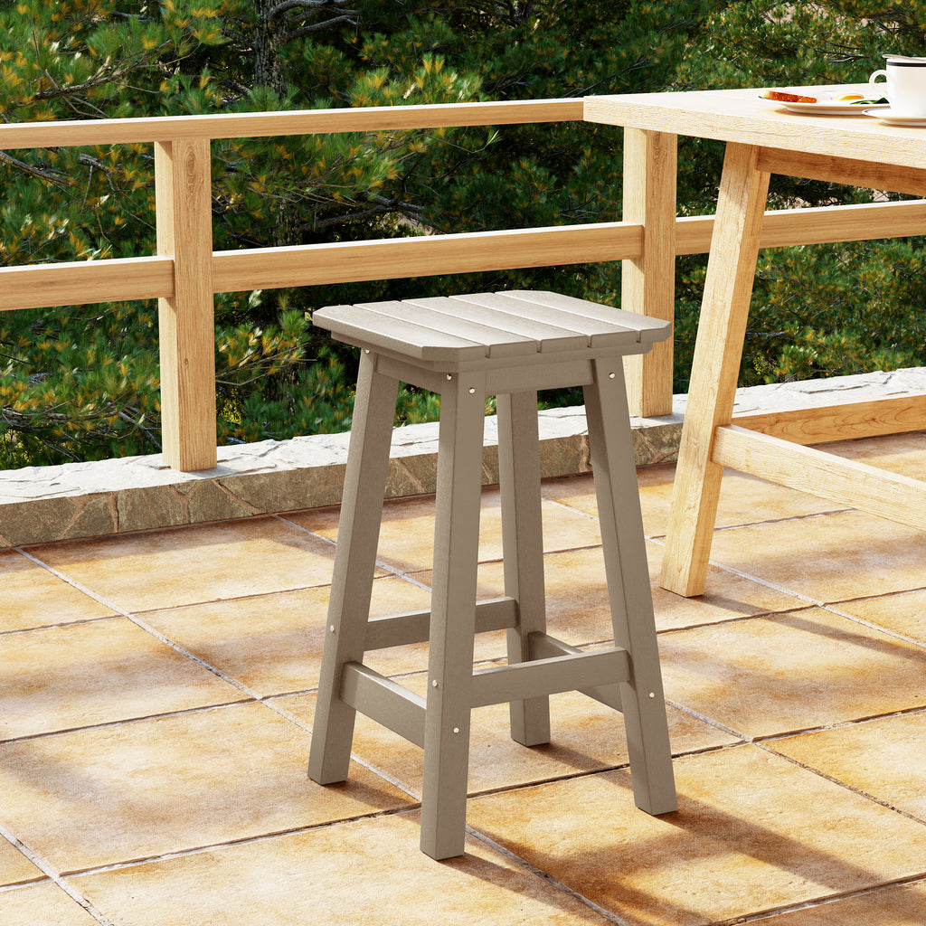 This 24" counter-high square-seat bar stool presents a sophisticated addition to your outdoor patio, ideally suited for placement around your outdoor patio bar or bistro table. crafted from durable and recycled HDPE material, its design is tailored for outdoor use, boasting UV and weather-resistant properties that safeguard the stool. available in a palette of fade-resistant solid colors, it ensures the enduring vibrancy of its charming hue each season. backless design makes for seamless storage underneath the table, offering both versatility and elegance. classic yet modern aesthetic effortlessly harmonizes with your existing decor, while the A-frame design, supported by four sturdy square legs and foot bars, provides a well-balanced and comfortable seating experience.