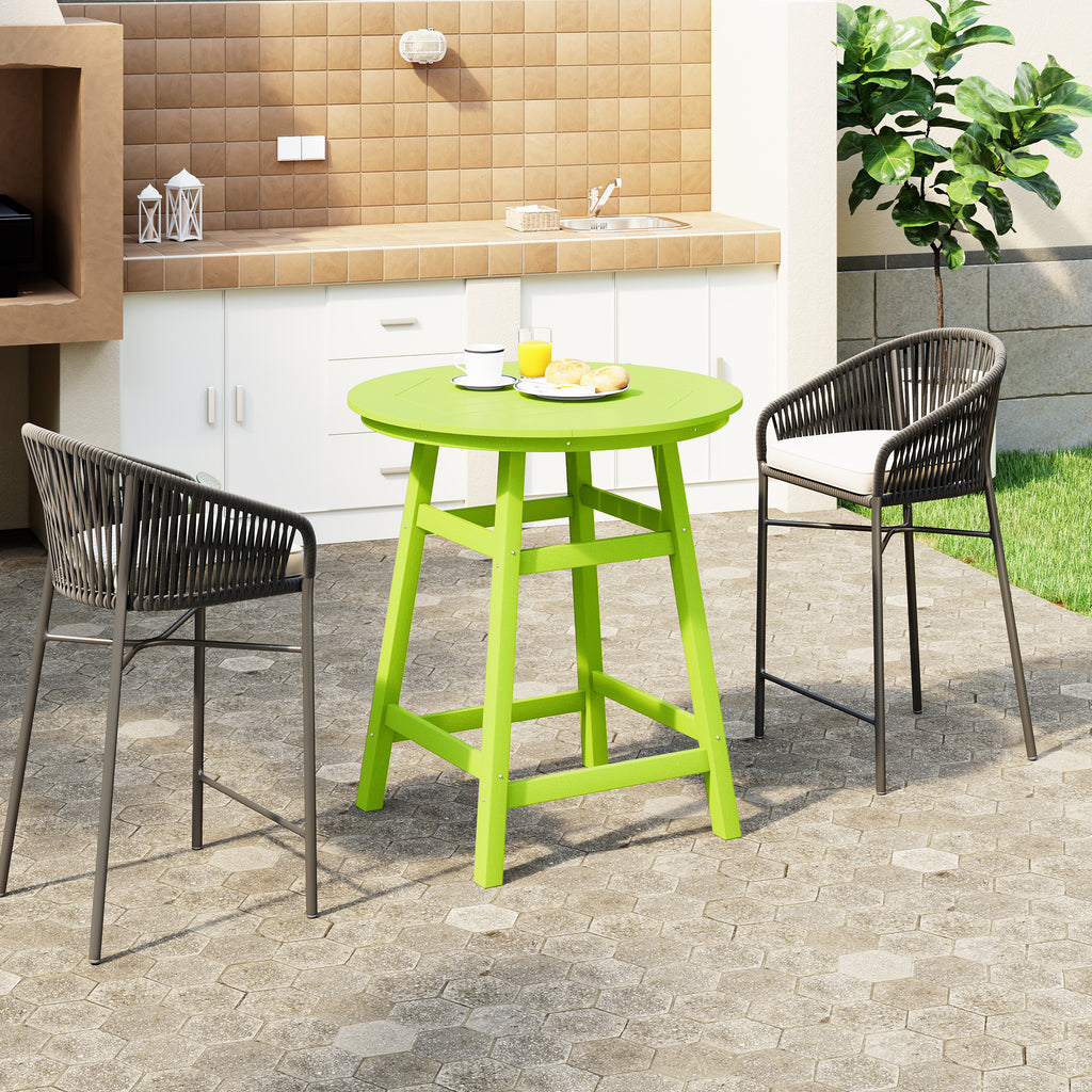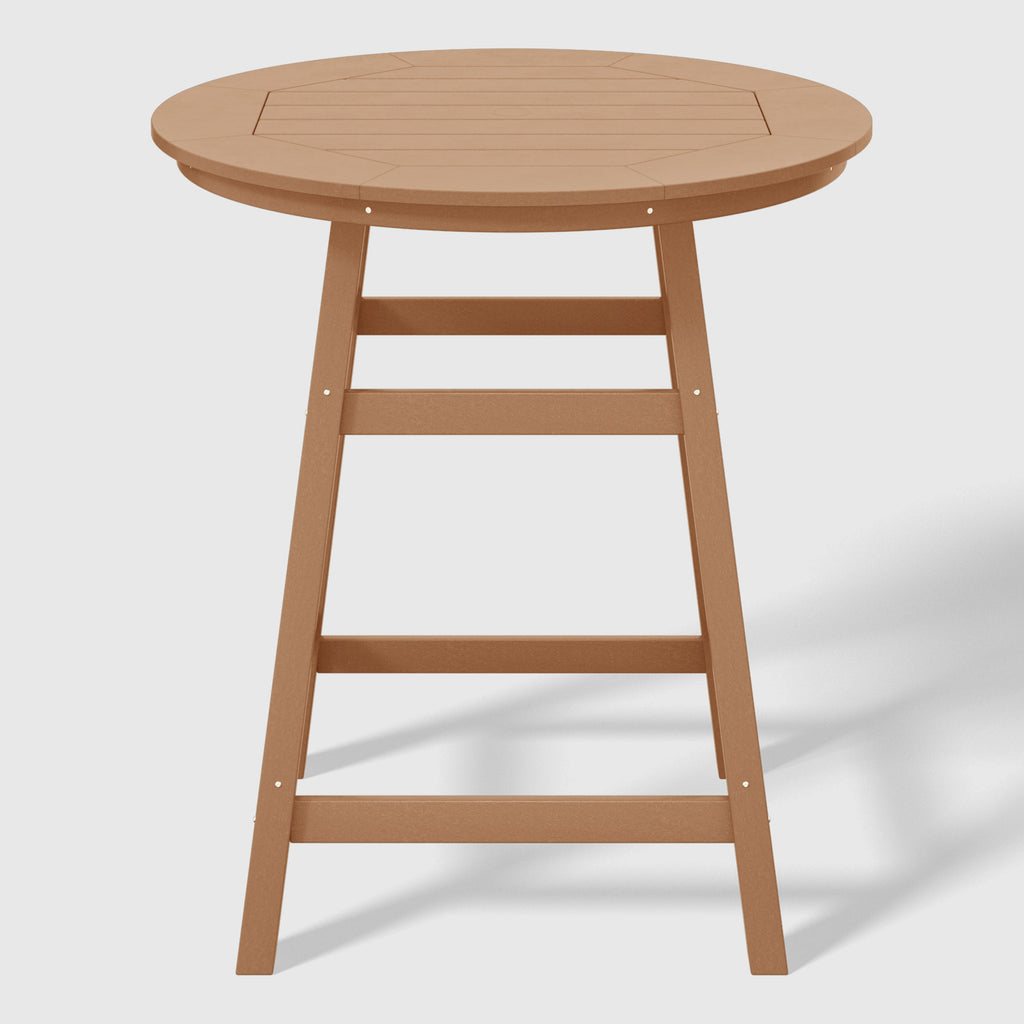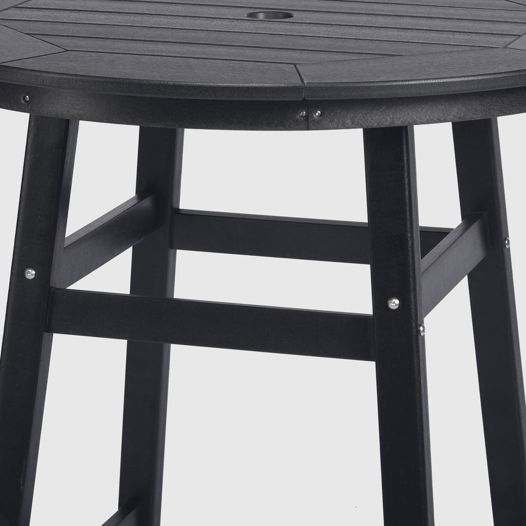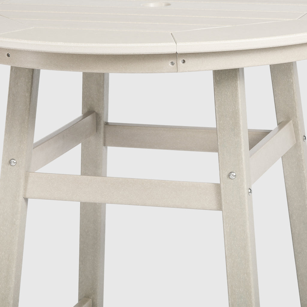 Upgrade your outdoor dining setup with our stylish 35" round counter high table—an ideal pick for relaxed garden or backyard bar patio gatherings. Crafted from weather-resistant materials, it's ready for anything nature throws its way. host effortlessly year-round, thanks to the durable HDPE material that resists UV and fading, ensuring your chic bistro bar table stays vibrant. The slatted and octagonal inner tabletop design, paired with its round shape, adds a touch of character, complete with a handy umbrella hole for those sunny days. This versatile bistro bar table is perfect for casual get-togethers with loved ones and friends this spring.