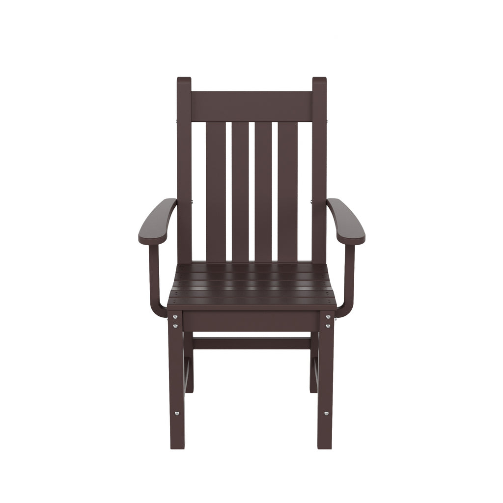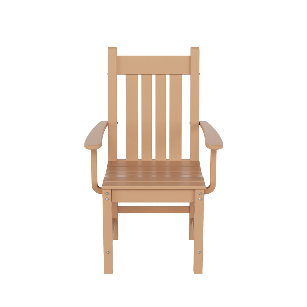 This outdoor dining chair is sure to complete your patio or backyard and match with your outdoor dining table. Created with HDPE material adds durability and can withstand the outdoor elements thanks to the HDPE's natural UV and weather resistant. The armless chair is made to look like natural wood without any of the disadvantages of natural wood, meaning that this outdoor chair isn't prone to splinters, cracks, or peeling. This dining chair is perfect for the outdoors and will have your home looking great with the semi-gloss finish that is sure to shine.