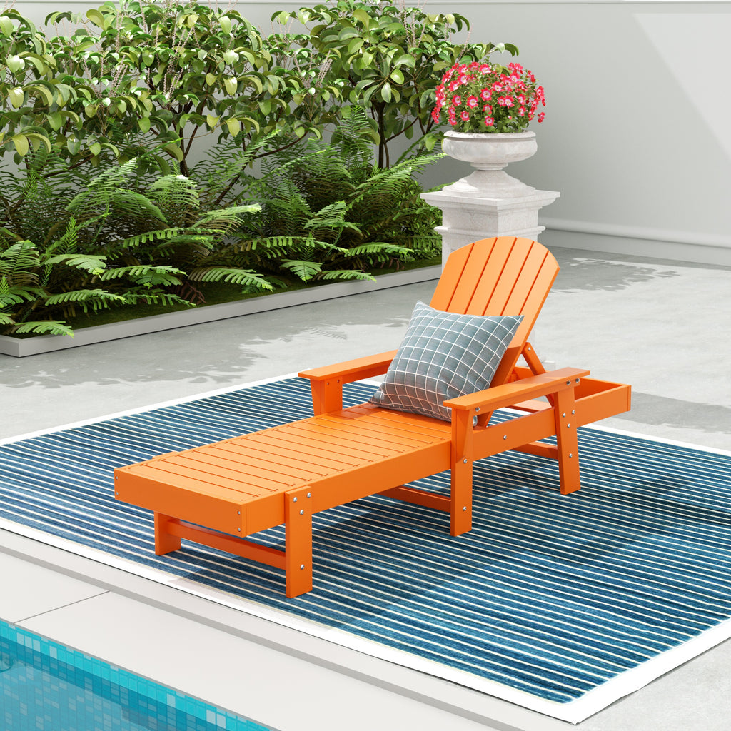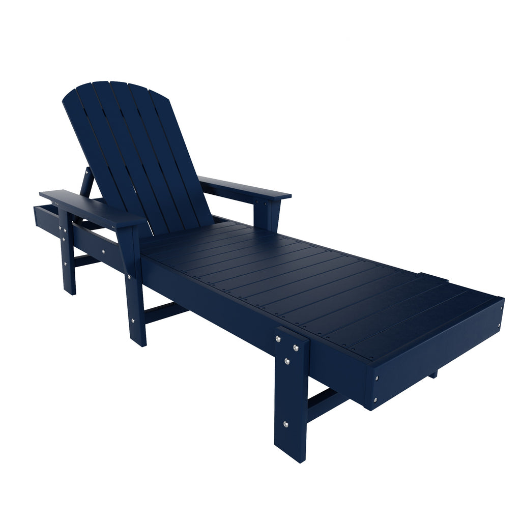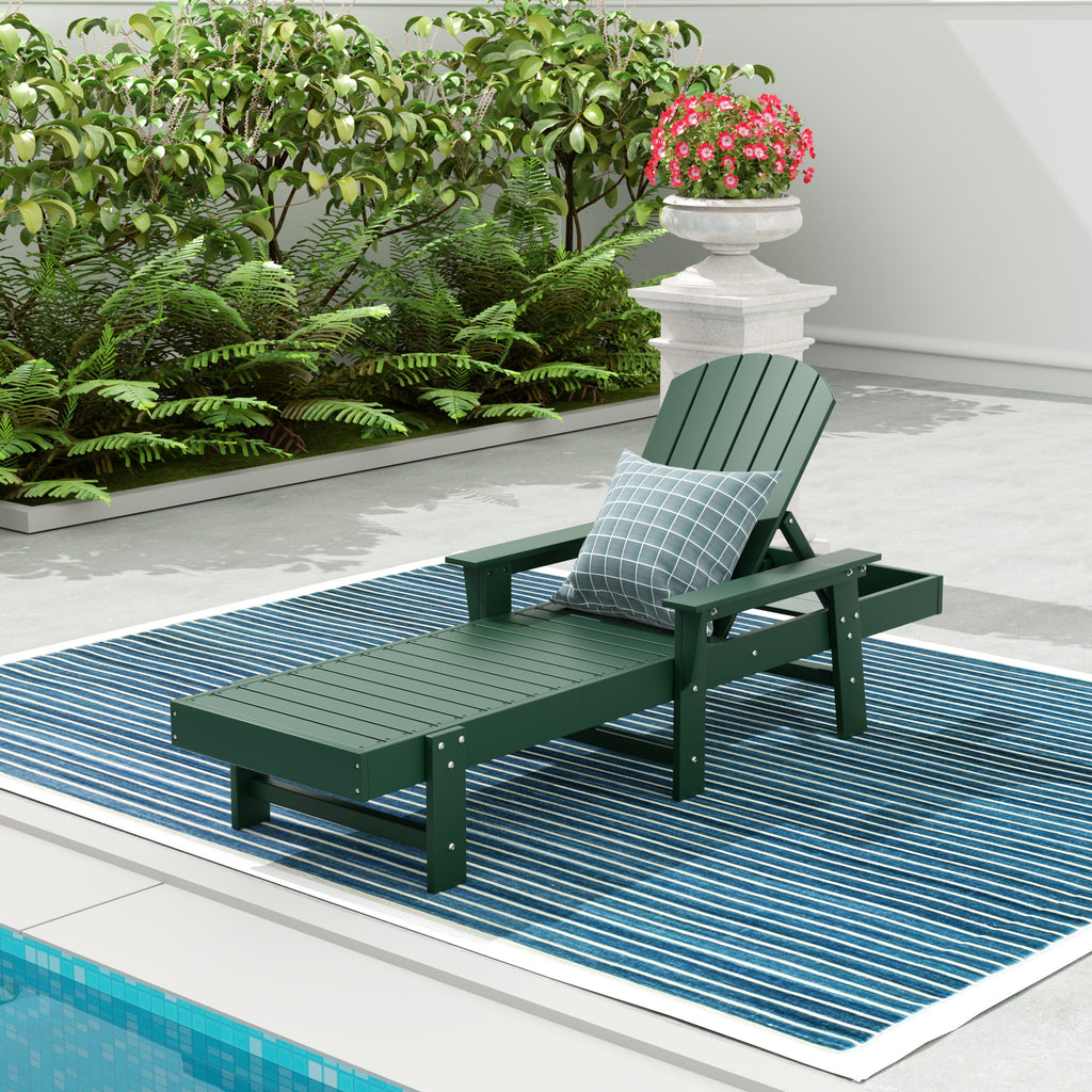 Lay by the poolside and catch a tan or read a book with this attractive reclining chaise lounger. Charming design with the seashell adirondack back that brings a piece of the beach with you and gives your backyard that refreshing feeling. Spacious seating, wide armrests, and slatted backrest make the perfect seat for relaxing. Made with an eco-friendly HDPE material that is durable and perfect for the outdoors, the all-weather and UV-resistant material helps keep the lounger protected each season.