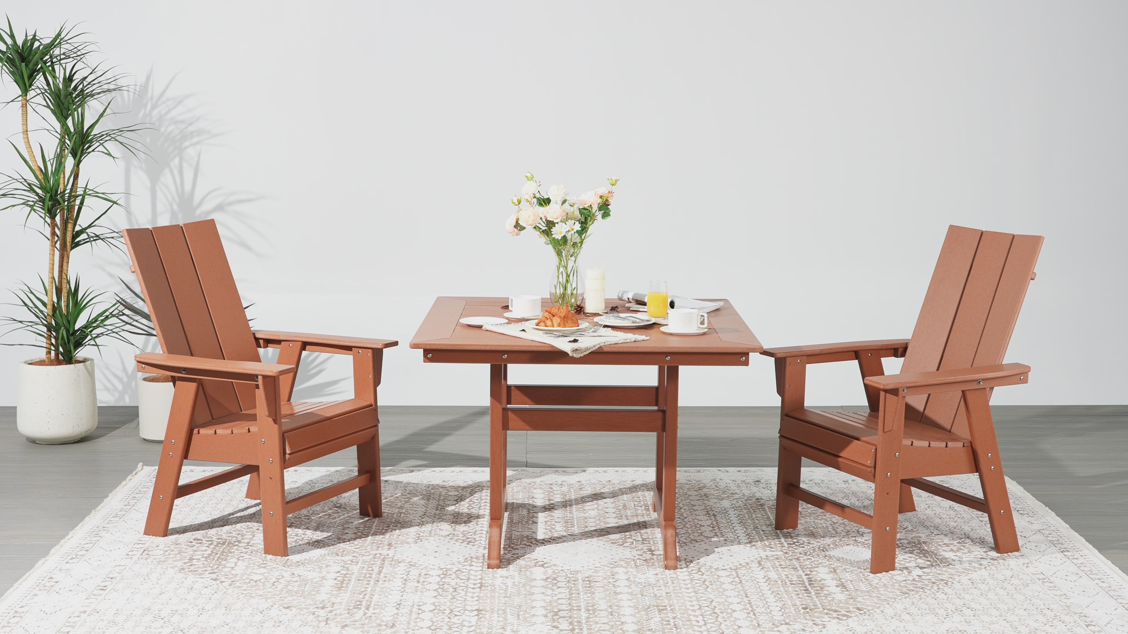 Sit back and relax in the oversized seat of the Adirondack dining chair. The chair’s curved modern style backrest designed for comfort, this casual all-weather dining chair will bring a touch of laid back beach style to any outdoor space. Created with HDPE material adds durability and can withstand the outdoor elements thanks to the HDPE's natural UV and weather resistant. The dining armchair is made to look like natural wood without any of the disadvantages of natural wood, meaning that this outdoor chair isn't prone to splinters, cracks, or peeling. This dining chair is perfect for the outdoors and will have your home looking great with the semi-gloss finish that is sure to shine.