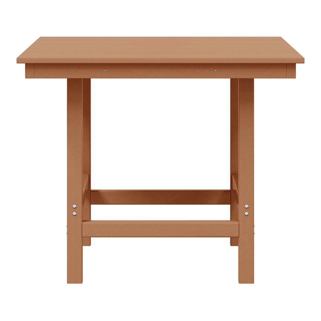 - Reinforced Tabletop Support Beam Construction with Stainless Steel Plates that Run Along the Side Skirts for Added Durability and Help Prevent Warping and 1.9" Diameter Built-In Umbrella Hole