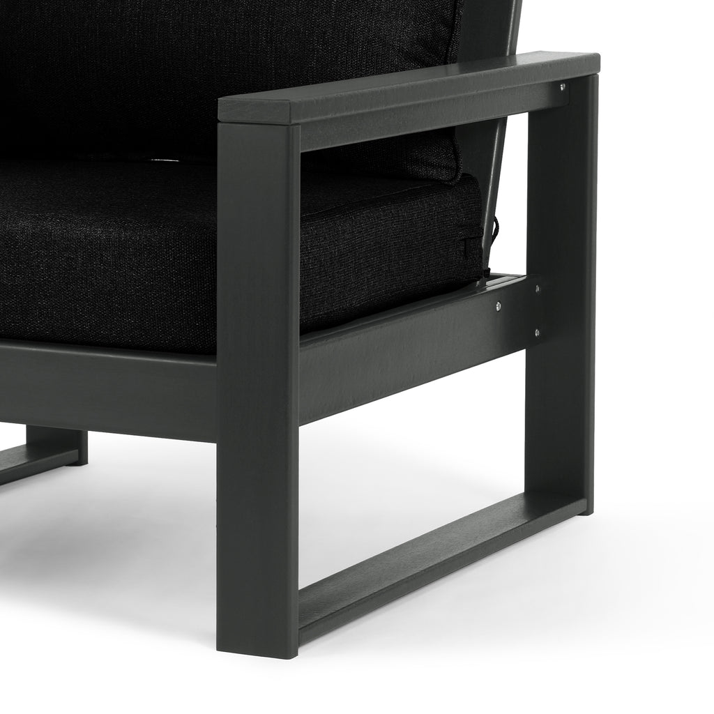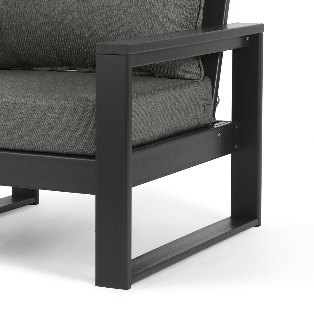 Relax by the poolside or on your patio under the stars with our charming Modern Outdoor Right Arm Facing Corner Club Chair with Fade Resistant Deep Seating Cushions. Lounge back in bliss with the deep, inclined seat rest and the slanted backrest, which offer a relaxing design. Plush, soft, yet firm cushions are filled with high-resilience foam, making them the perfect blend of comfort and durability. The olefin cushion covers are removable and machine-washable, and they are also waterproof and UV and fade-resistant, perfect for the outdoors. Our outdoor club armchair is a perfect blend of comfort and design, featuring durable and thick HDPE material with a U-shaped leg design that ensures stability. Turn your backyard into an oasis with this patio sofa chair this season.