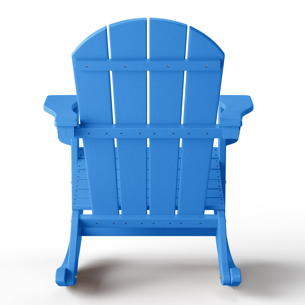 Ideal chairs for unwinding in your backyard or porch on a sunny day while enjoying time with friends or family. Relax all day long thanks to the chair's contoured seat, wide armrests, and slanted seat that will have you falling into relaxation. With a smooth rocker rail base that gently rocks back and forth for a comfortable rocking experience. Created with high-quality HDPE Poly material that is durable and made to last and with the help of the weather and UV resistant treatment that protects the chairs vibrant color all year long.