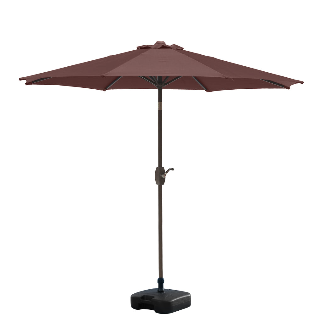 - Set includes: one (1) 9 ft market umbrella one (1) fillable base