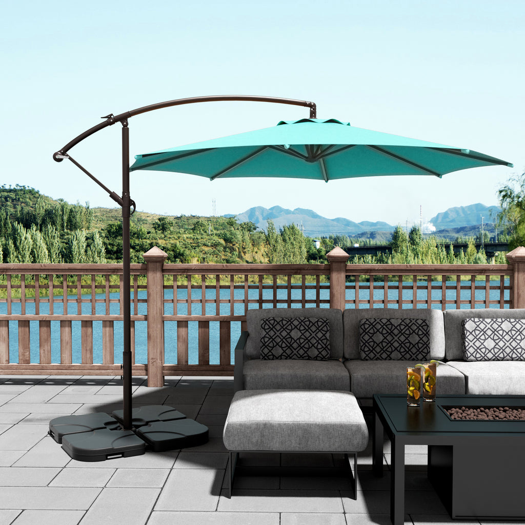 - Set includes: (1) 10 ft. cantilever umbrella one (1) 4-piece base weights