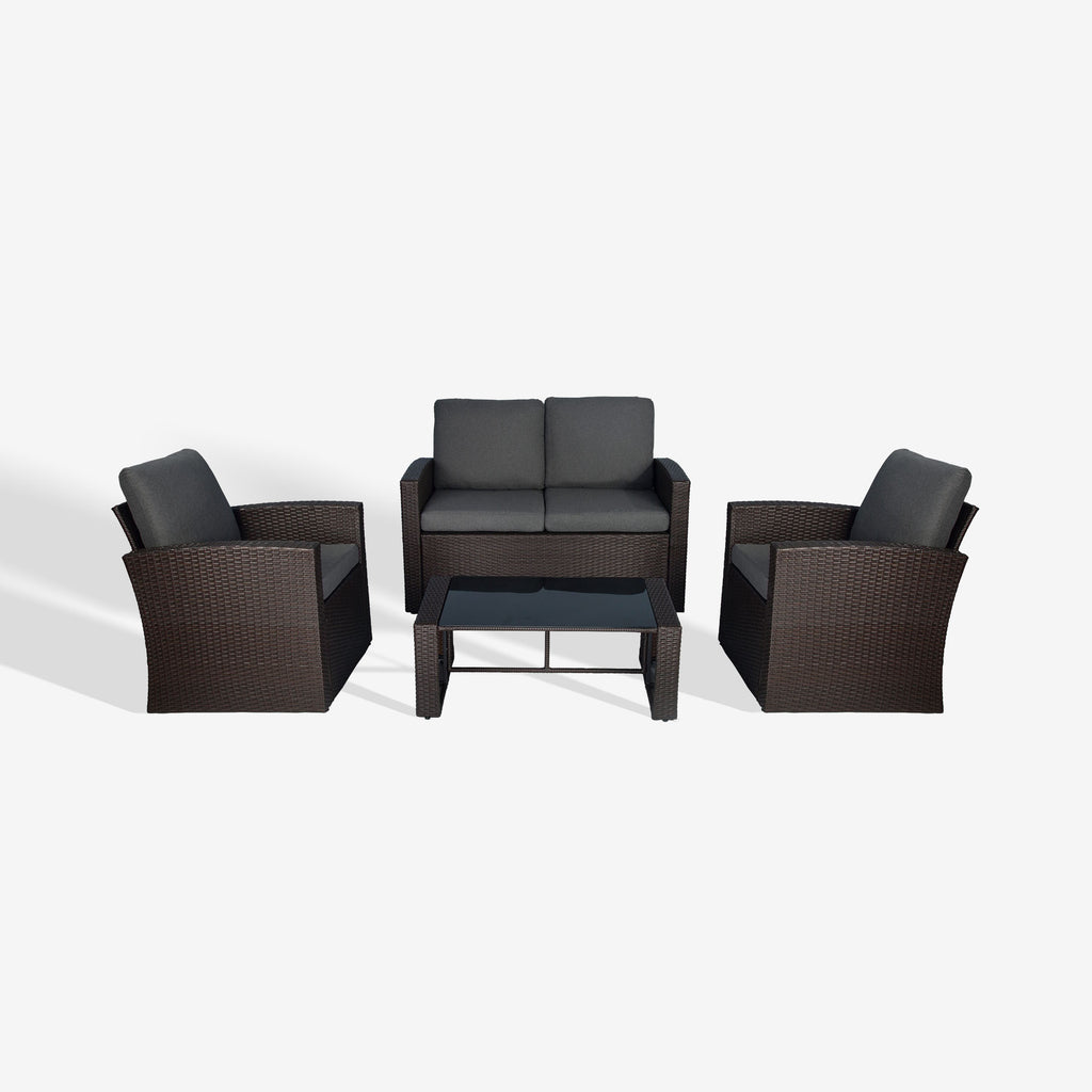 Enhance your patio with this exquisite and long-lasting 4-piece outdoor furniture ensemble that embodies exactly what you've been seeking. Crafted with a steel frame and rattan wicker material, it not only imparts unwavering stability but alleviates concerns about rain-induced dampness or sun-induced fading, promising lasting quality. The plush and breathable cushions deliver a serene rebound and utmost comfort, ensuring that you can relish moments of leisure and relaxation with your loved ones effortlessly. Its lightweight nature empowers you to effortlessly rearrange the rattan furniture to suit diverse settings.