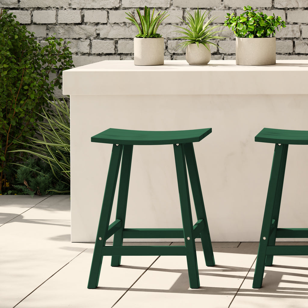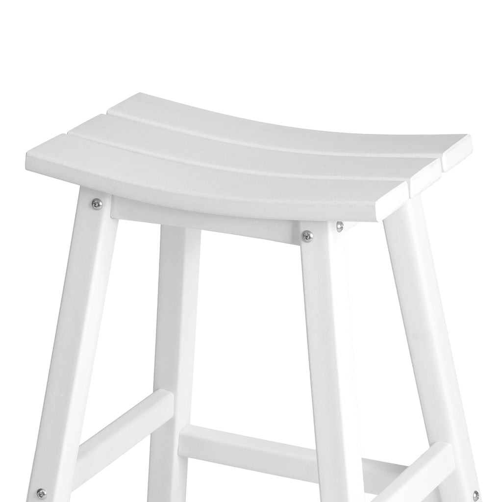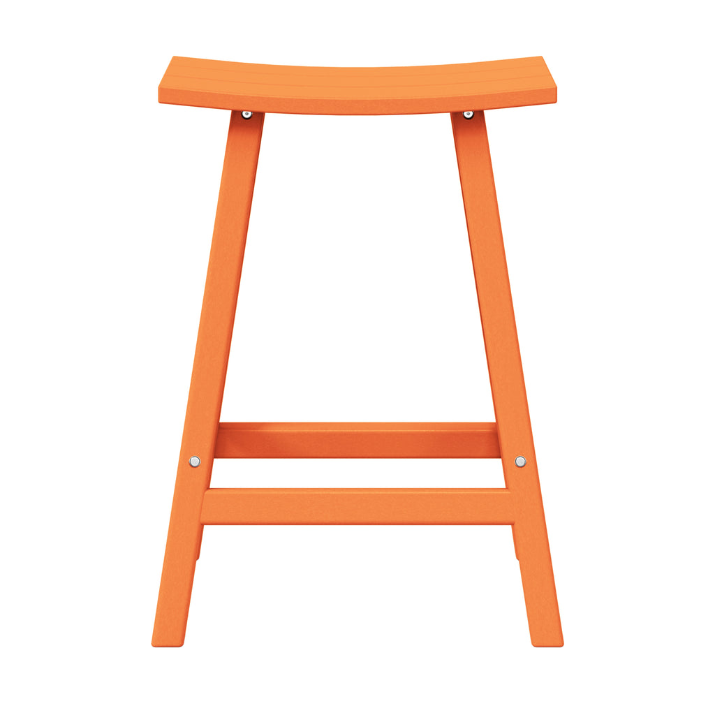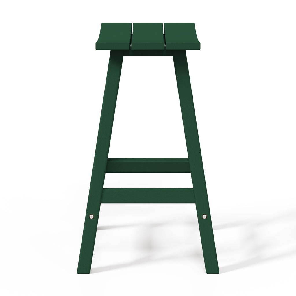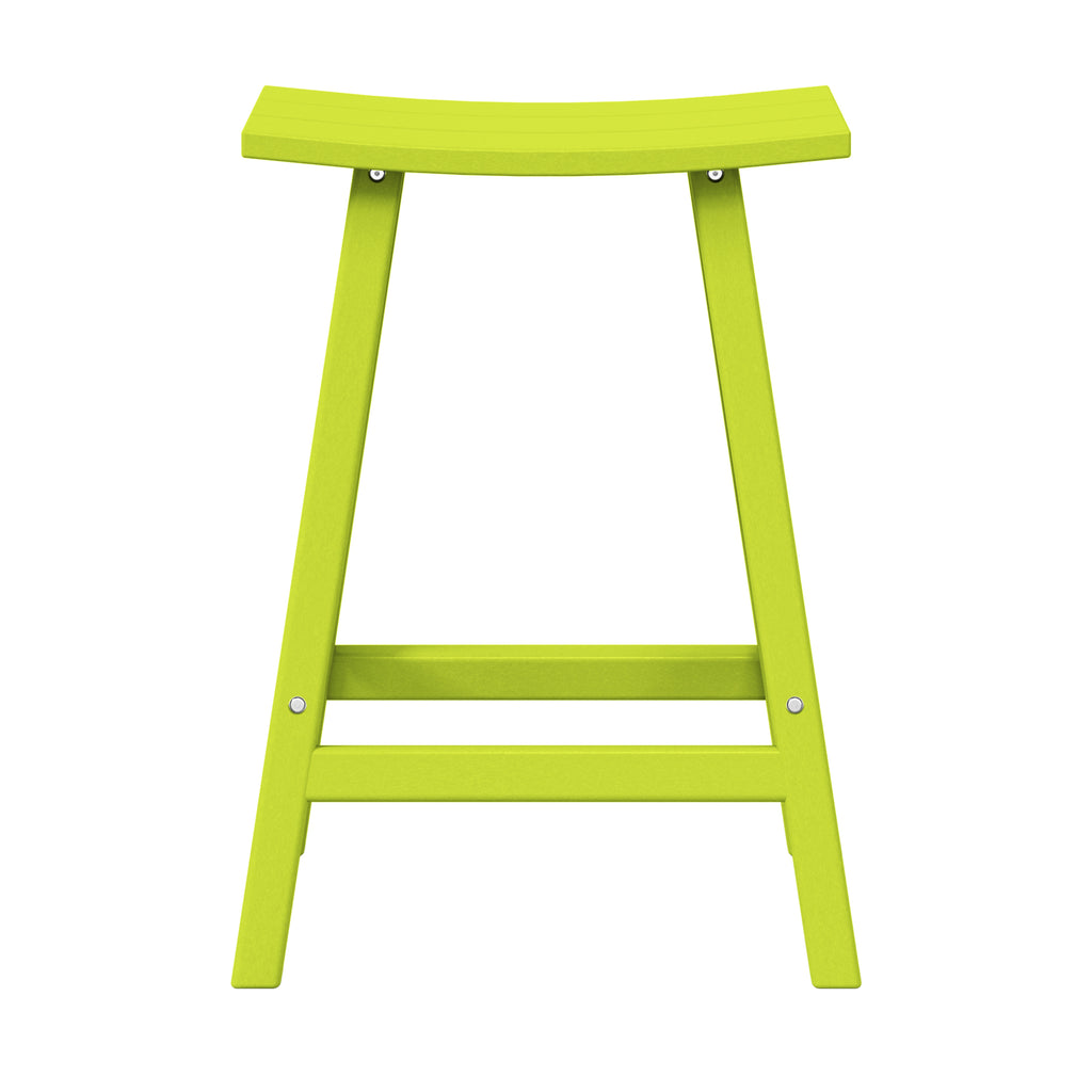 Comfort and style combined into this 24" Inch Outdoor Patio Bar Stool. The stool features solid HDPE construction that is made for daily outdoor use. UV and weather-resistant materials help keep its vibrant shine for many years of use. This outdoor bar stool is a great way to add convenient seating to the kitchen, home bar, den, outdoor patio and more. This set of bar stools is designed to add a classic style to your home or outdoor living space. Combines perfectly with other Adirondack style furniture to help complete your outdoor set up. Saddle slatted seats will bring an elegant and comfortable style to any patio bar area. The UV and weather resistant material make them able to last from season to season. fade-resistant to help keep its true color. Comfortable footrest and wide seating. A classic Adirondack Backless Barstools provide stylish comfort that is perfect for your backyard bar or lounge. Available in easy to match colors. Slide them up to a Patio bar or use at a kitchen counter.