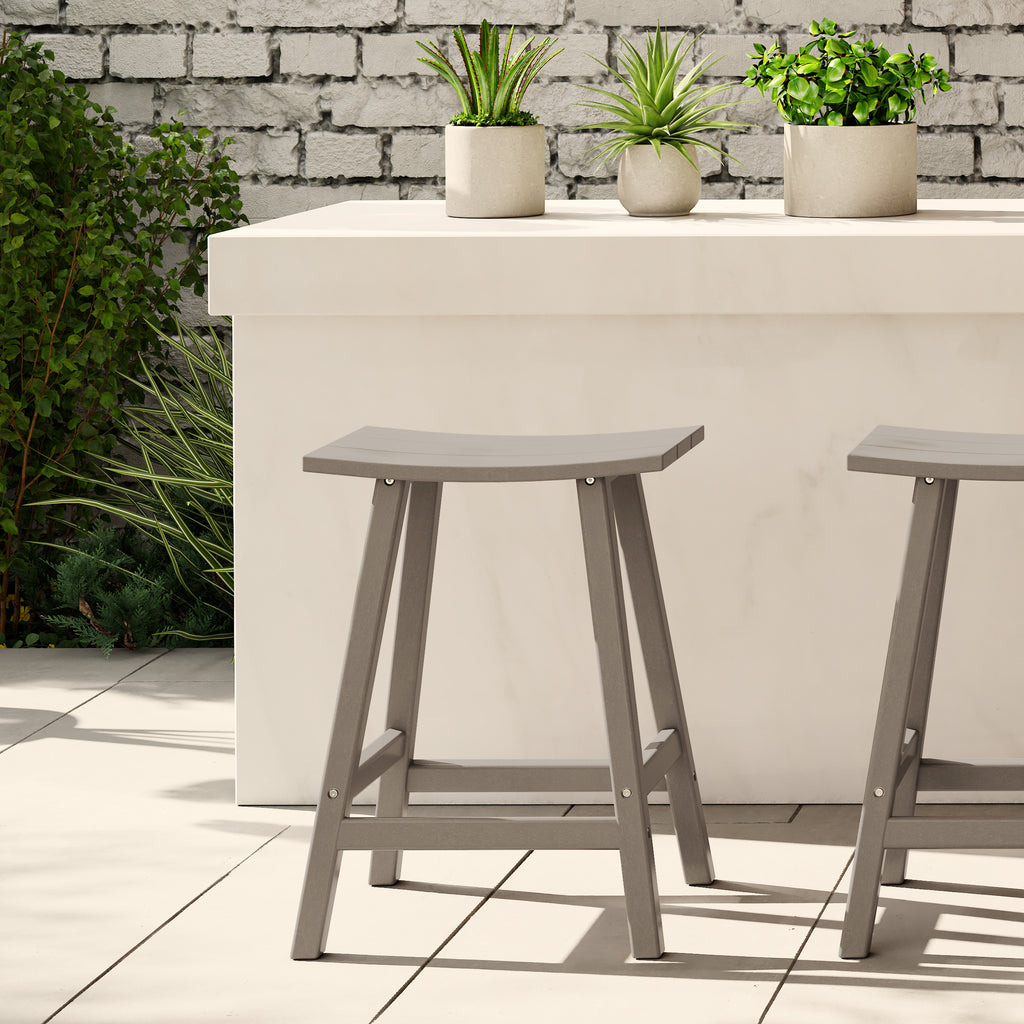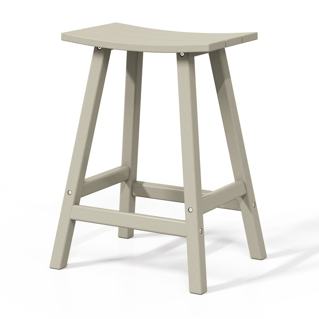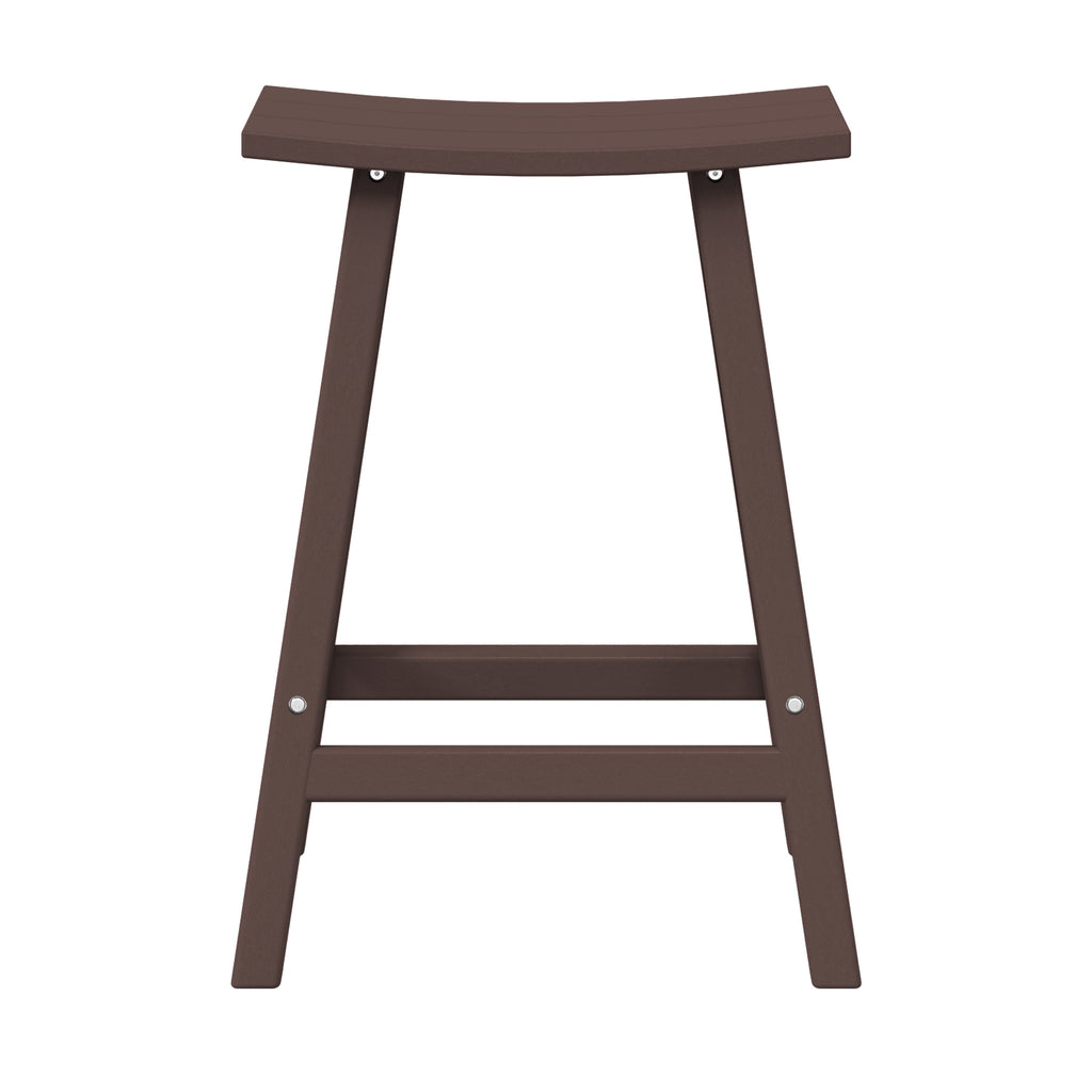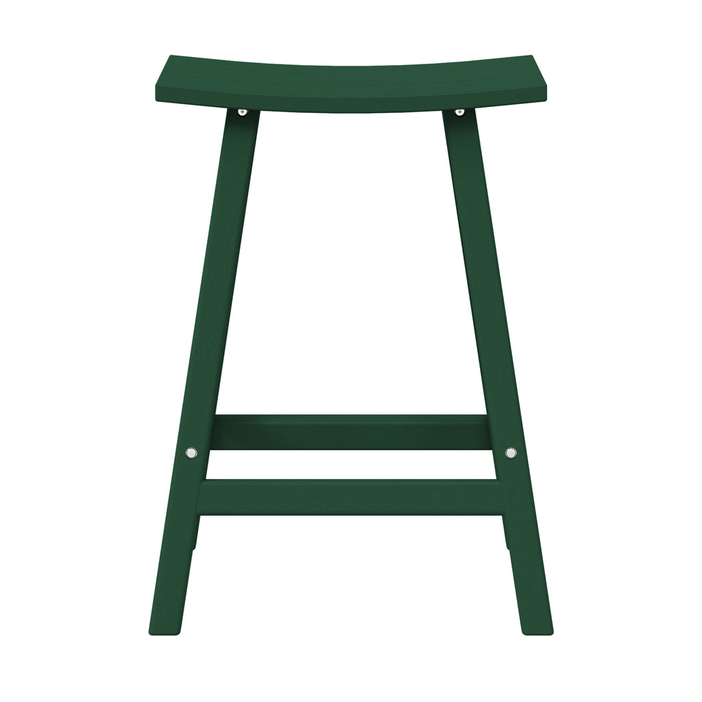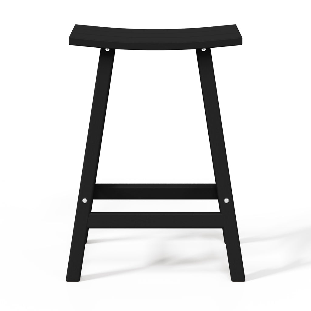 Comfort and style combined into this 24" Inch Outdoor Patio Bar Stool. The stool features solid HDPE construction that is made for daily outdoor use. UV and weather-resistant materials help keep its vibrant shine for many years of use. This outdoor bar stool is a great way to add convenient seating to the kitchen, home bar, den, outdoor patio and more. This set of bar stools is designed to add a classic style to your home or outdoor living space. Combines perfectly with other Adirondack style furniture to help complete your outdoor set up. Saddle slatted seats will bring an elegant and comfortable style to any patio bar area. The UV and weather resistant material make them able to last from season to season. fade-resistant to help keep its true color. Comfortable footrest and wide seating. A classic Adirondack Backless Barstools provide stylish comfort that is perfect for your backyard bar or lounge. Available in easy to match colors. Slide them up to a Patio bar or use at a kitchen counter.
