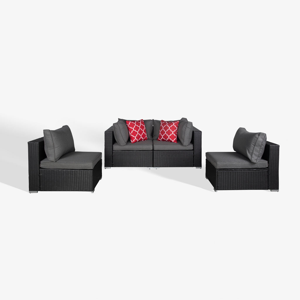 - Set Includes: Two (2) Corner Sofas, Two (2) Armless Sofas