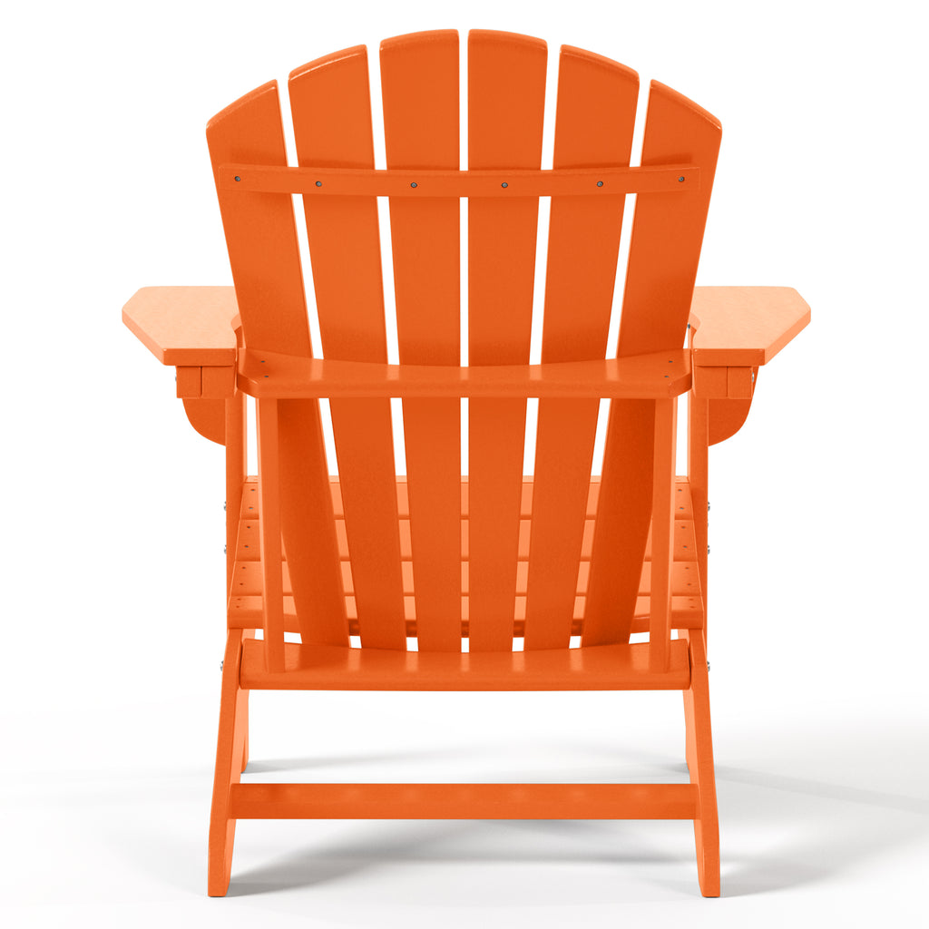 Sit back, relax, and catch a tan or enjoy some family time on this stunningly crafted 4-piece Adirondack chair set. Designed with comfort and style in mind, it features an ottoman for your feet and a broad armrest for extra armroom; a seashell design and curved reclined backrest for a more comfortable seat; and a high back for superior back support that lessens spinal tension. Constructed from a durable and solid HDPE material that is weather resistant and, unlike wood, won't rot, crack, chip, peel, or splinter. A UV-protective coating prevents fading, keeping the colors vibrant and amazing all year long. These attractive chairs are easy to clean, making it perfect for the outdoor space and is sure to make your backyard the place to be.