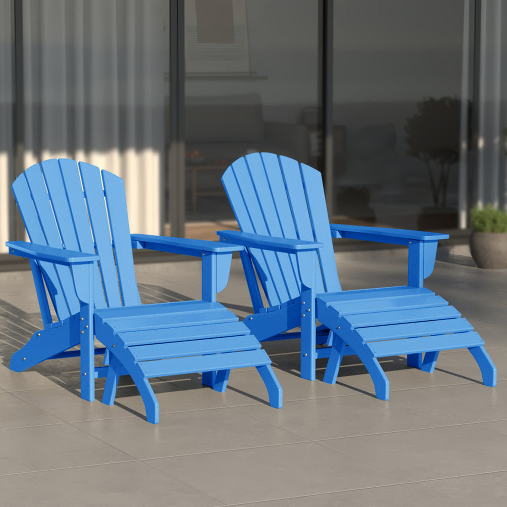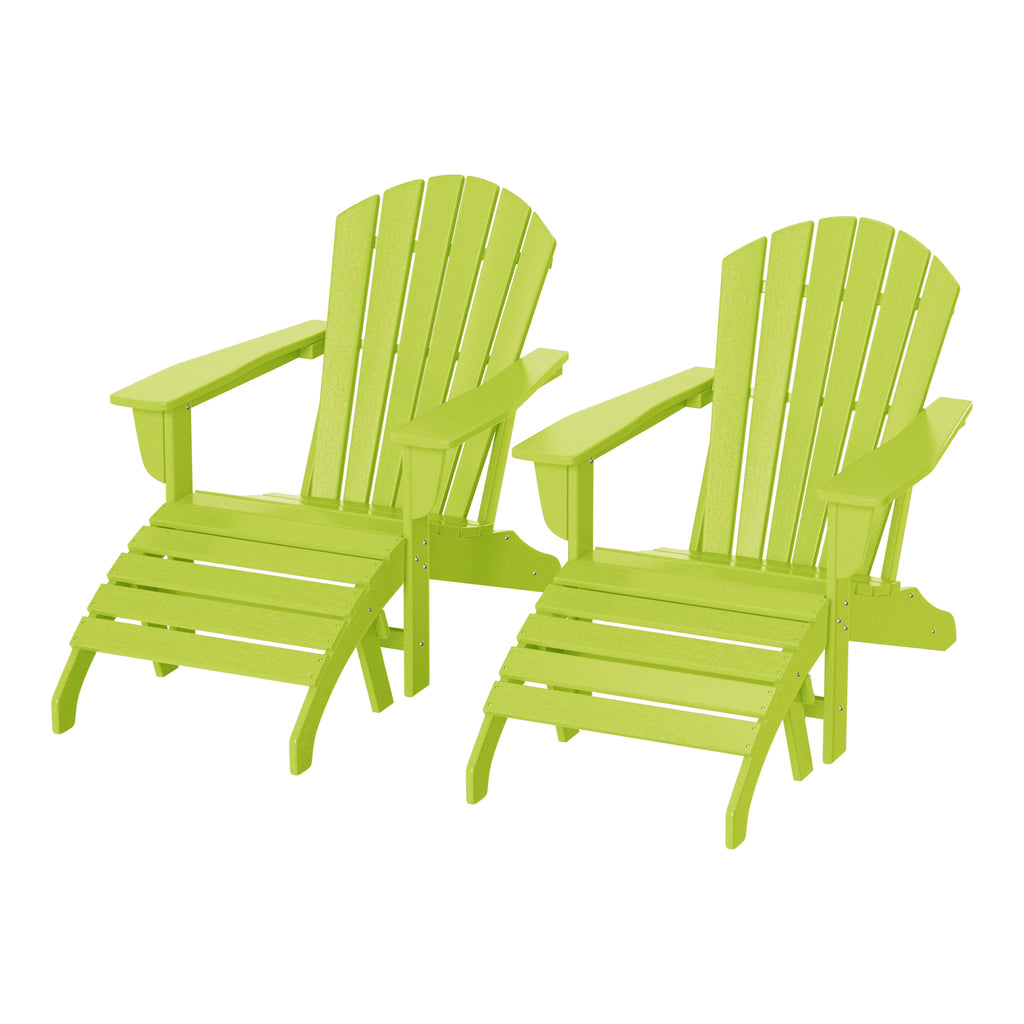 - Set includes two (2) Adirondack chairs with two (2) ottomans