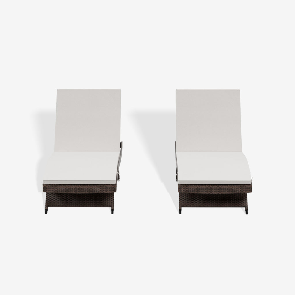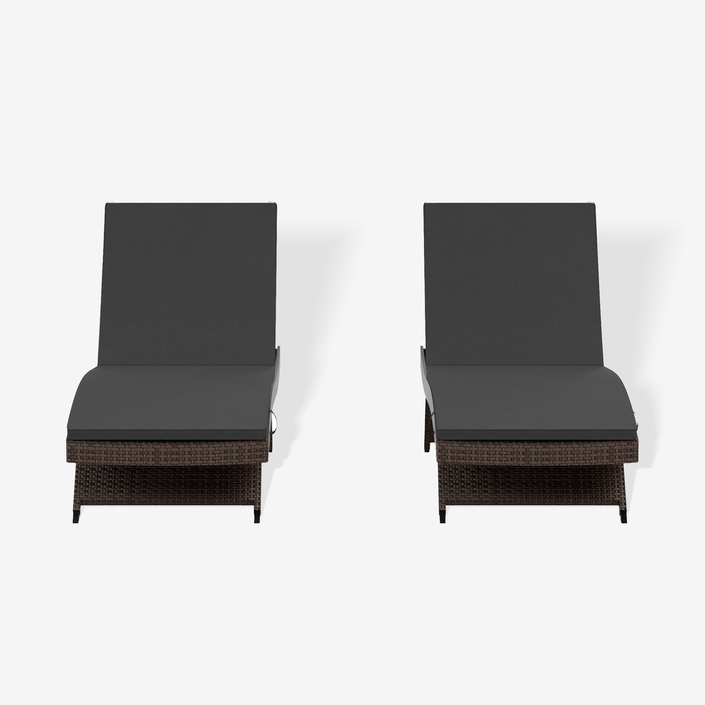 Sit comfortably under the sun with this Set of 2 classic Brown Rattan Wicker Outdoor Chaise Lounges. An ideal outdoor lounge chair for sitting poolside with friends or family. Made with durable rust resistant steel frame and weather resistant PE Rattan Wicker. A must have option for patio seating and lounging. The outdoor adjustable patio pool chaise lounges are great for catching sun, sitting around enjoying company over and adjustable backrest can be moved into 5 comfortable positions for ultimate comfort. The smooth, soft wicker is weather resistant and is carefully and meticulously crafted and shaped to form gorgeous curves that look great. Does not require assembly and ready to use out of the box.