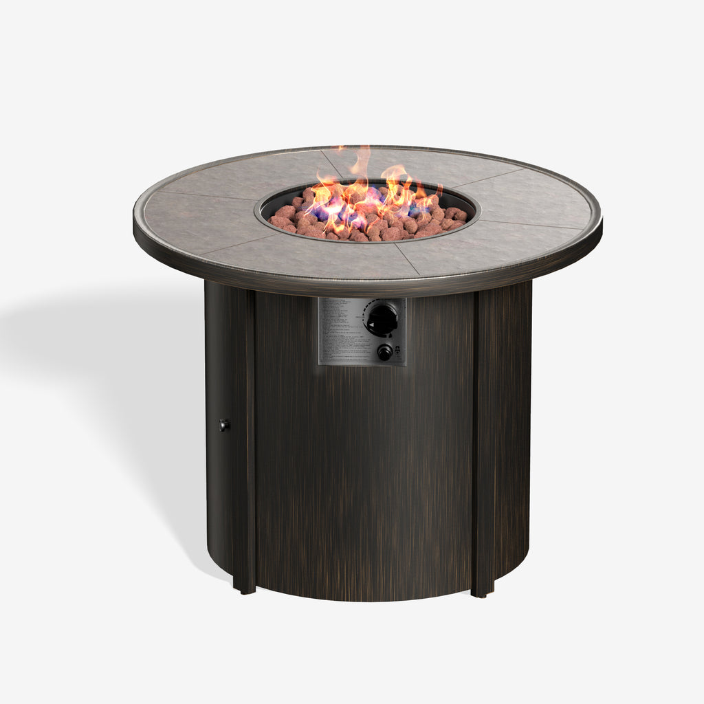 A must have Round gas fire pit table that can achieve comfortable warm around your outdoor lounge area. 30,000 BTU energy can provide warmth during cold nights. The table is is made of sturdy durable steel materials and its contemporary Bronze finish home décor style makes it easy to match and compliment existing patio furniture. The simple functionality of this outdoor fire pit table makes a great option for patio, backyard and combines well with outdoor furniture.