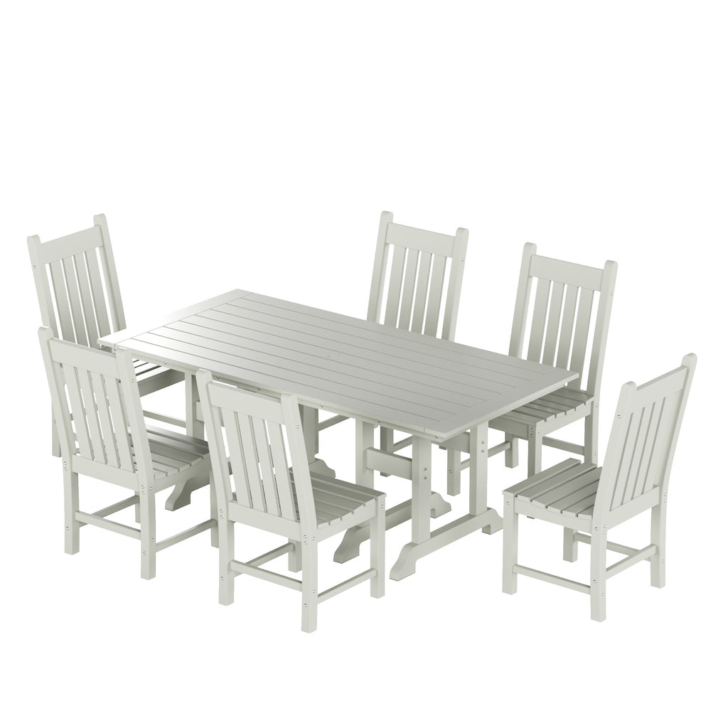 - Set includes: One (1) Rectangle Table, Six (6) Dining Chair