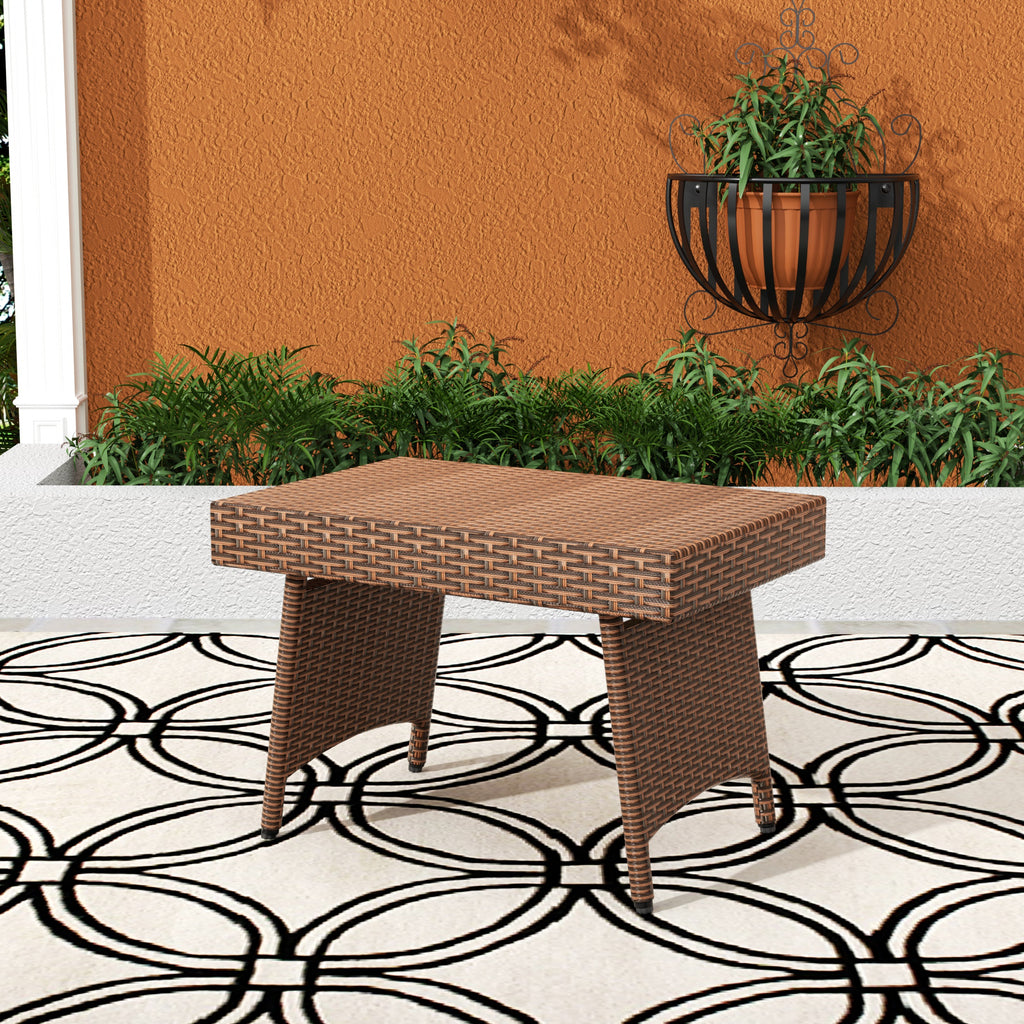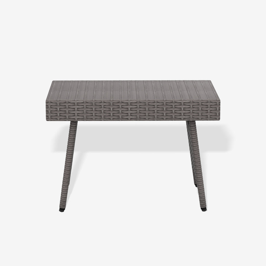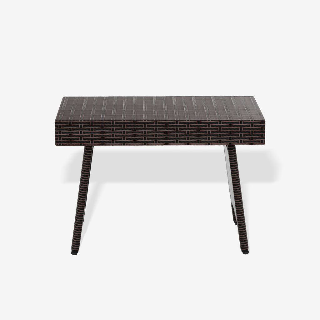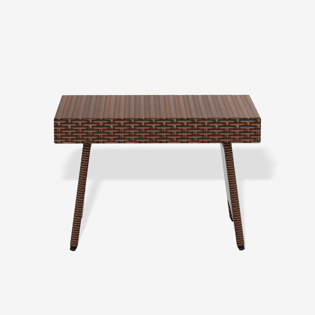 Simple side table that is the perfect addition for your outdoor lounge chair. Made with a strong, weather-resistant PE rattan material and woven in a wicker design for added strength. Protected from the outdoors with a UV-resistant and water-repellent finish that protects the set and keeps that new look lasting. Easy to put away with the foldable legs for extra space whenever needed.