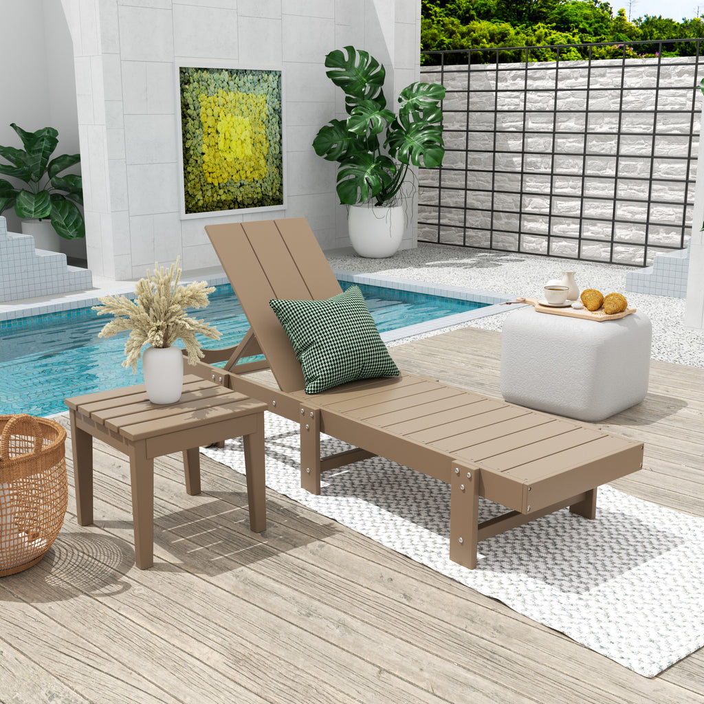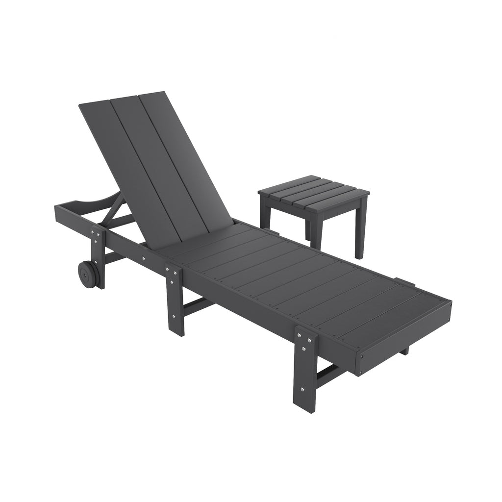 Spruce up your backyard this season with this beautiful modern chaise lounger. Perfect for the outdoors thanks to the durable, eco-friendly HDPE material that has a weather- and UV-resistant treatment to keep the lounger protected each season. Sit back and relax with the adjustable back that has multiple lounging positions, including flat for laying down and catching a tan. Move the lounger wherever you want with ease thanks to the wheels, so you can keep up with the shade. Place all your favorite snacks and drinks next to you with the matching square side table that is perfect for your patio.
