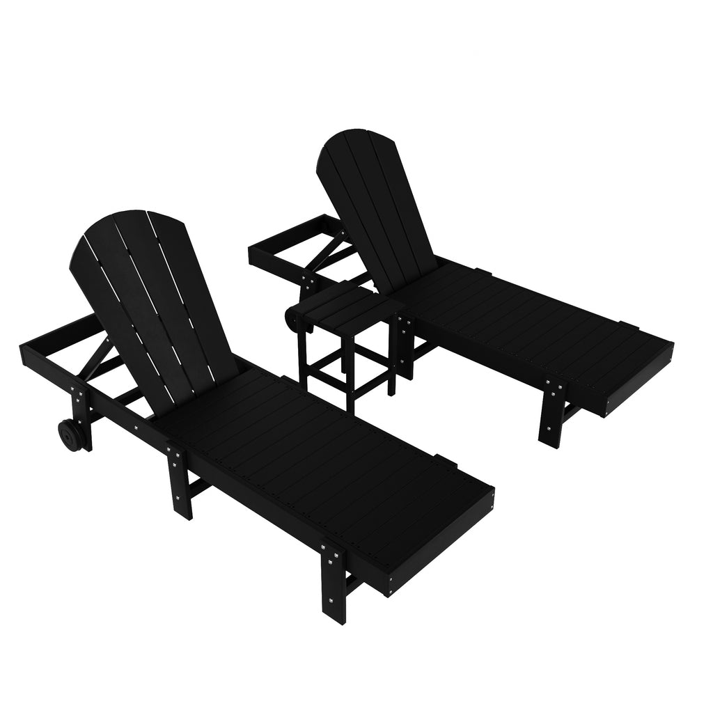 - Set Includes: Two (2) Adirondack chaise loungers and One (1) square side table