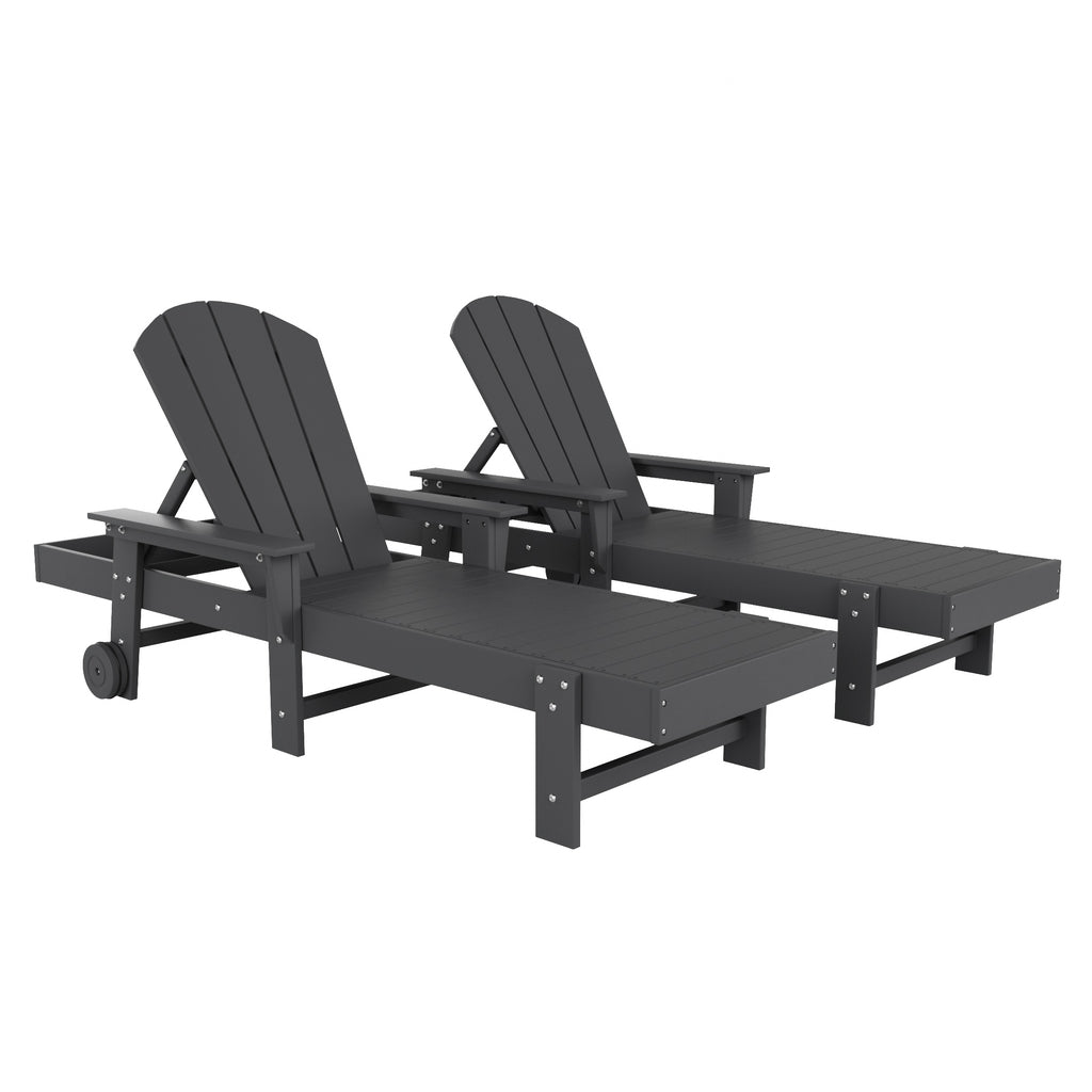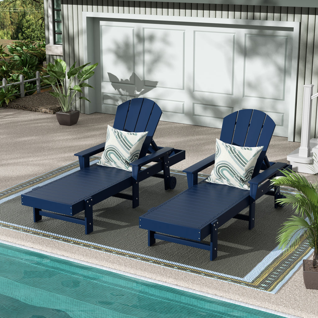 - Set of Two (2) Adirondack chaise loungers with wheels and armrests