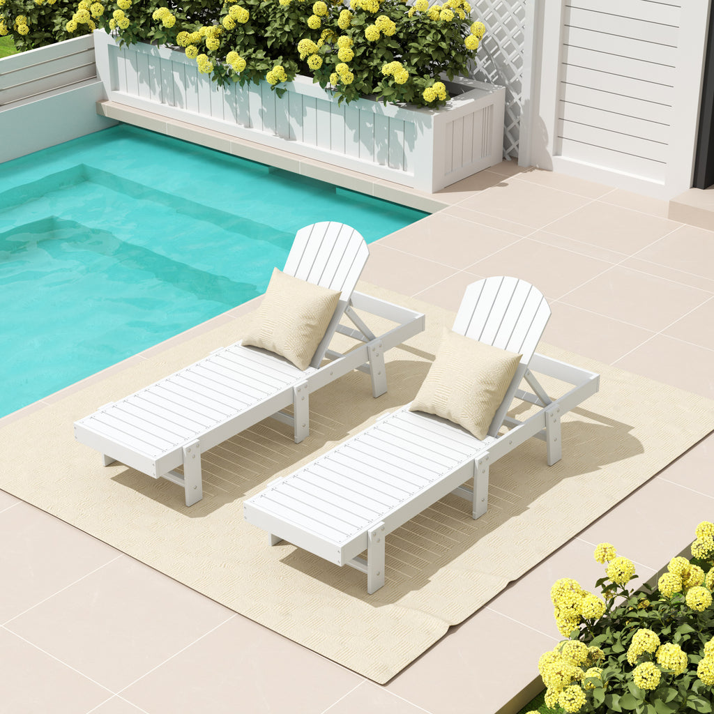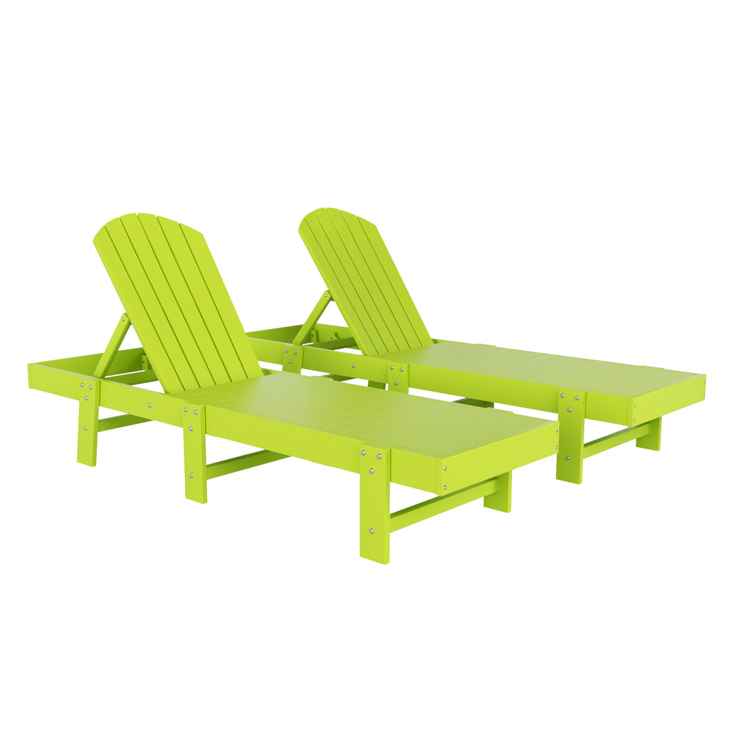 Lay by the poolside and catch a tan or read a book with this attractive reclining chaise lounger. Charming design with the classic adirondack back that brings a piece of the beach with you and gives your backyard that refreshing feeling. Spacious seat thanks to the armless design, making it perfect for relaxing. Made with an eco-friendly HDPE material that is durable and perfect for the outdoors, the all-weather and UV-resistant material helps keep the lounger protected each season.