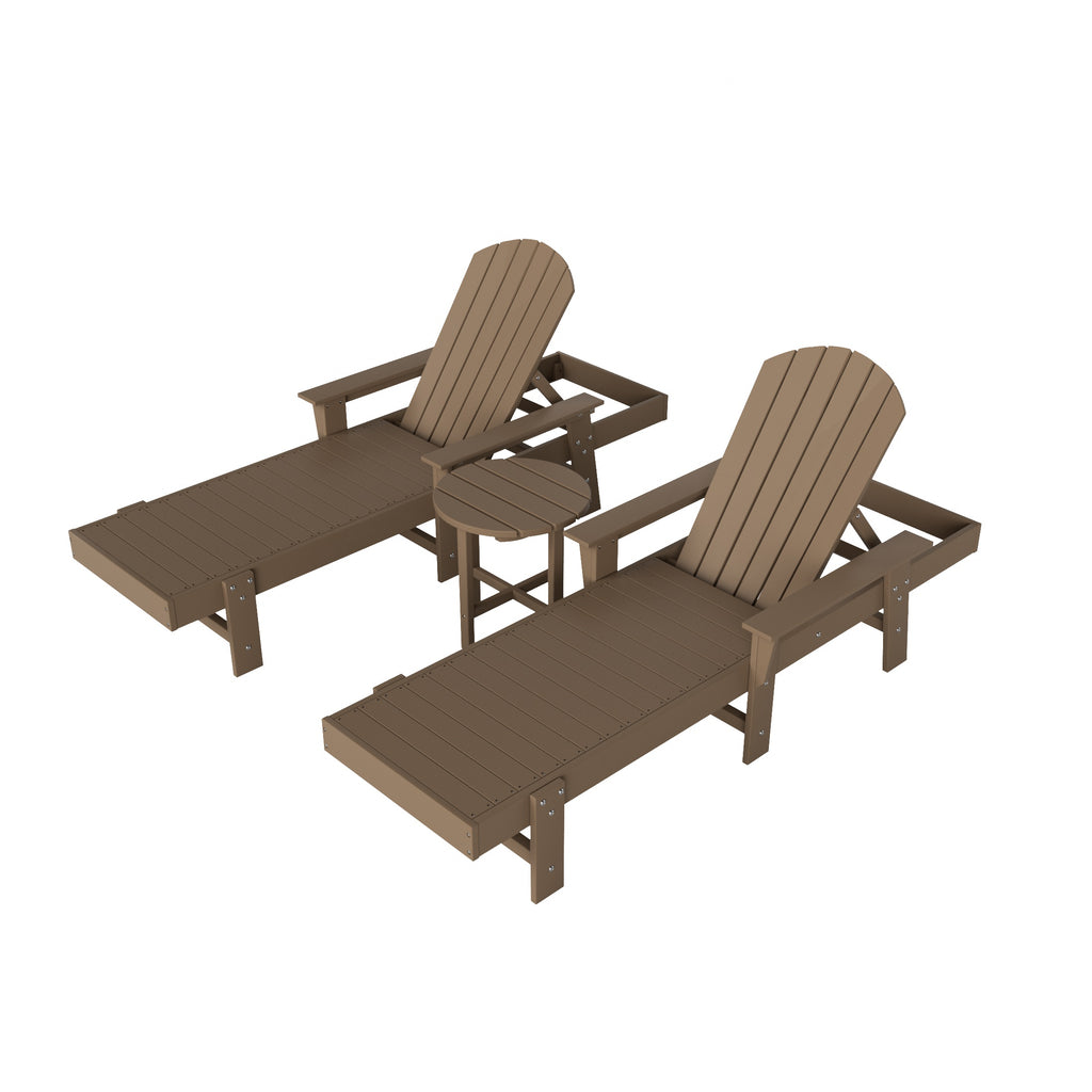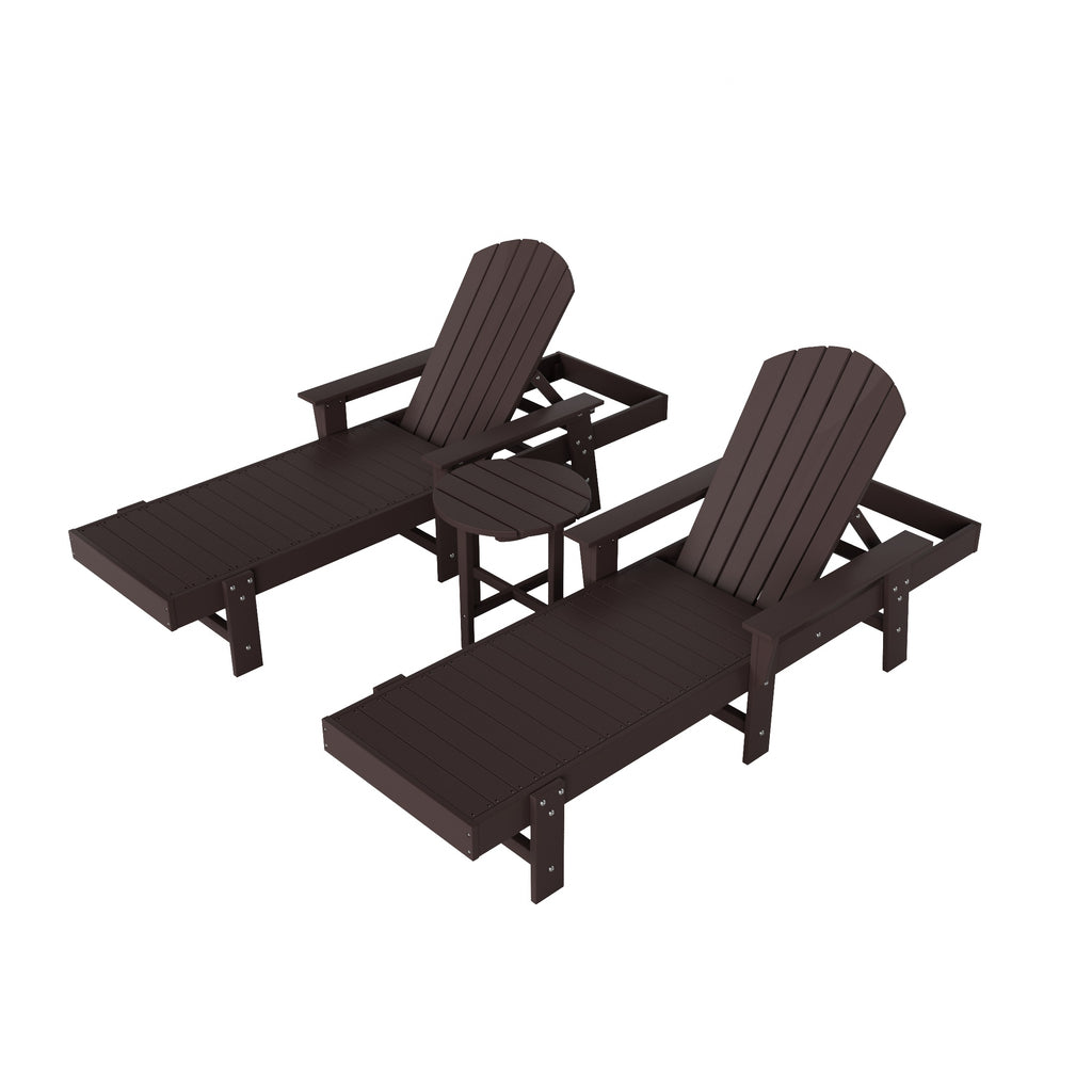 - Set Includes: Two (2) classic Adironondack chaise lounger with arms and One (1) round side table