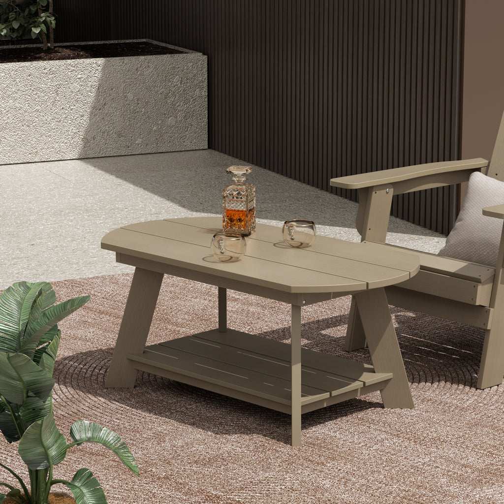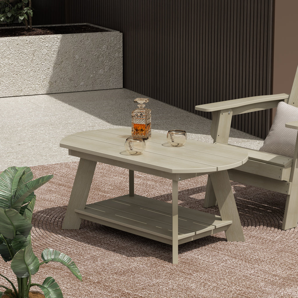 Give your outdoor patio some more space to hold all your drinks and snacks with this contemporary designed Adirondack coffee table. Perfect for the outdoors, the all-weather-resistant HIPS (High Impact Polystyrene) is perfect for resisting wear and tear with its abrasion resistance. The material has a wood-like textured surface that gives that natural wood look without any of the disadvantages, making it the perfect match for your patio.
