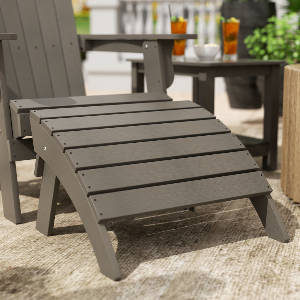 Lay back in your favorite Adirondack chair and kick your feet up on this comfortable Adirondack ottoman that will have you feeling relaxed after a long day. Designed for comfort, the comfortable curved design cradles your legs. Made to last in the outdoors with the durable High Impact Polystyrene (HIPS) material that is all-weather resistant and is more rigid and smoother than HDPE. This is the perfect outdoor ottoman to match your outdoor Adirondack chair and add a piece of charm and comfortability to your patio set.