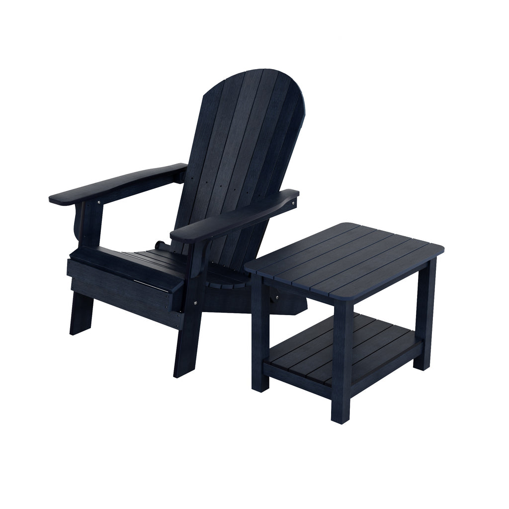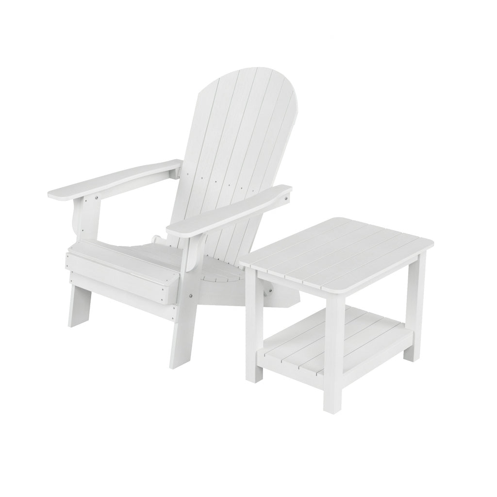 - Set includes: One (1) foldable adirondack chair, One (1) side table
