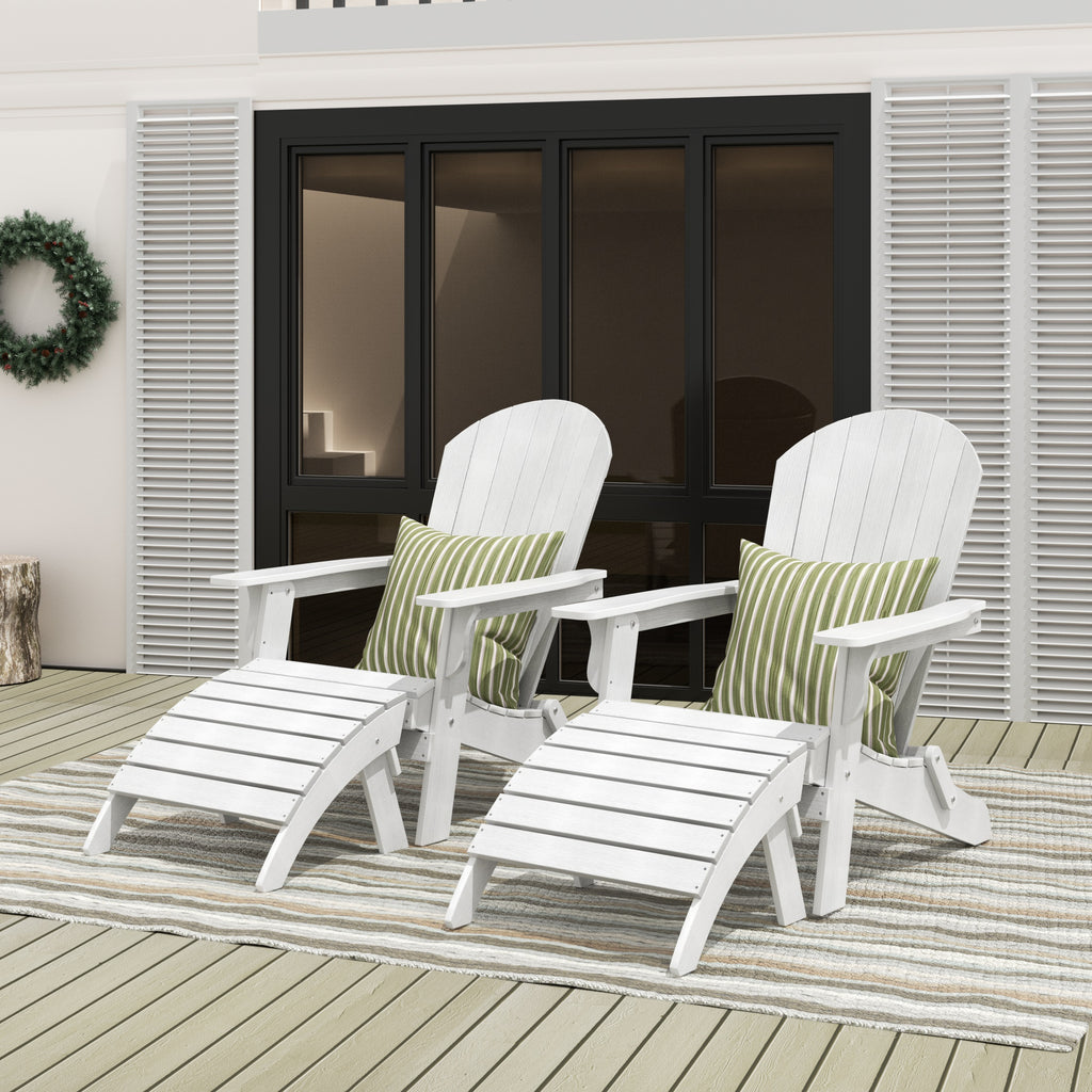 - Set Includes: Two (2) folding adirondack chair and Two (2) ottoman