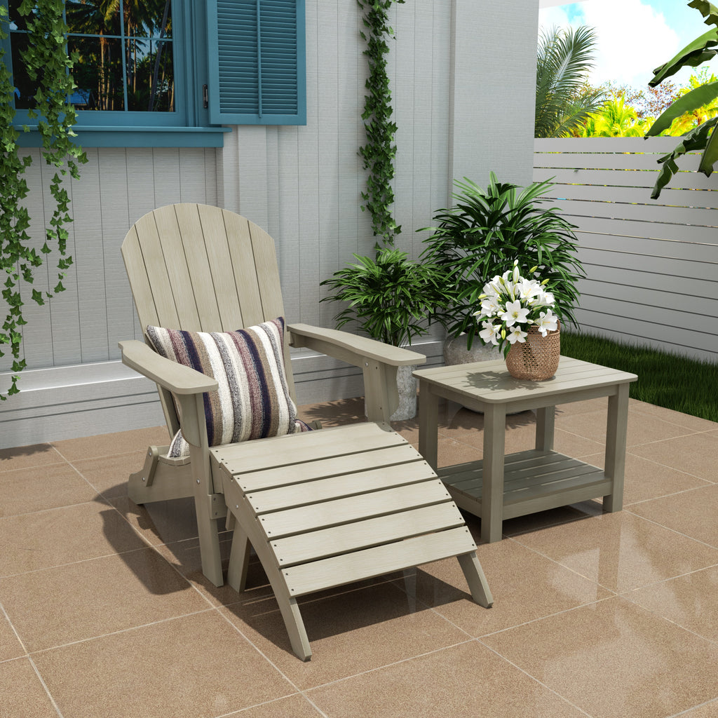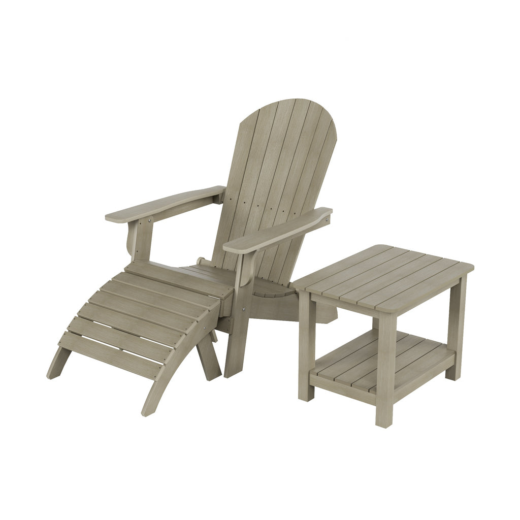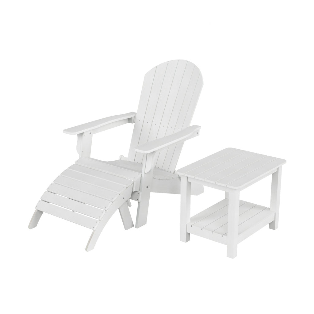 - Set Includes: One (1) folding adirondack chair, One (1) folding ottoman, and One (1) side table
