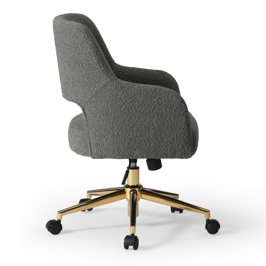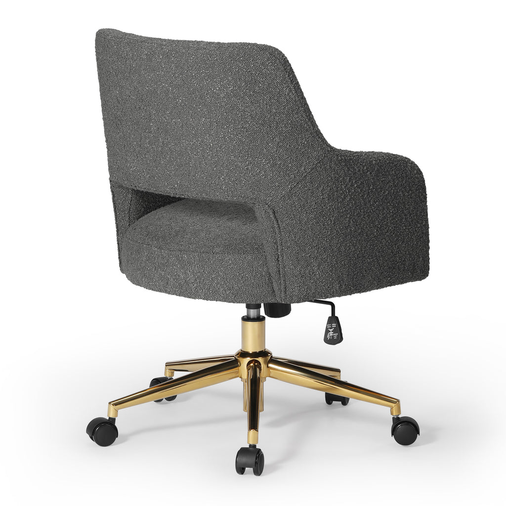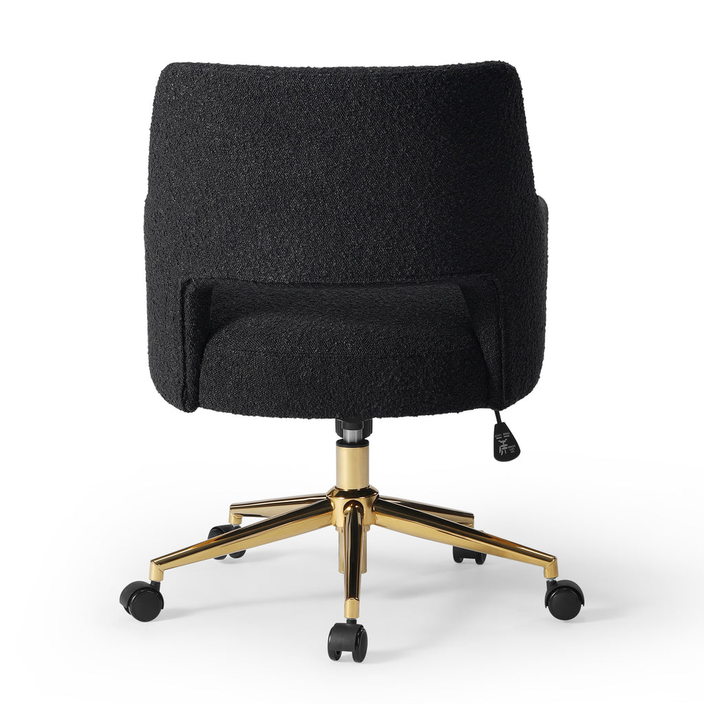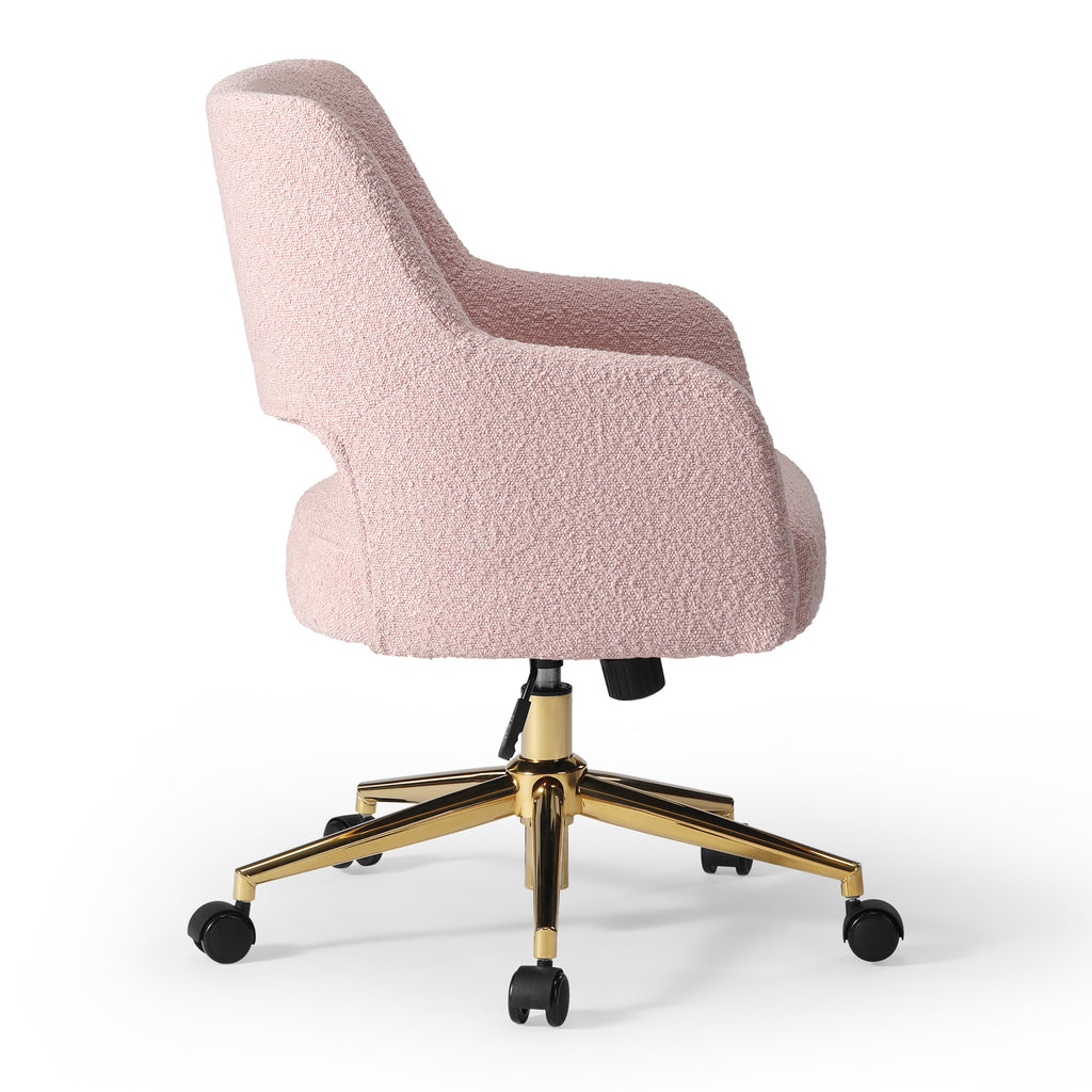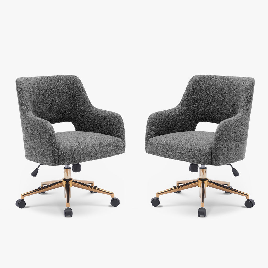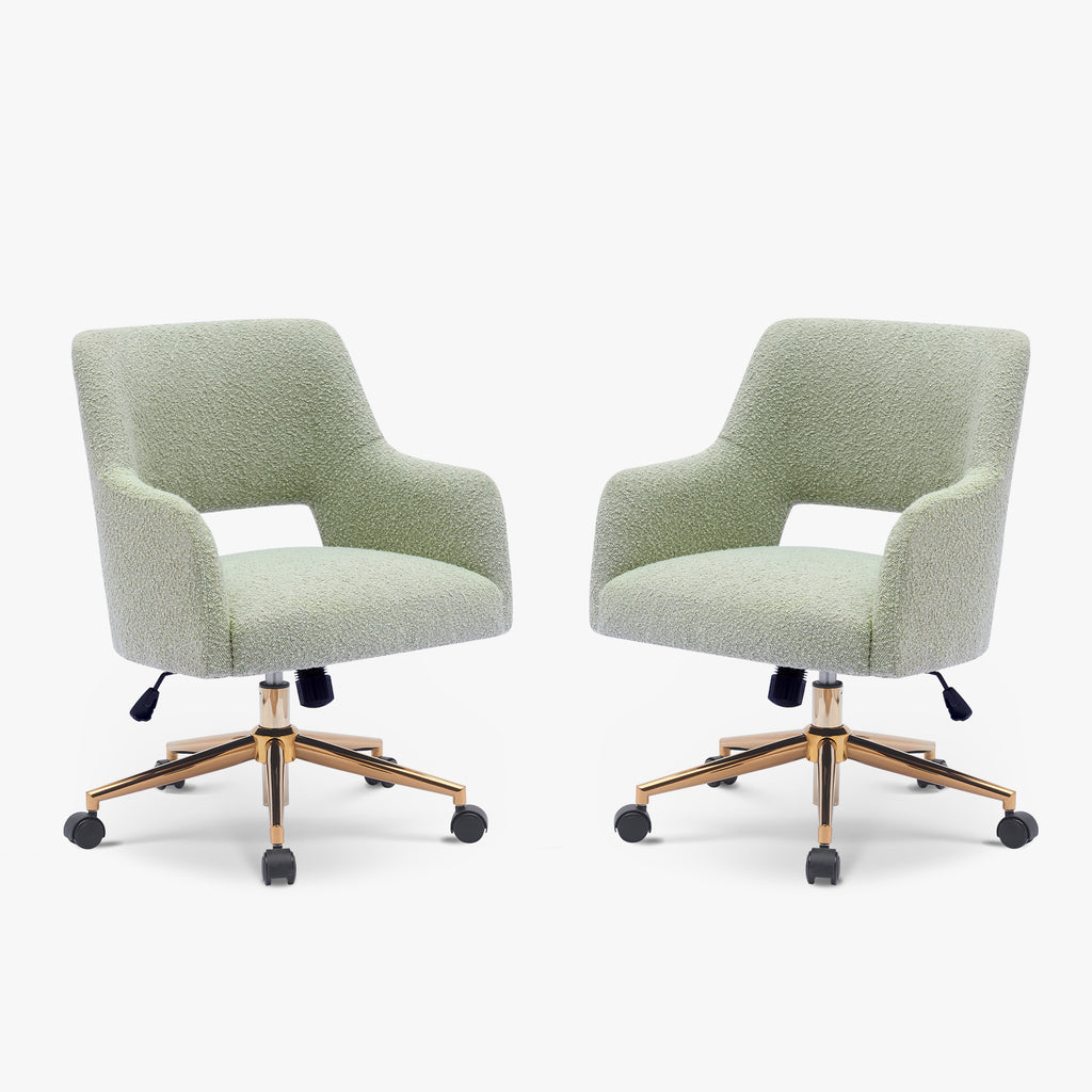 Give your home office or vanity area a delightful transformation with our charming set of upholstered boucle vanity chairs that can also be used for the office chairs. these cushioned and cozy chairs, meticulously crafted with boucle fabric, provide water and stain resistance while offering an extra layer of protection and comfort with their soft and plush feel. enjoy spacious and comfortable seating with wide and curved backrests that cradle your back and offer breathability. sink into superior comfort with foam-filled seats that spring back due to the foam's durability. glide around effortlessly on the 360° swivel bases and omnidirectional wheels. easily adjust the chair height with the adjustable height levelers and recline into serenity with the tilt-back function that allows you to choose your desired tilt force.